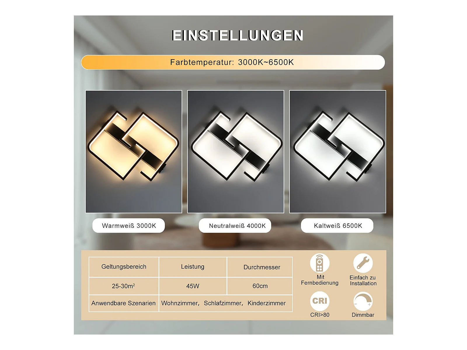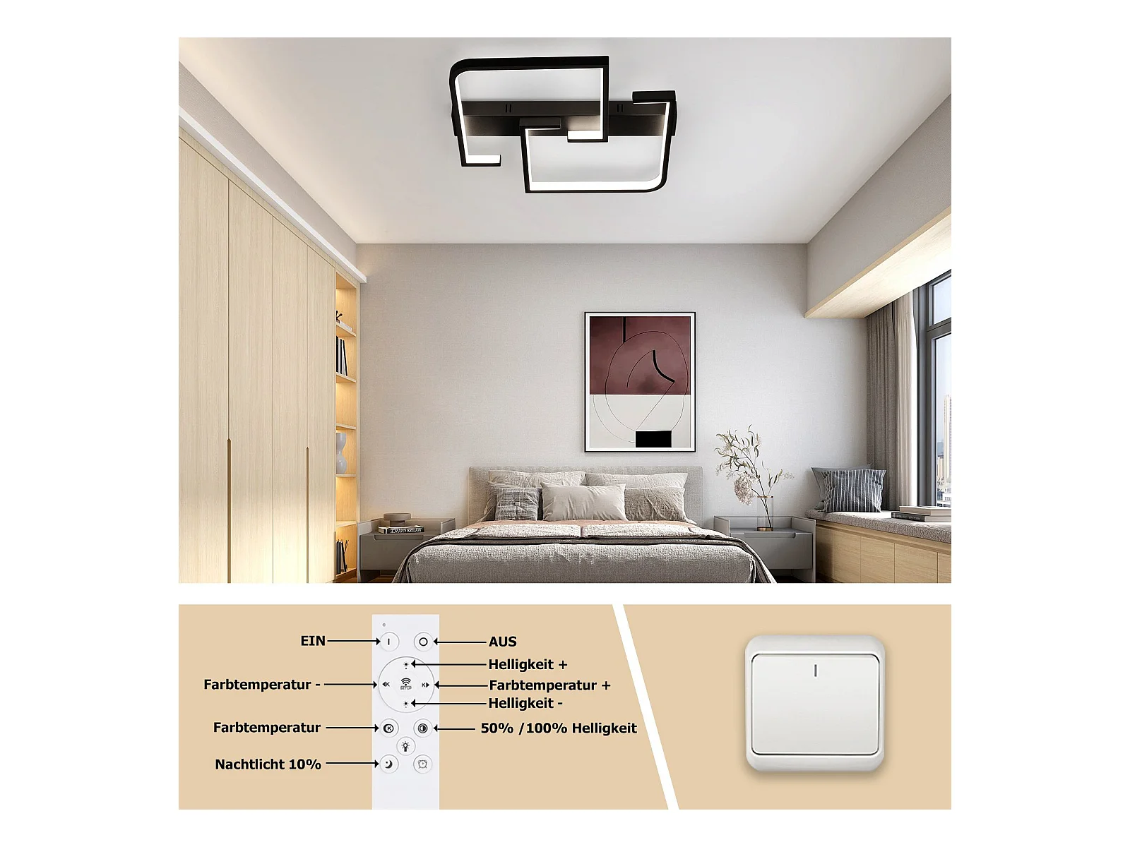 LED Deckenleuchte 45w Metall 60cm Wohnzimmer Dimmbar Mit Fernbedienung Schwarz Modernes Design