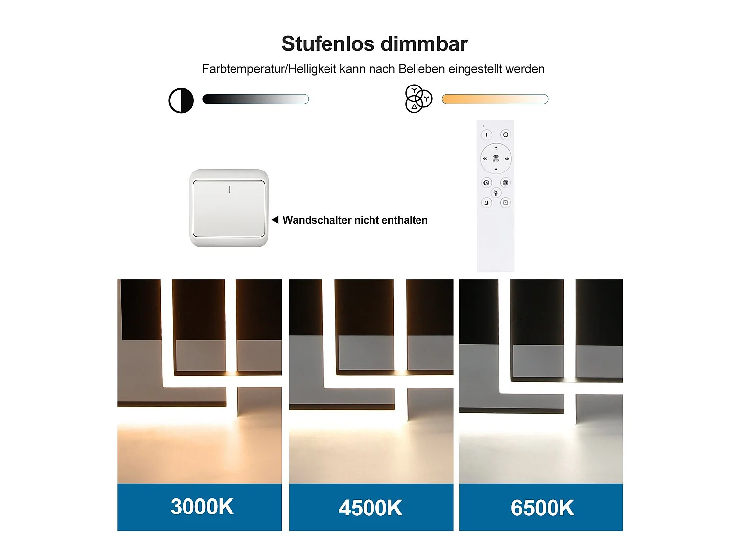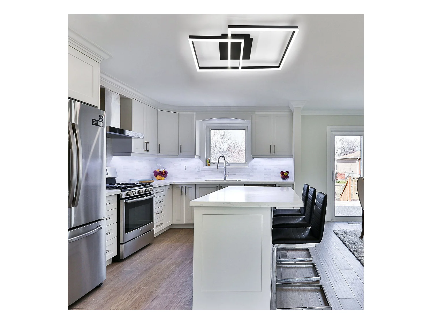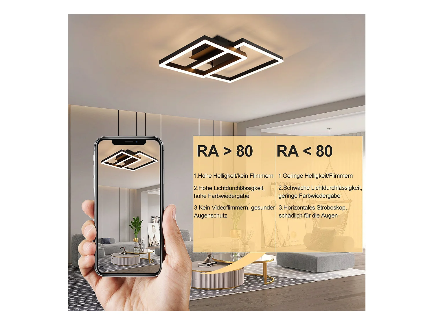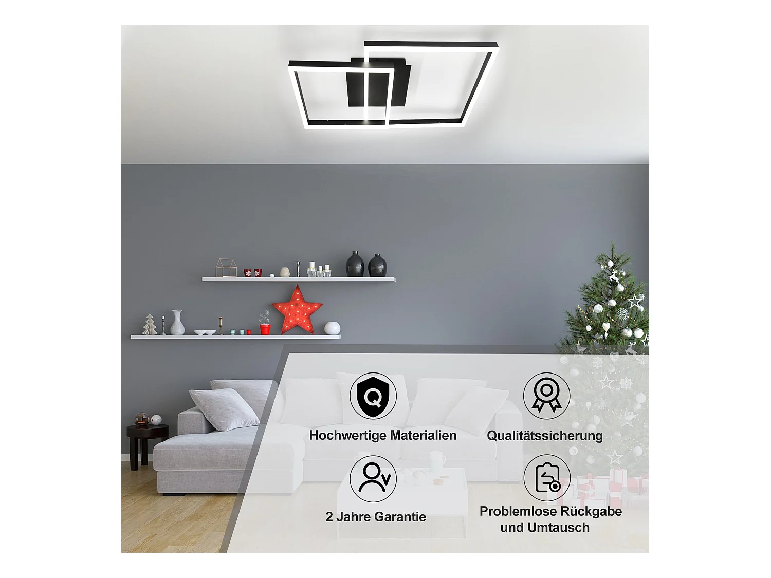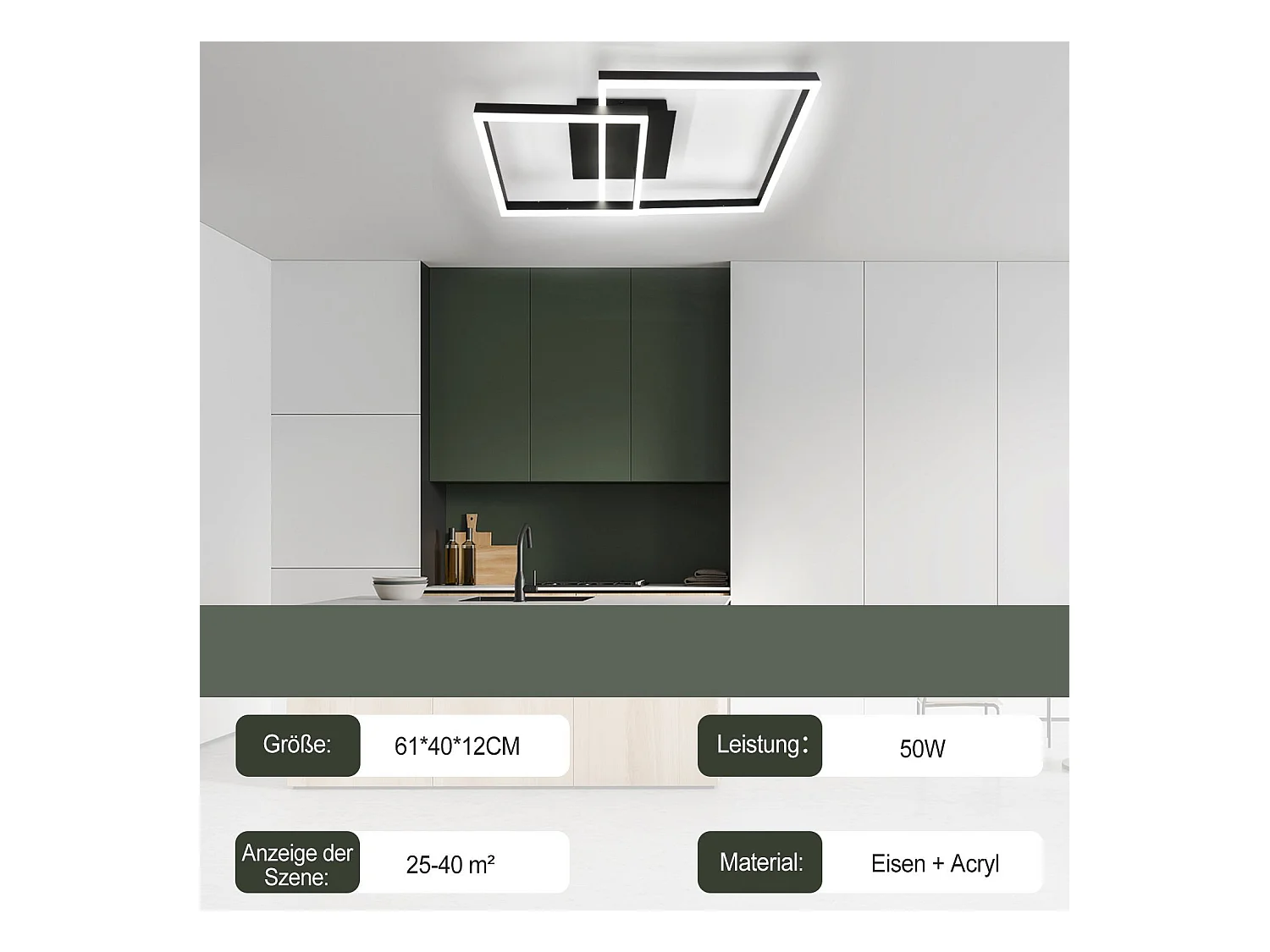 NETTLIFE LED Deckenleuchte Wohnzimmerlampe Schwarz Schlafzimmerlampe 50W Modern Dimmbar mit Fernbedienung Geometrisch für Küche Flur Esszimmer