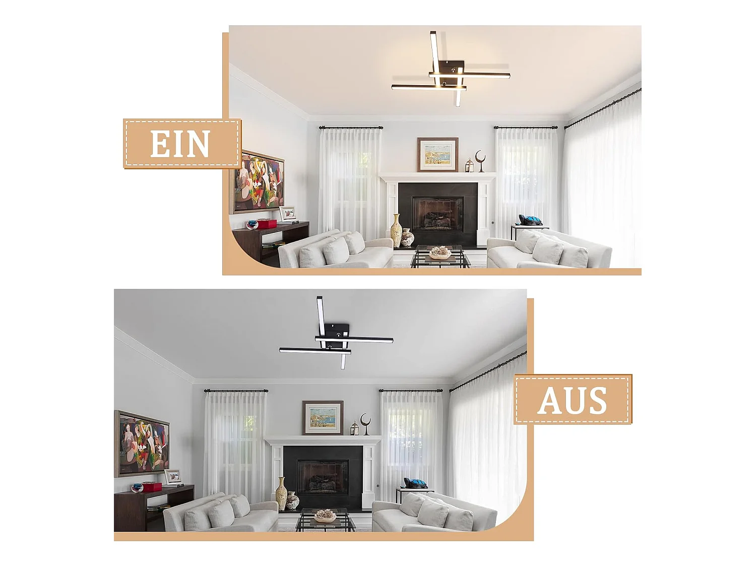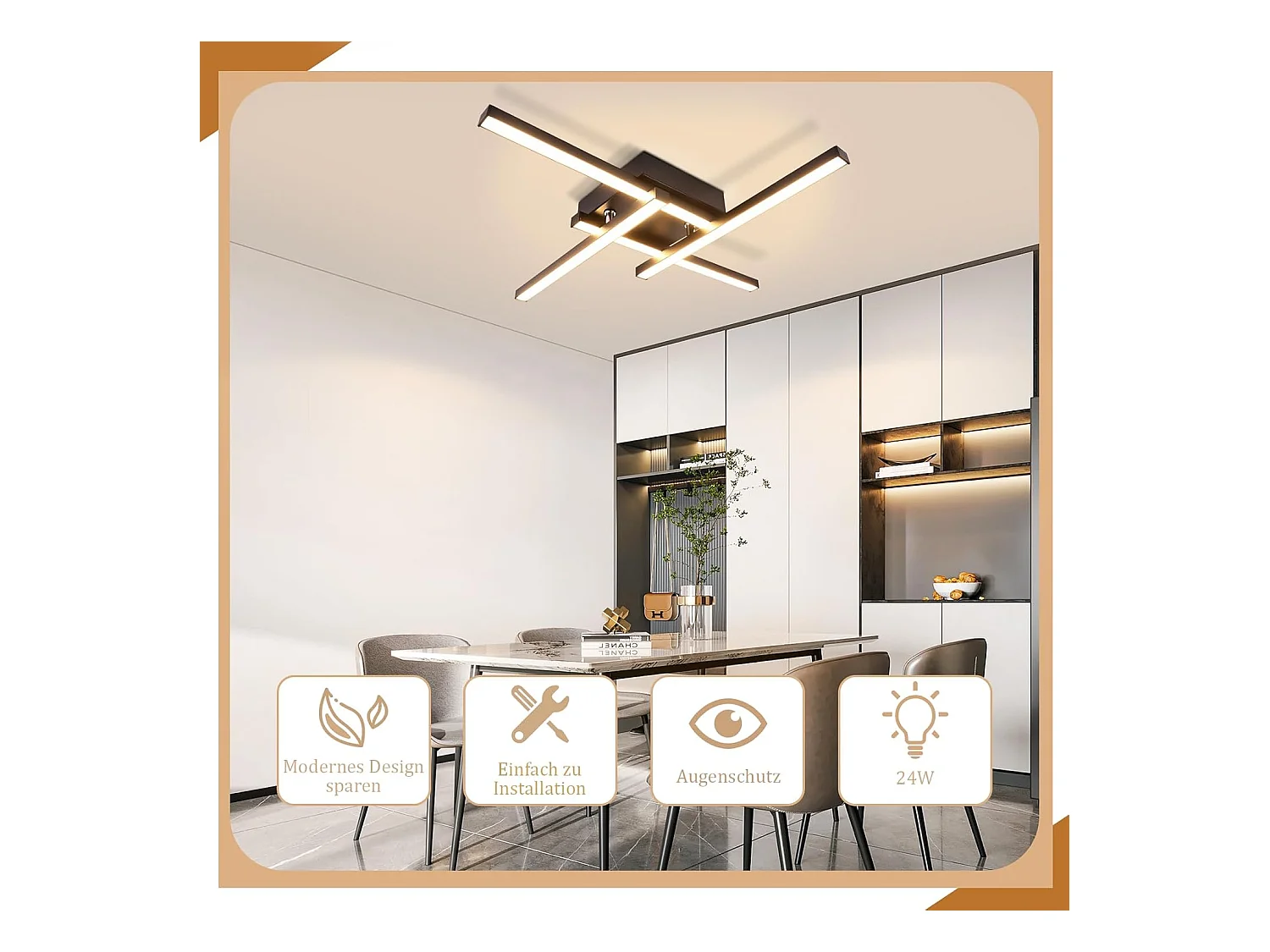 Modernes Design, warmweiße LED-Deckenleuchte, 24 W, 3000 K