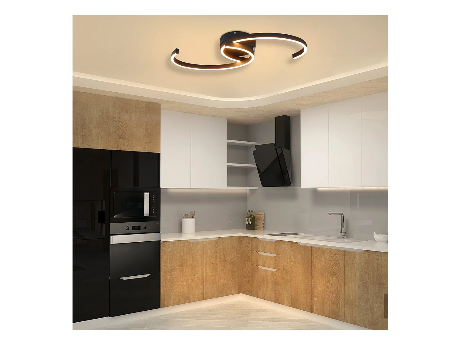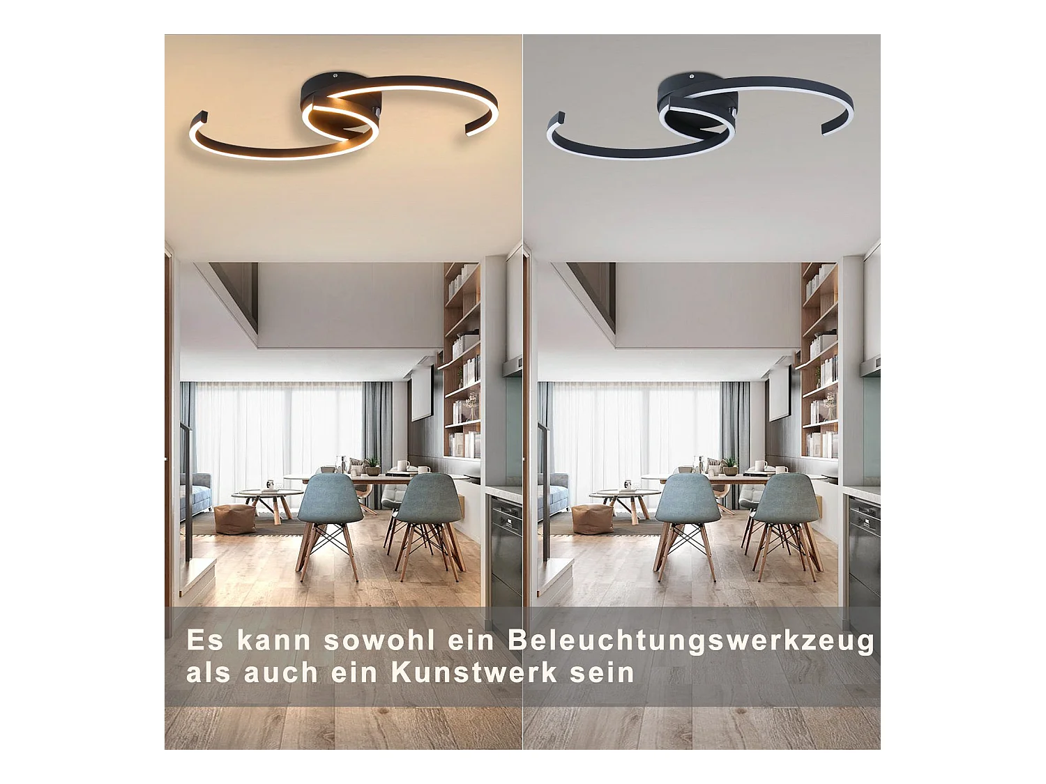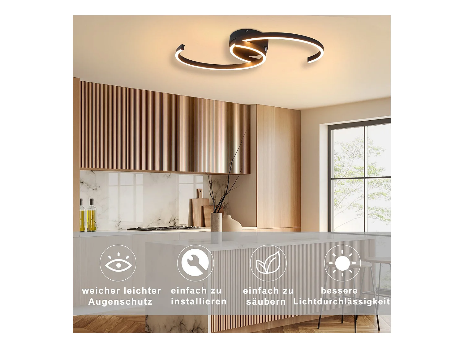 NETTLIFE Moderne LED-Deckenleuchte, 60 cm, Schwarz, 24 W, Warmweiß, Wohnzimmerlampe für Schlafzimmer, Küche, Flur, Esszimmer