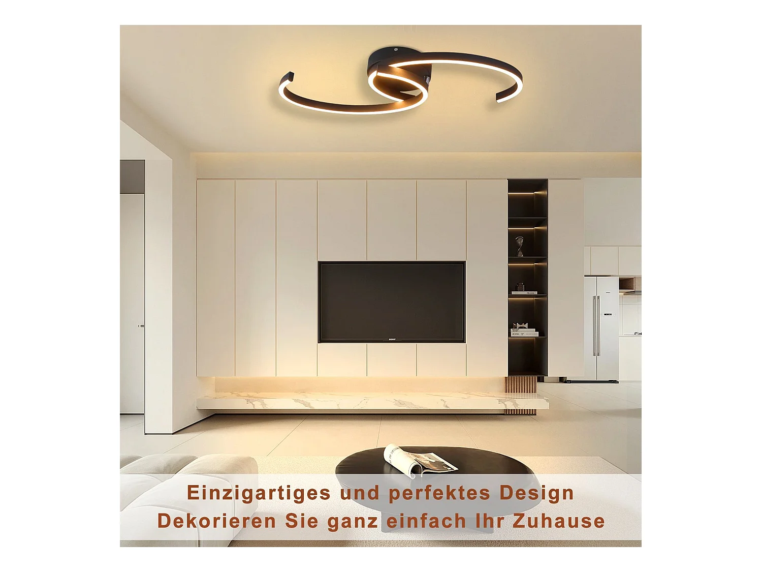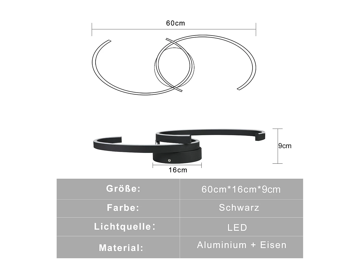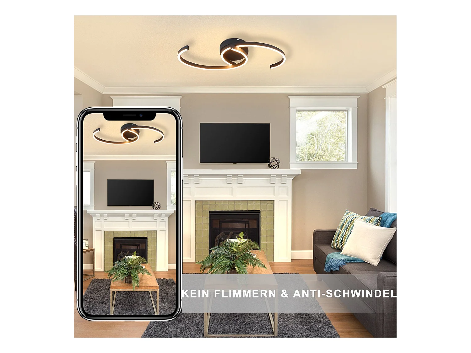 NETTLIFE Moderne LED-Deckenleuchte, 60 cm, Schwarz, 24 W, Warmweiß, Wohnzimmerlampe für Schlafzimmer, Küche, Flur, Esszimmer