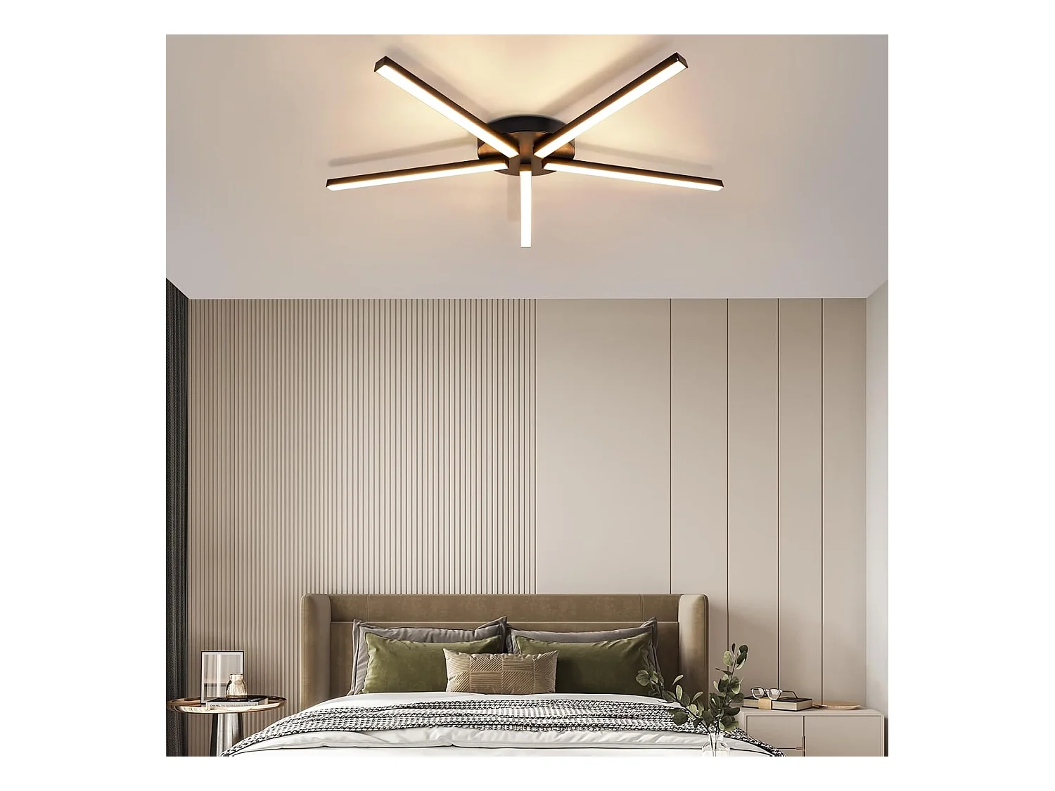 NETTLIFE Deckenlampe LED Warmweiß Wohnzimmerlampe - Deckenleuchte 24W Schwarz Decke Lampe 64.2 cm Metall Schlafzimmerlampe 3000K für Schlafzimmer Wohnzimmer