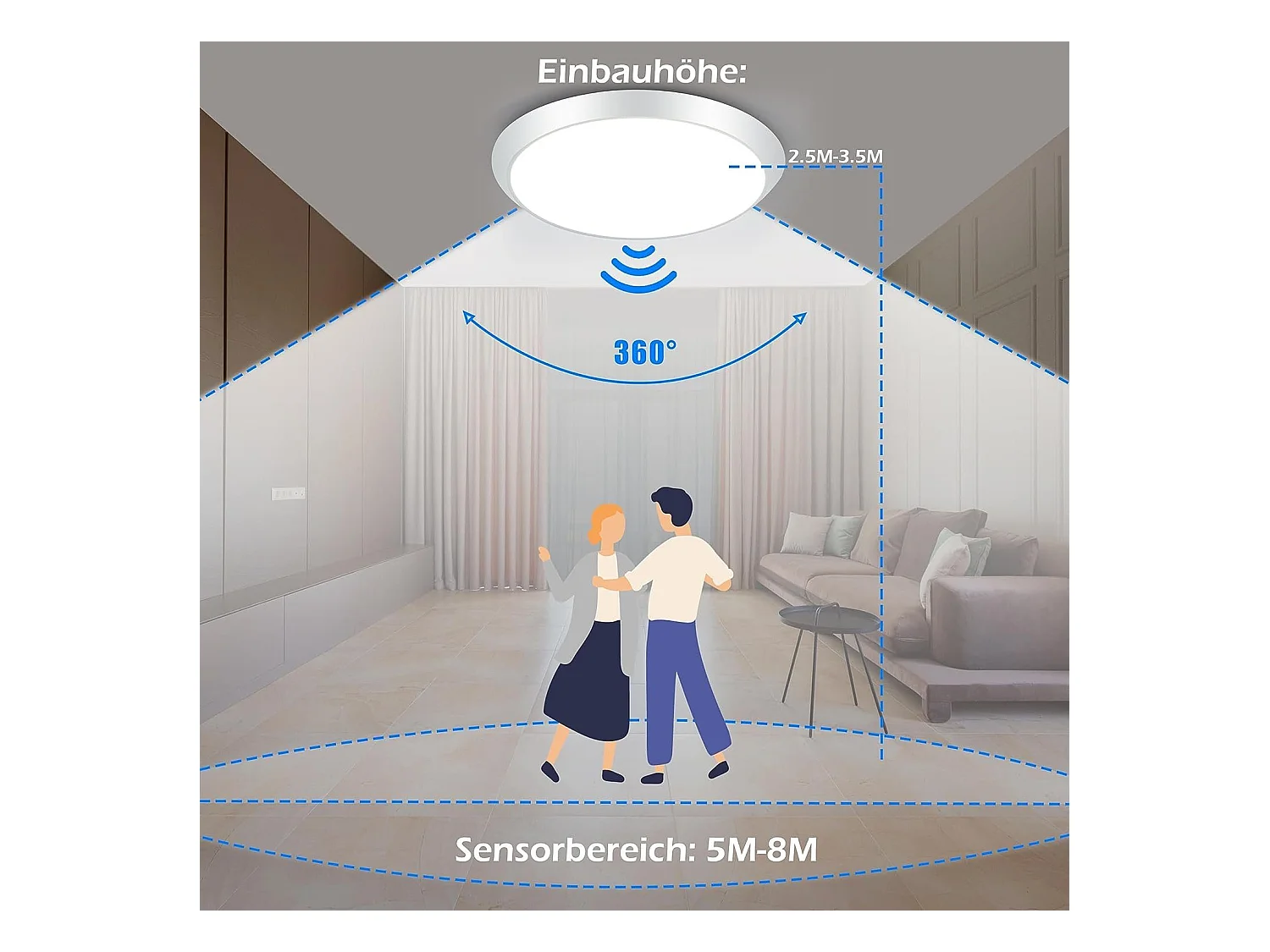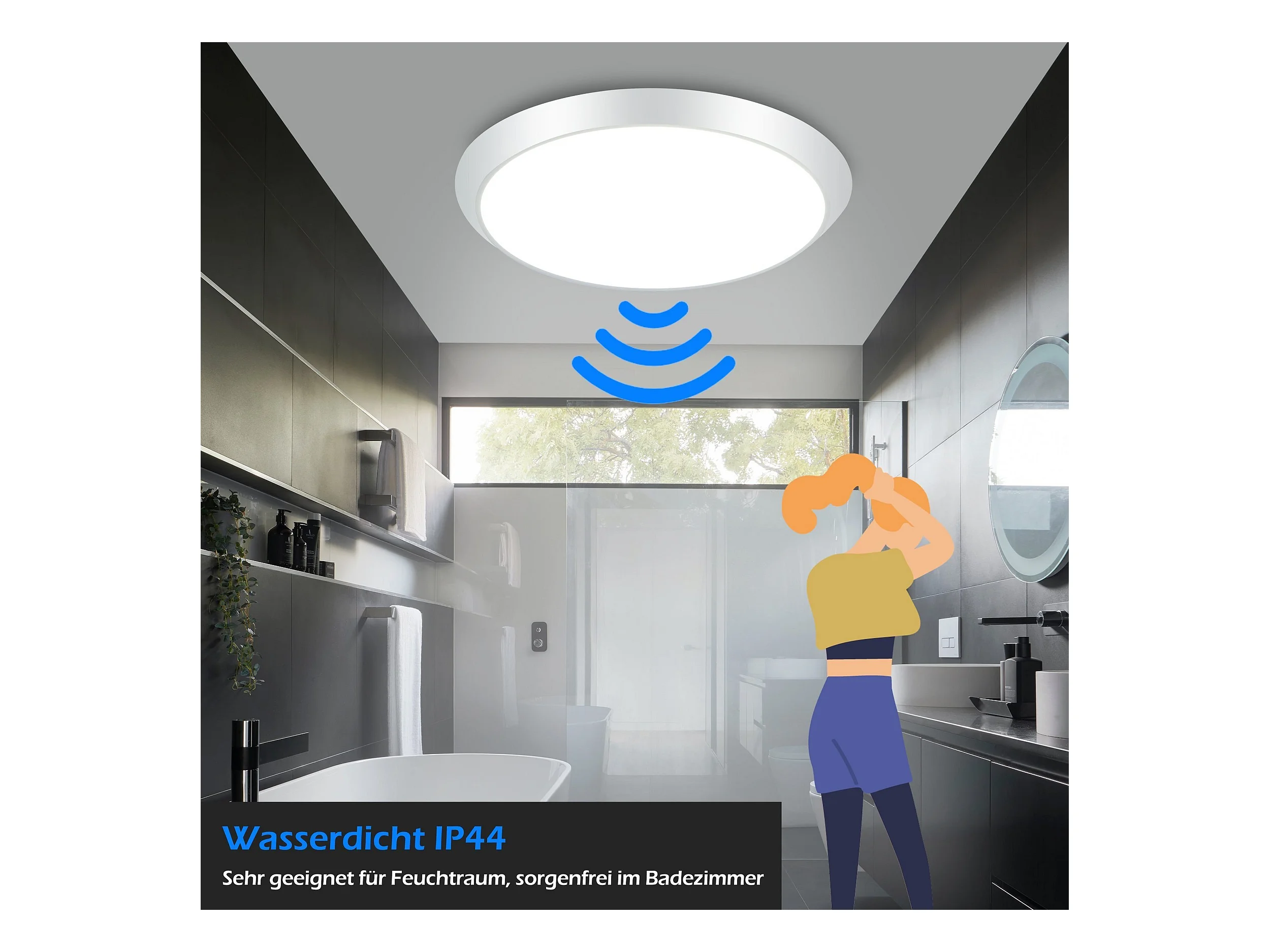 NETTLIFE LED Deckenleuchte Rund Weiß mit Bewegungsmelder 15W Innen 4000K Neutralweiß IP44 Treppenlampe 30cm für Flur Wohnzimmer