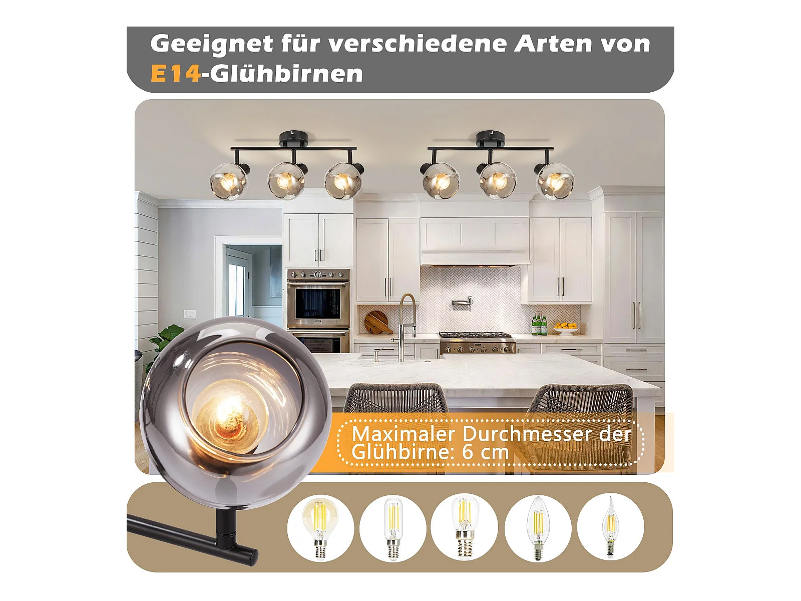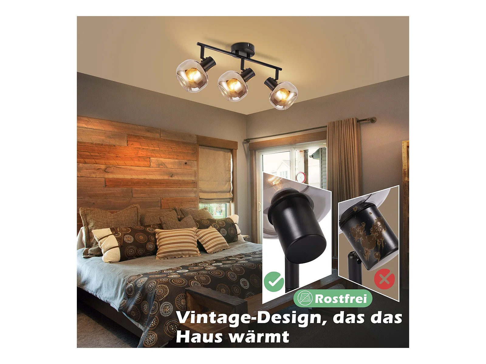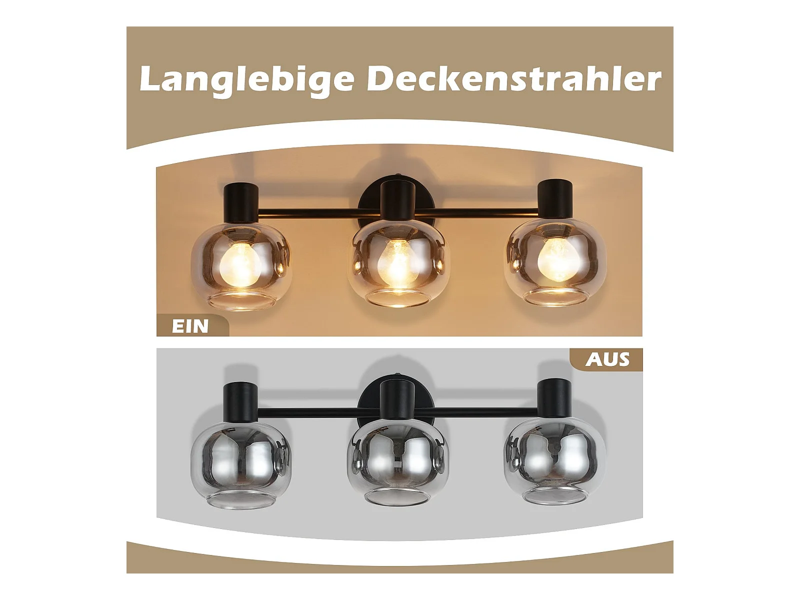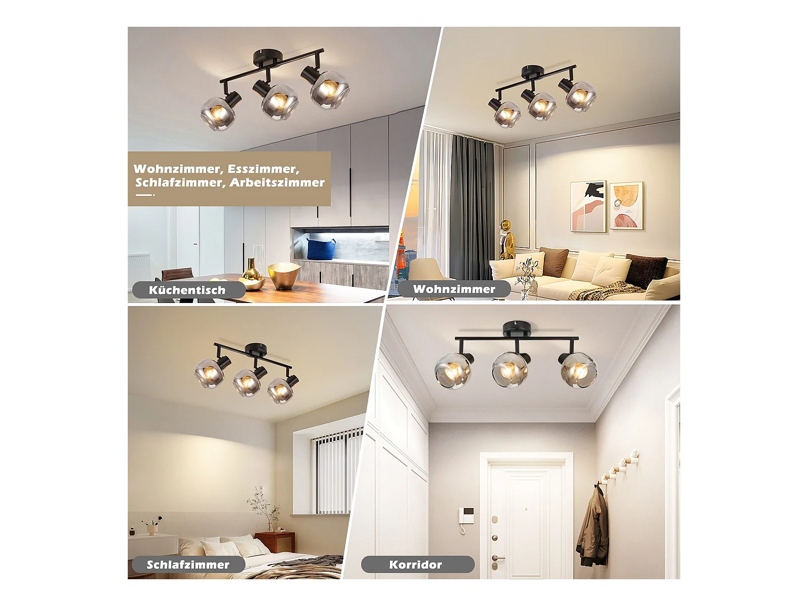 Schwarzer Deckenstrahler 3 Moderne Glühbirnen Glas 350° Schwenkbar Spot E14