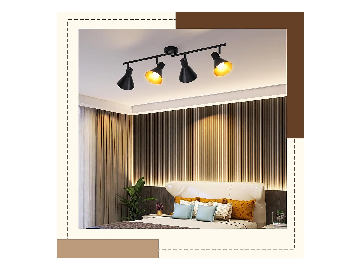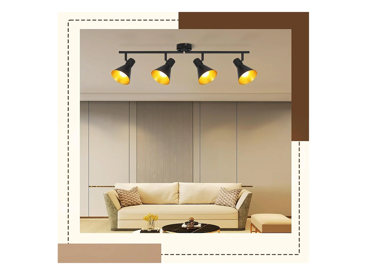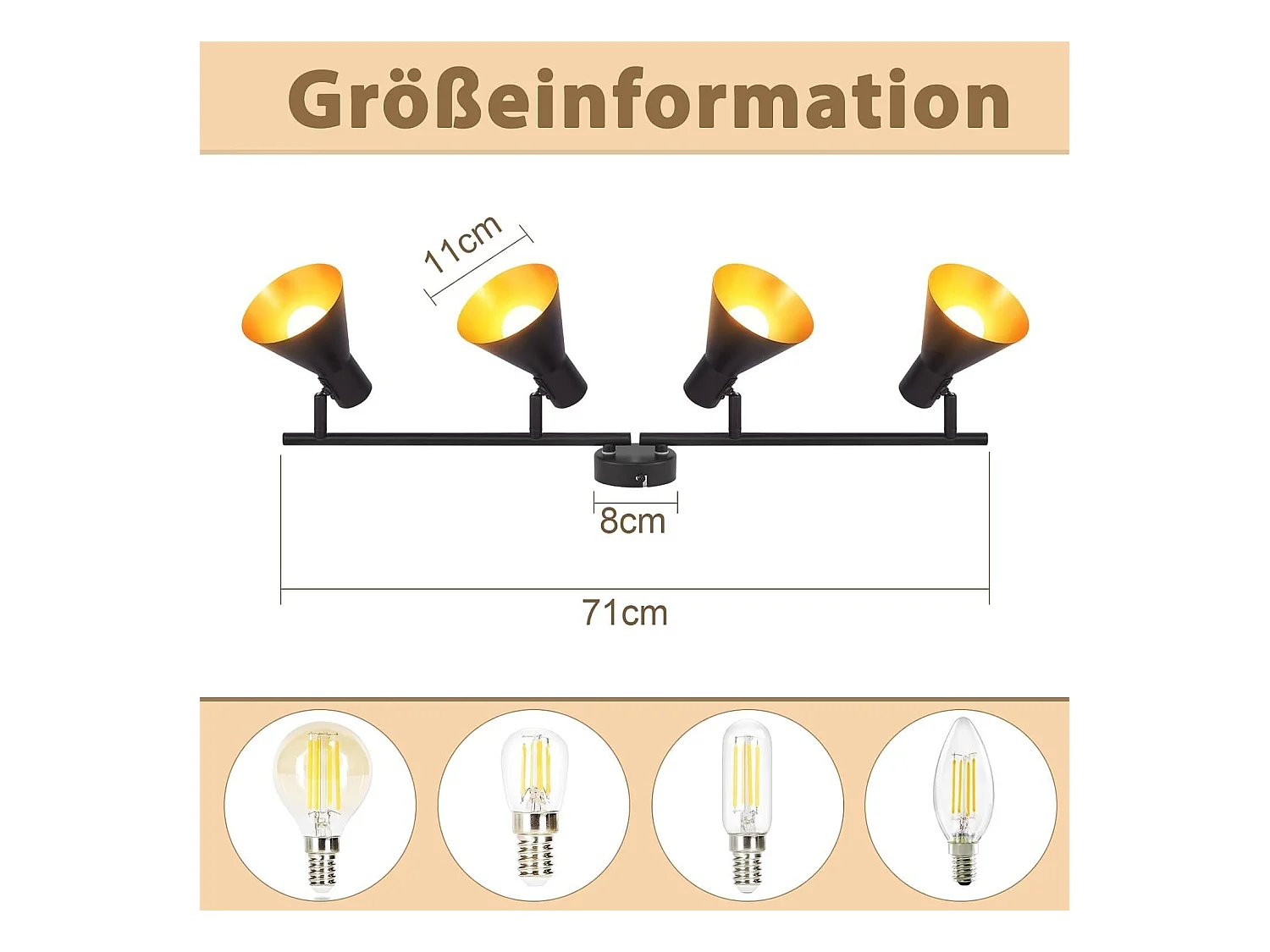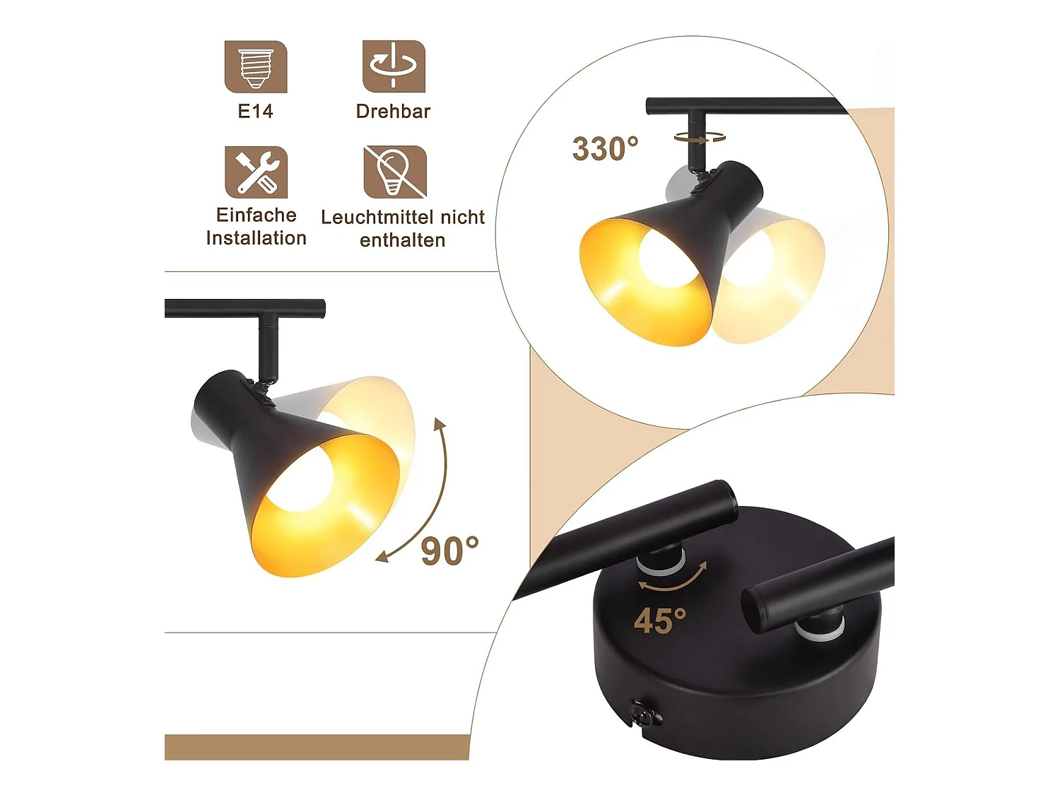 NETTLIFE 4 Spots Deckenleuchte Wohnzimmer Schwarz Vintage 71CM E14 Metall 330° Schwenkbar Industriell für Schlafzimmer Küche Flur