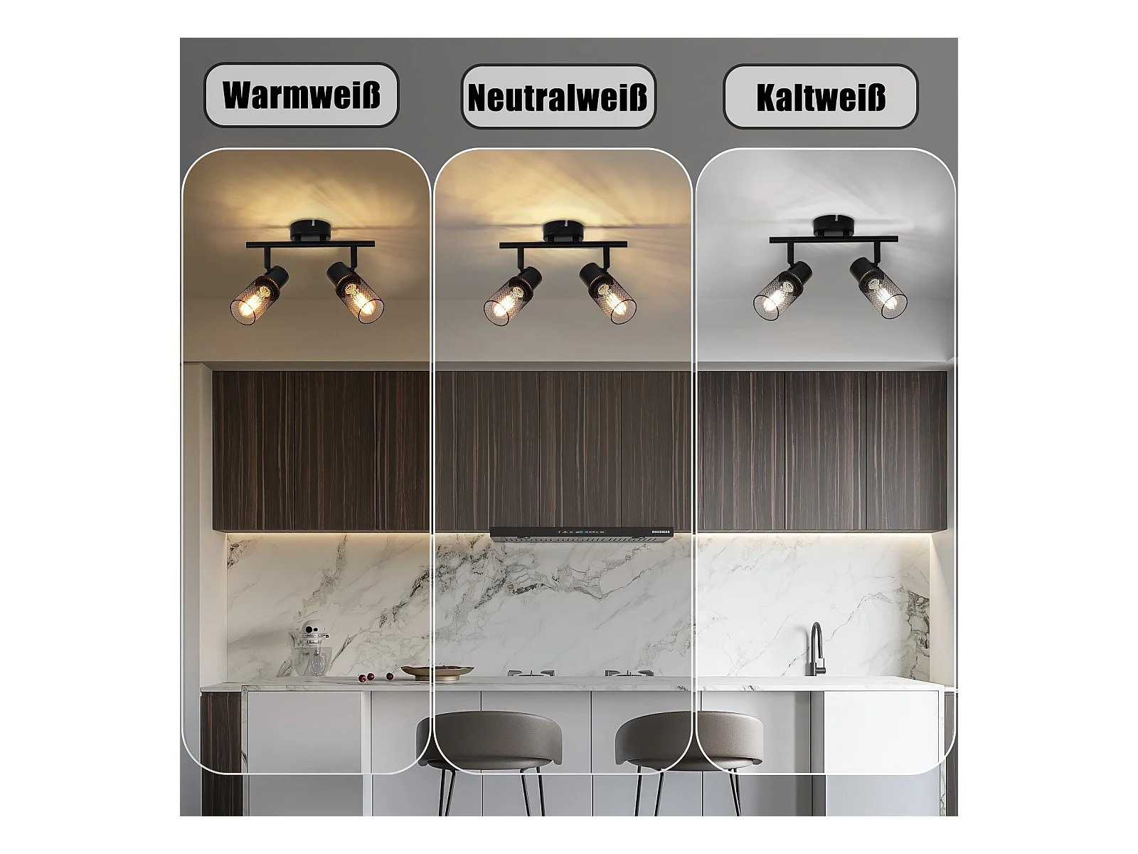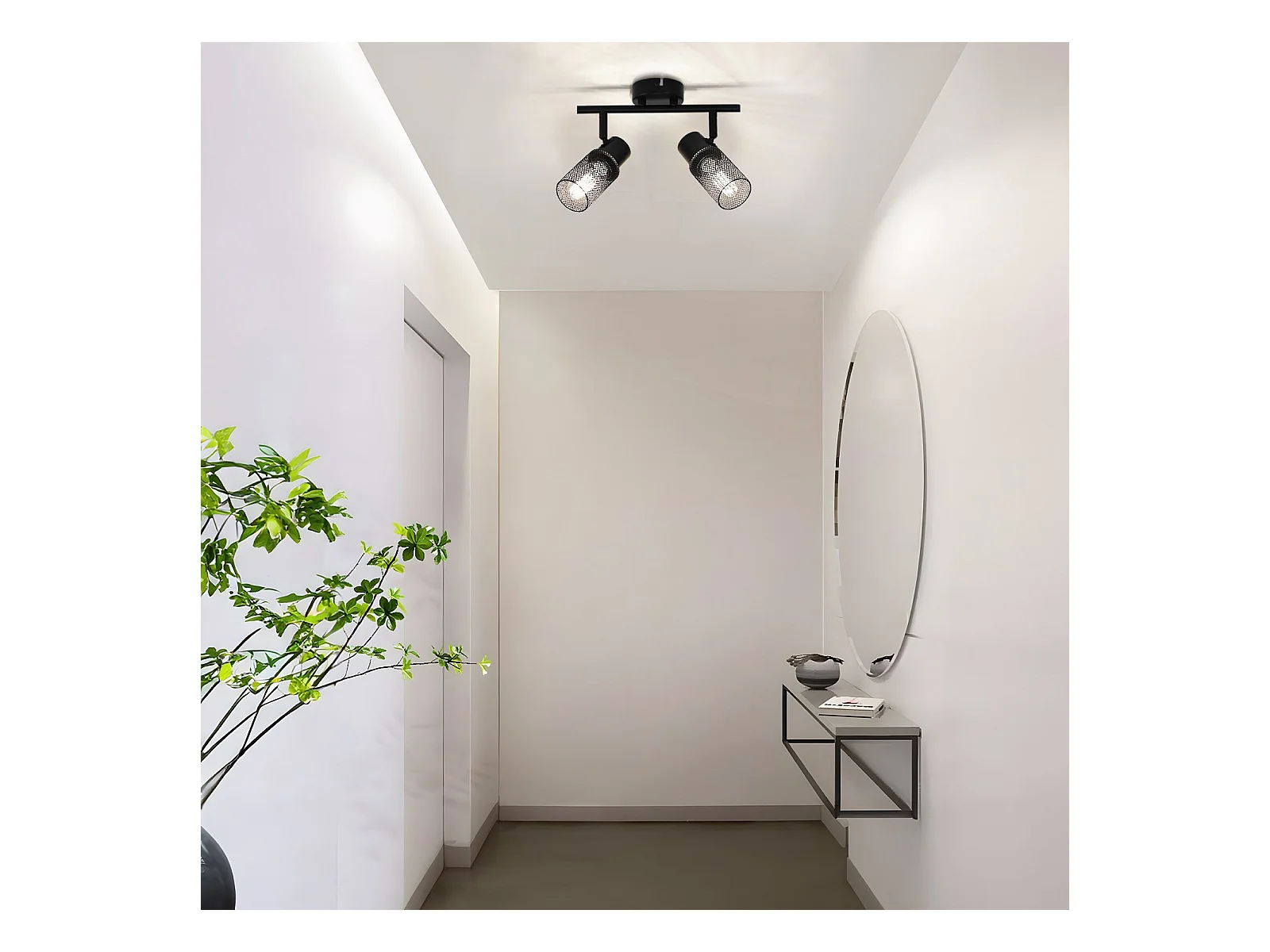 NETTLIFE Deckenleuchte 2 Strahler Schwarz Industrie Metall Schwenkbar 330° E27 LED für Flur Korridor Wohnzimmer Schlafzimmer