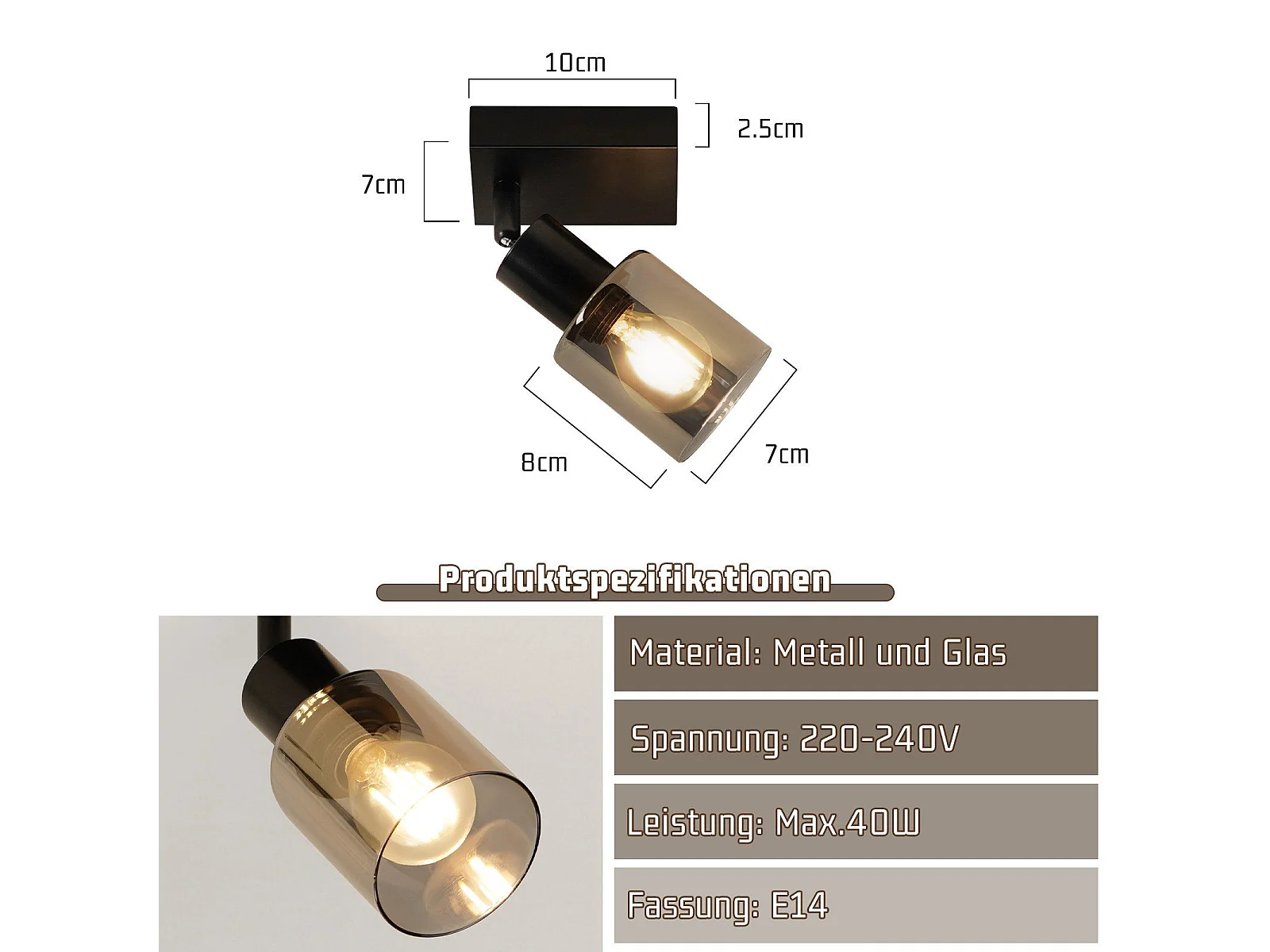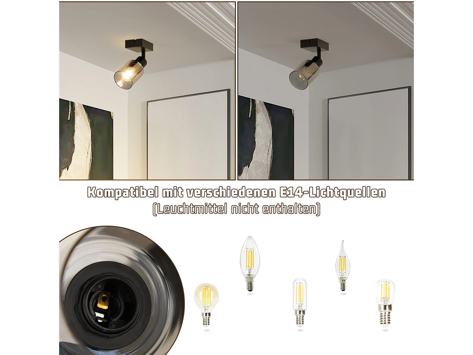 NETTLIFE Deckenleuchte Spot 1-flammig Schwarz Industrial E14 Deckenlampe für Wohnzimmer