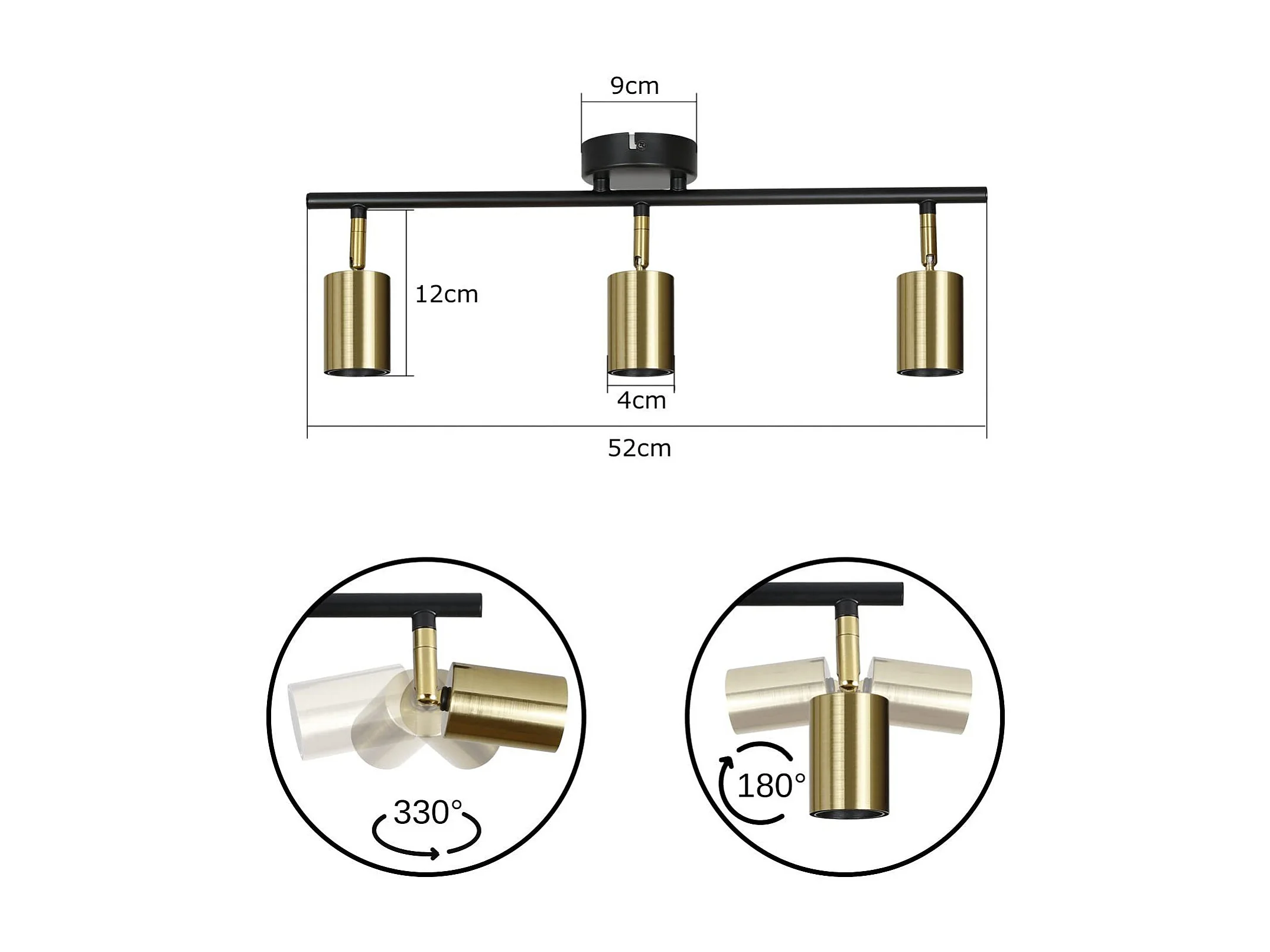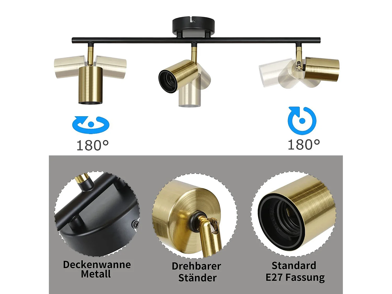 3er Vintage Deckenstrahler E27 Industrielampe Schwarz Gold Retro Schwenkbar Modern