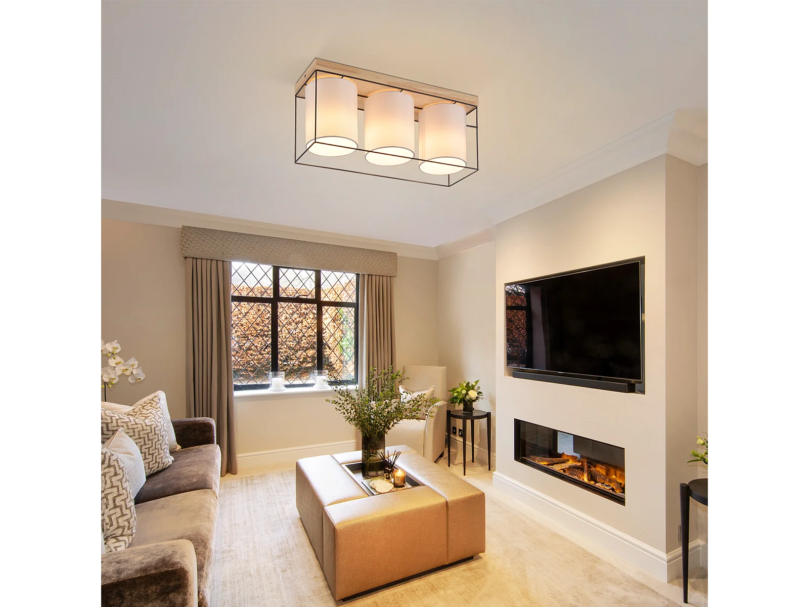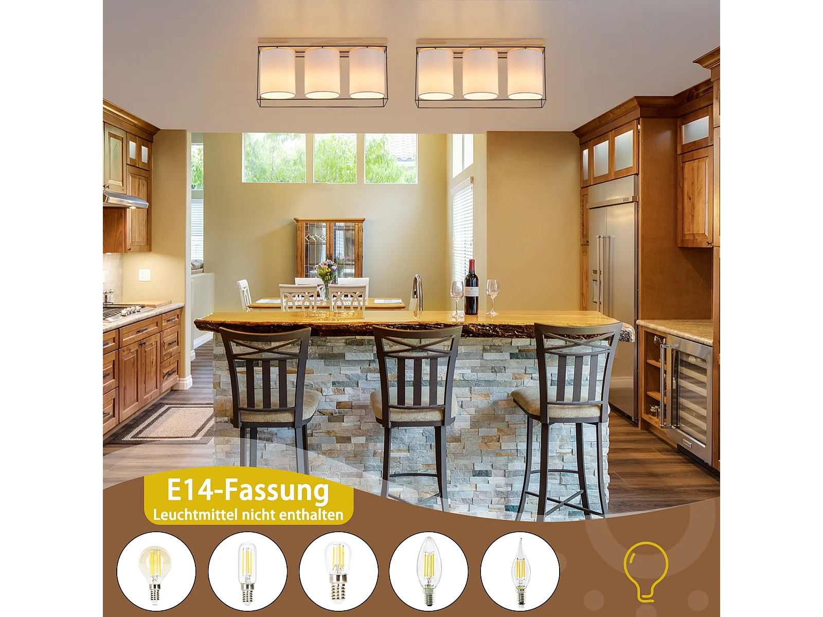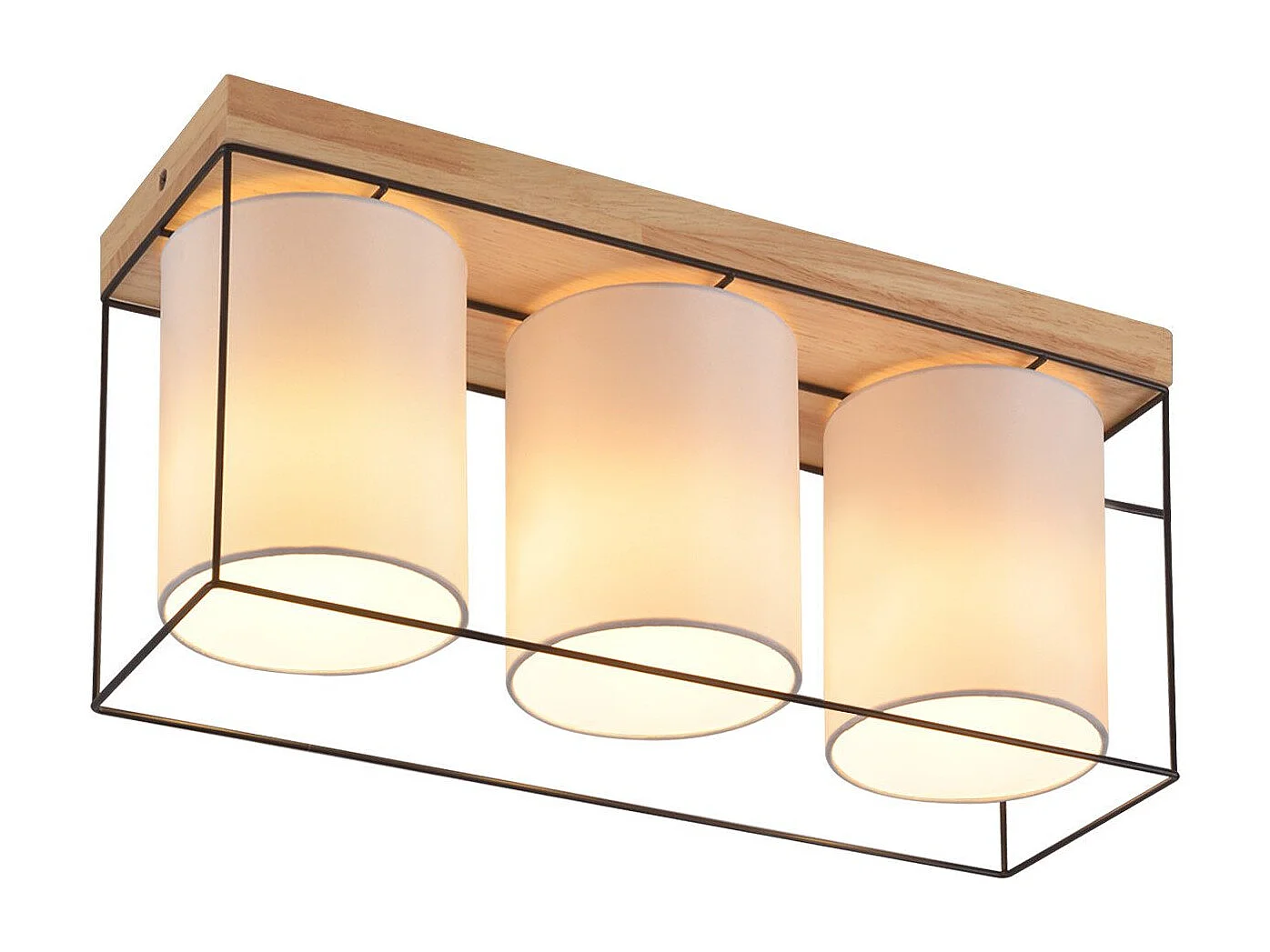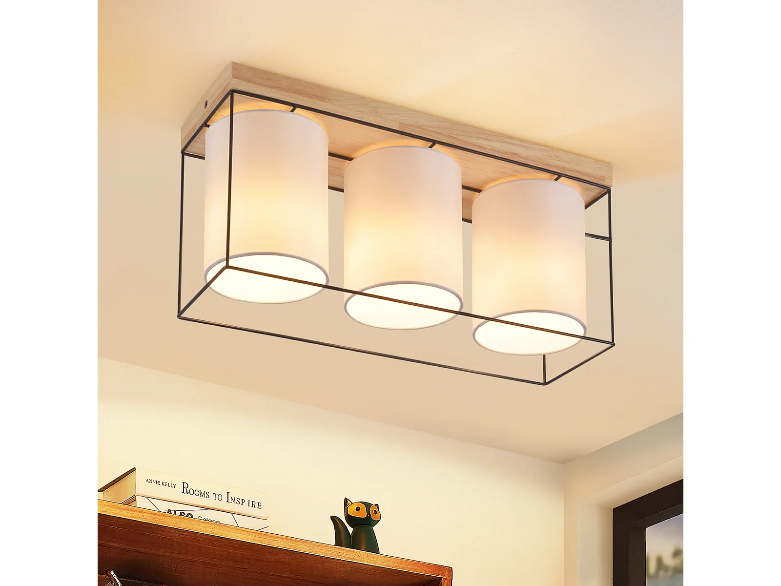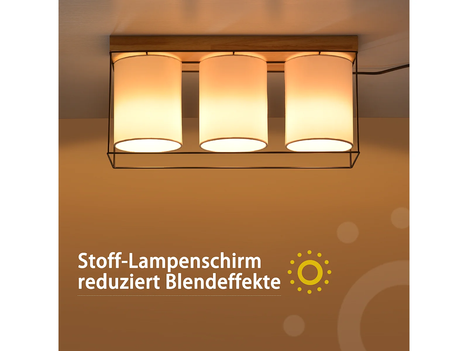 NETTLIFE Vintage-Deckenleuchte aus Holz für das Wohnzimmer mit 3 E14-Glühbirnen im industriellen Retro-Stil