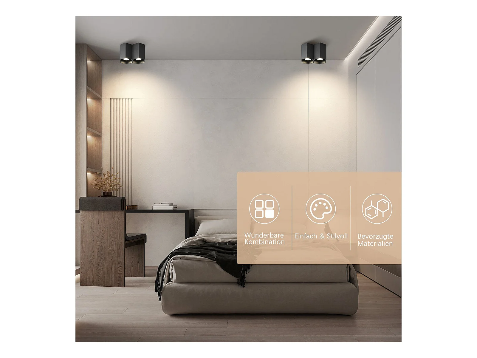 NETTLIFE Deckenstrahler mit GU10-Aufbaumontage, hell, für Café, Küche, Esszimmer, Deckenleuchte, ohne Leuchtmittel, 2 Stück, schwarz