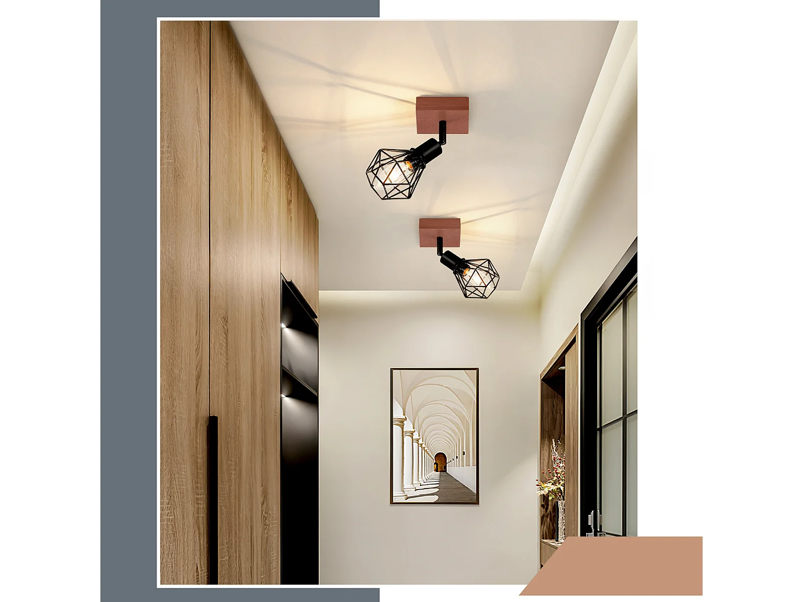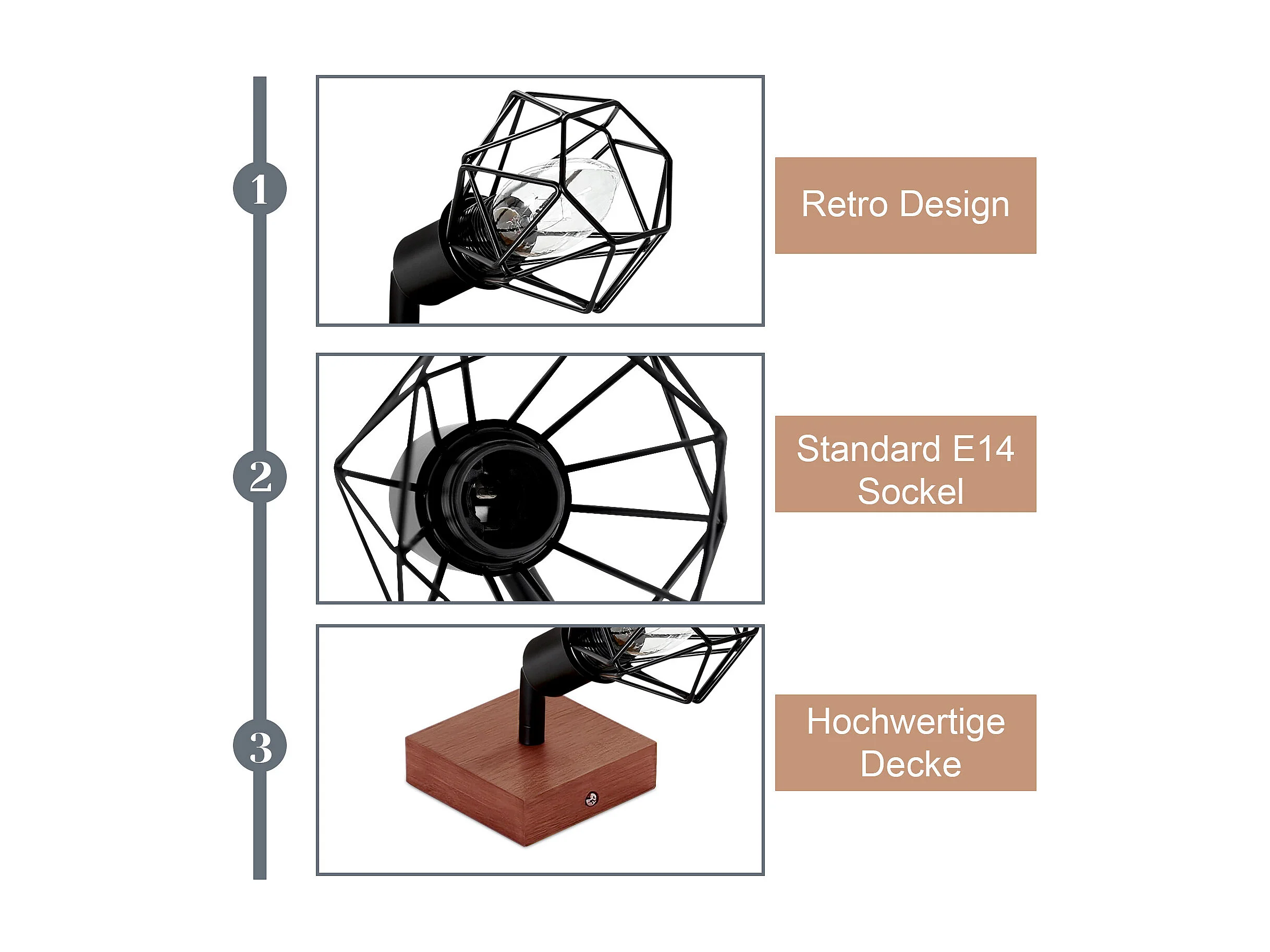 NETTLIFE Deckenstrahler Schwarz Holz E14 Vintage Metall schwenkbar 350° max. 40 W für Flur Wohnzimmer Schlafzimmer Küche