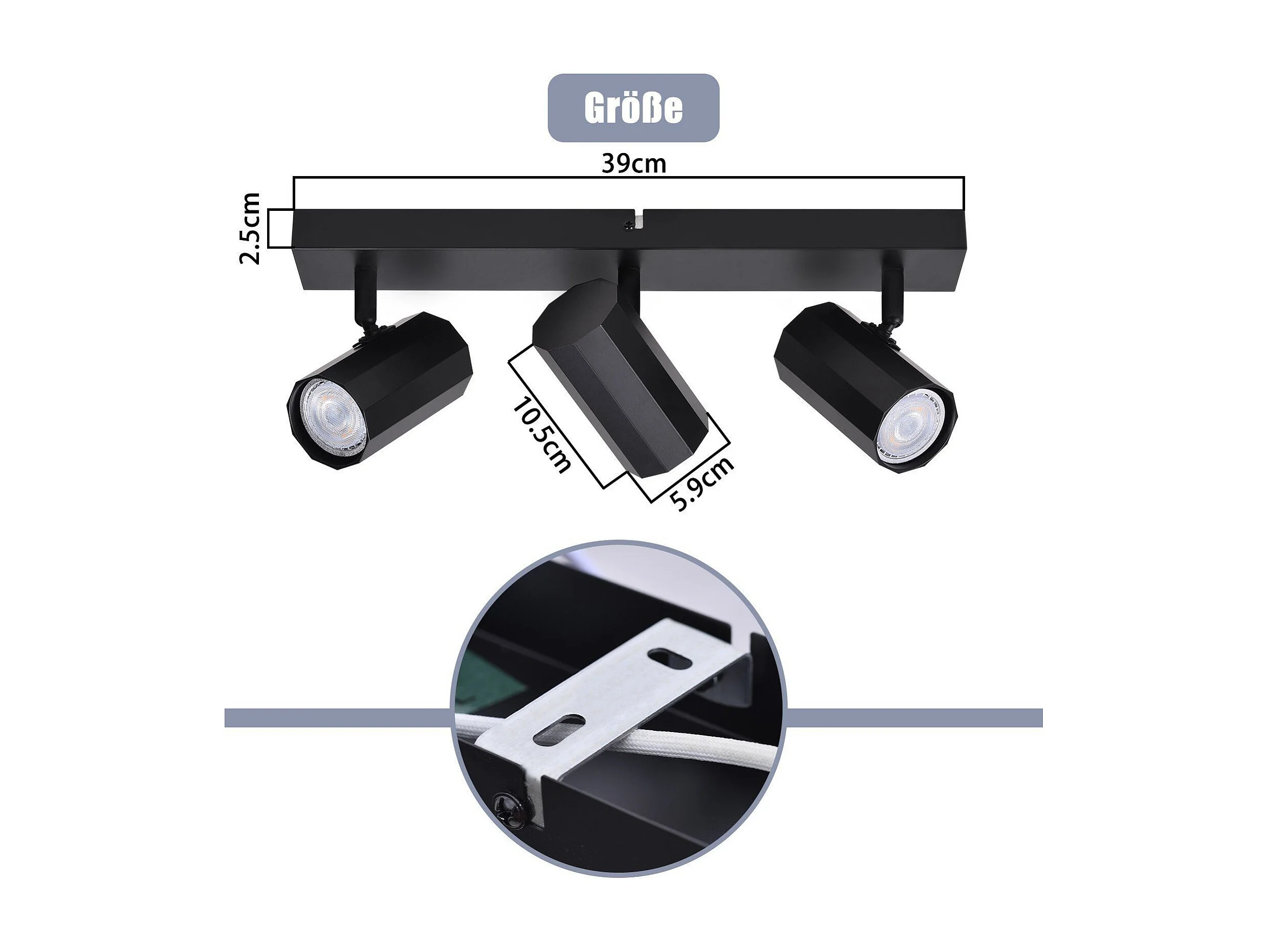 NETTLIFE Deckenleuchte 3 Metallspots MAX. 25W GU10 Schwarze Retro Glühbirnen Vintage Wohnzimmerlampe 350° verstellbar für Küche, Esszimmer