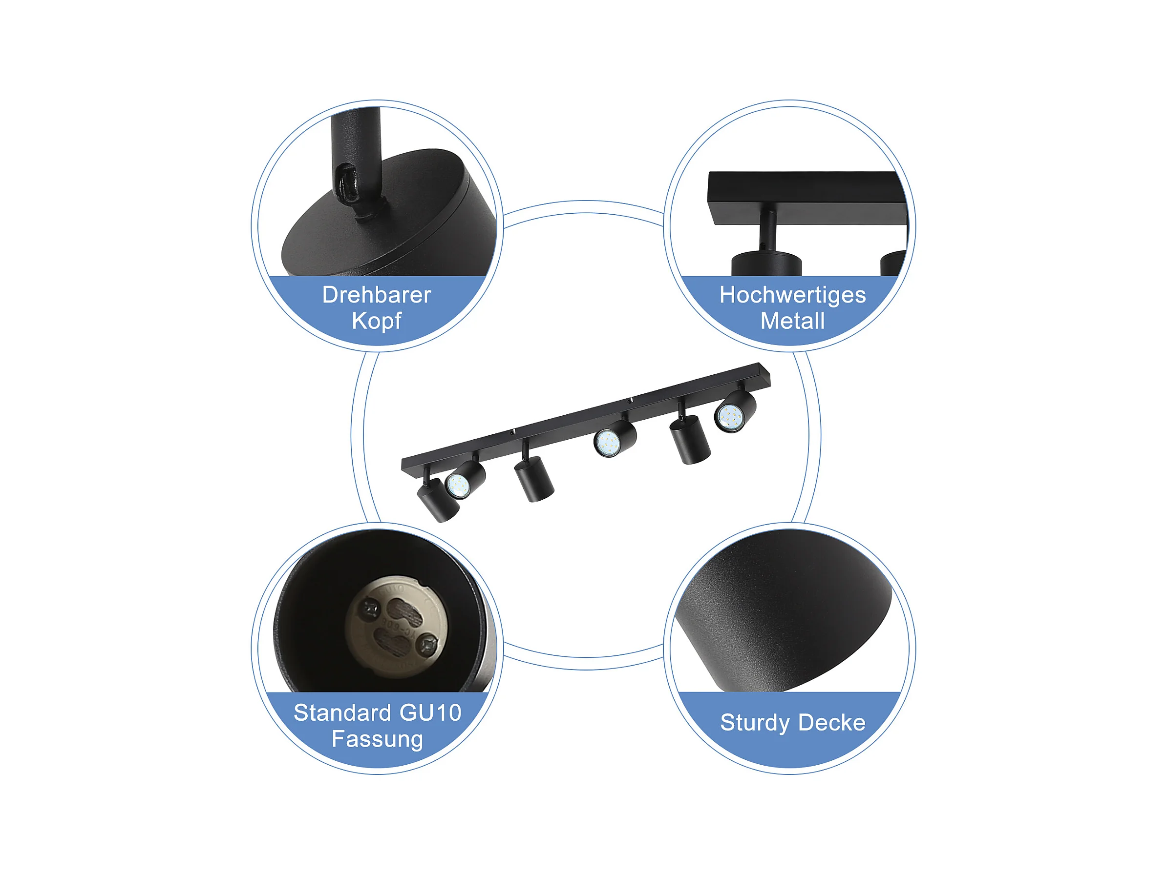 NETTLIFE Deckenstrahler 6 Flammig Deckenleuchte Schwarz - LED Deckenlampe Deckenspot Strahler GU10 Schwenkbar 350°