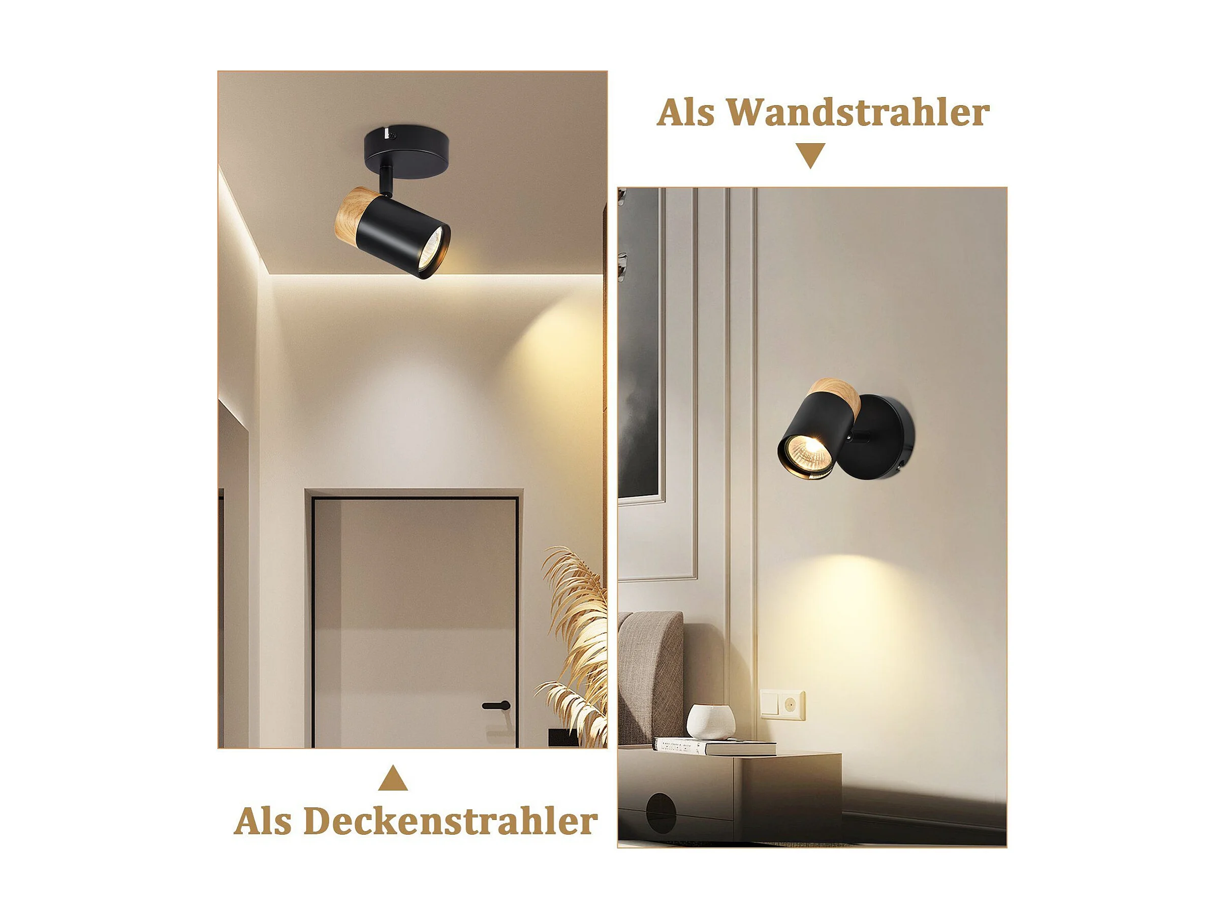 NETTLIFE LED Deckenleuchte Spots Holz GU10 Schwenkbar 330° Lampe Schwarz Vintage Interior für Flur Wohnzimmer Schlafzimmer Küche