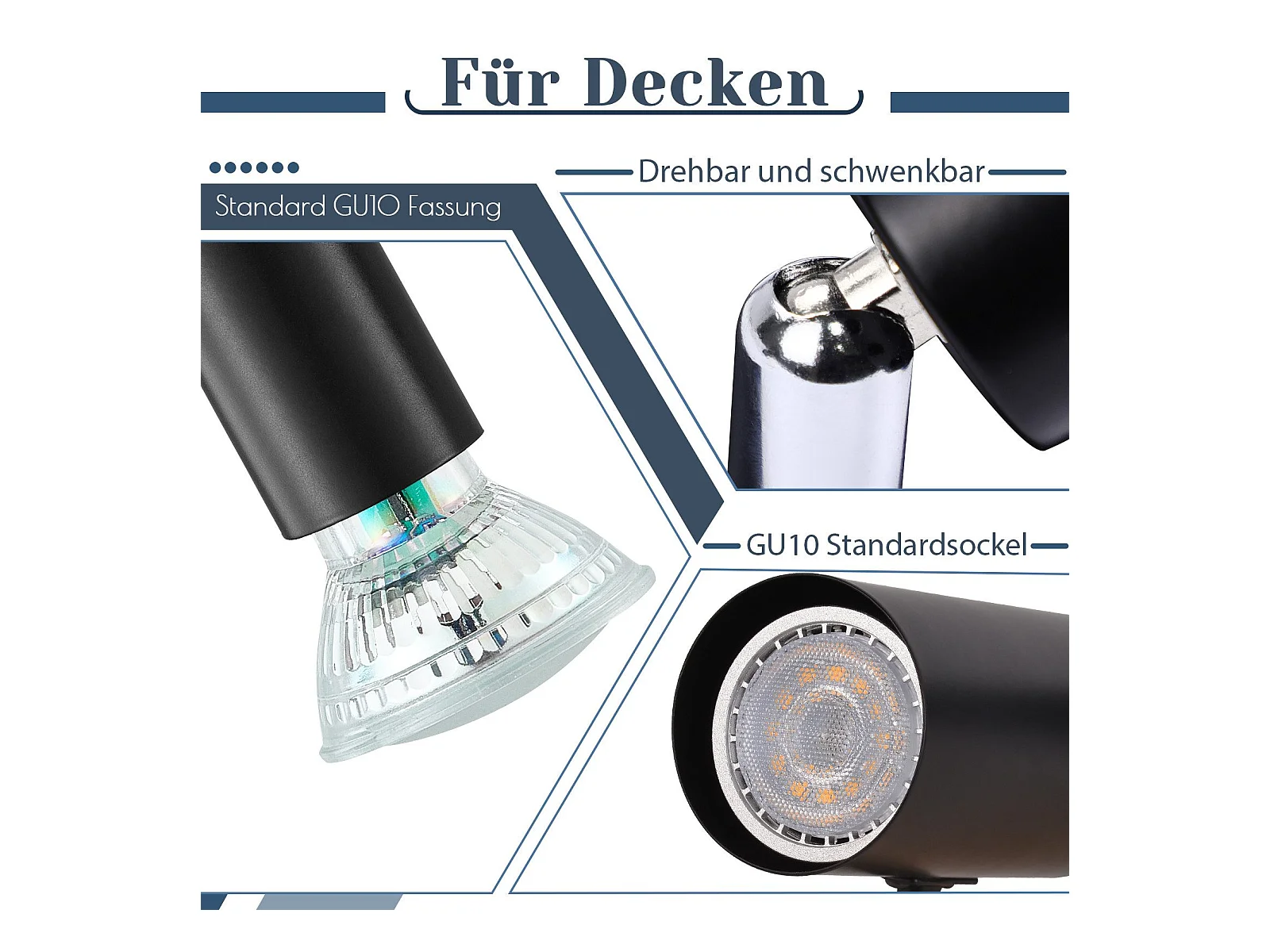 Gu10 LED Deckenleuchte - 3 moderne runde Deckenspots 350° Deckenspots