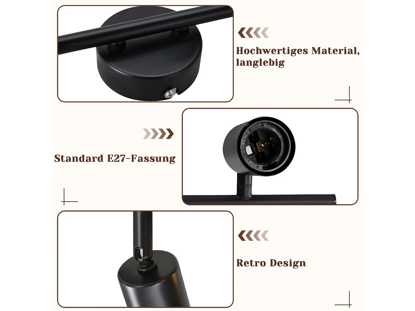 Deckenspot schwarz Deckenleuchte E27 Vintage 6 flammig 350° schwenkbar Industrial