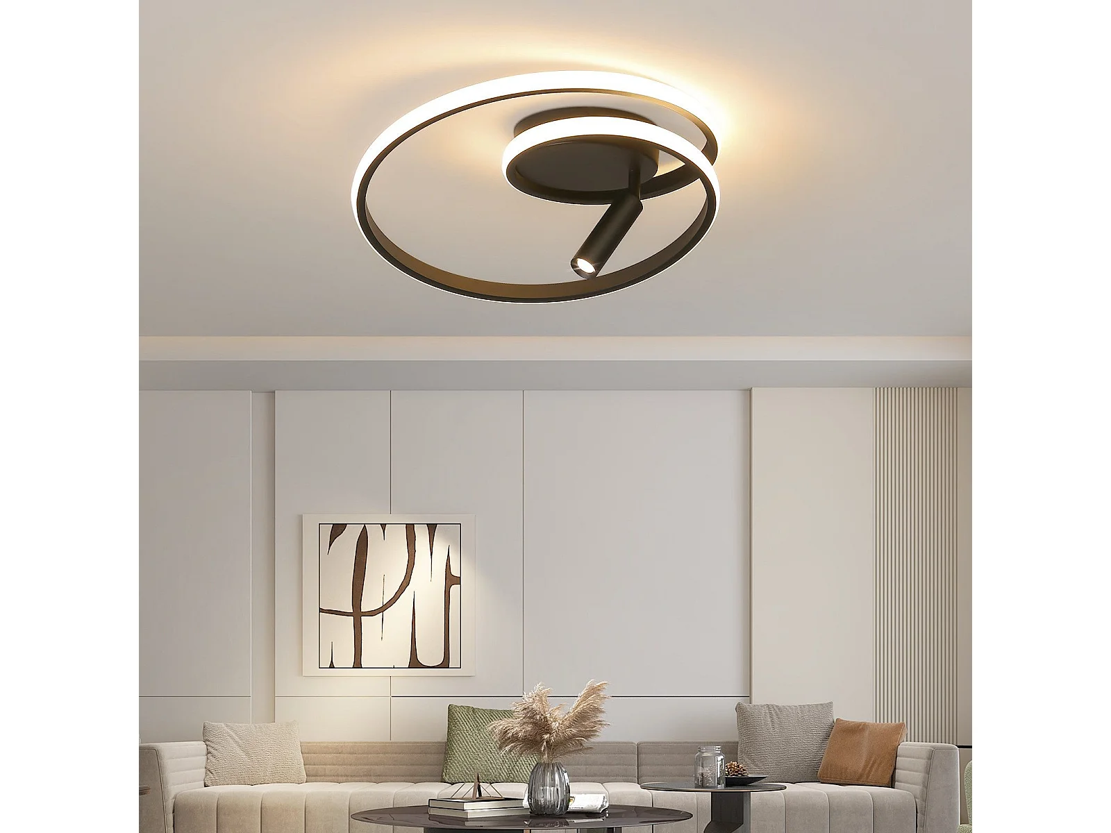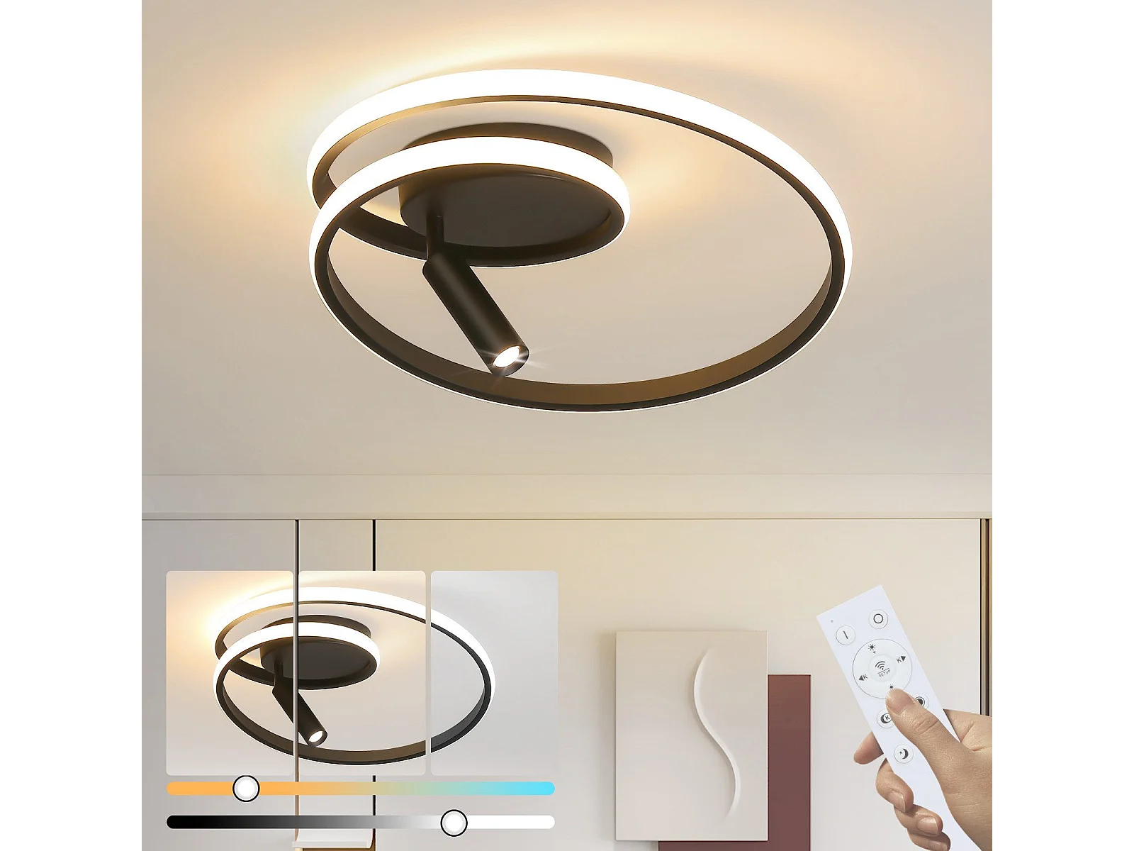 NETTLIFE Dimmbare LED-Deckenleuchte, 40 cm, modernes Design, 37 W, mit Strahler, für Schlafzimmer, Wohnzimmer, Schwarz