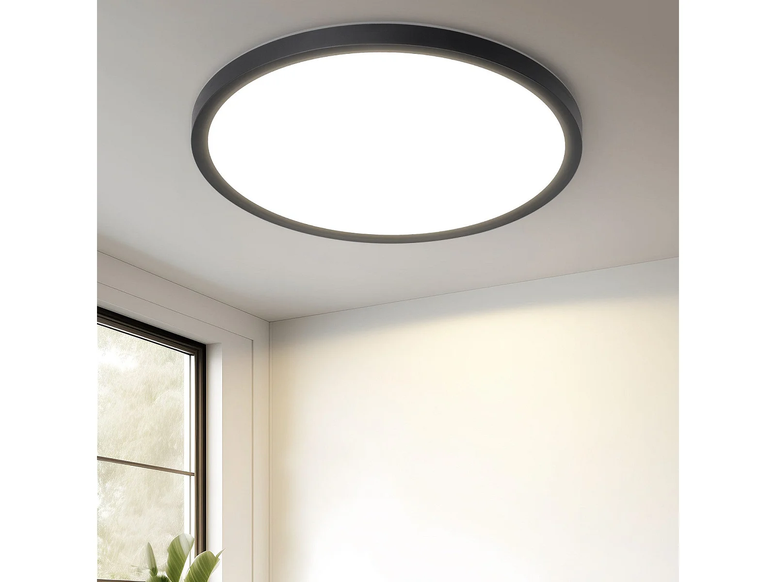 NETTLIFE Flache LED-Deckenleuchte für Schlafzimmer, Schwarz, 18 cm, 15 W, nicht dimmbar, Warmweiß 3000 K