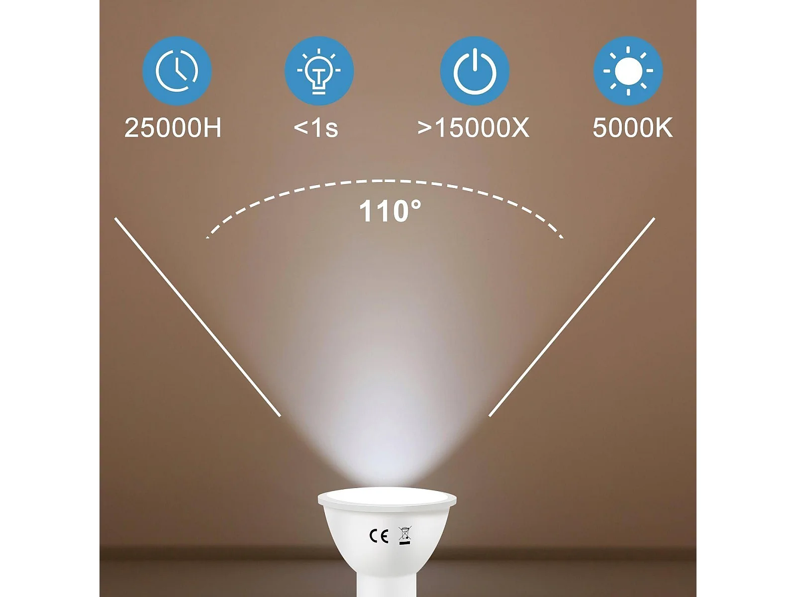 10 LED-Lampen Gu10 Kaltweiß 6 W 5000 K 60 W Energiesparwinkel 110 ° nicht dimmbar