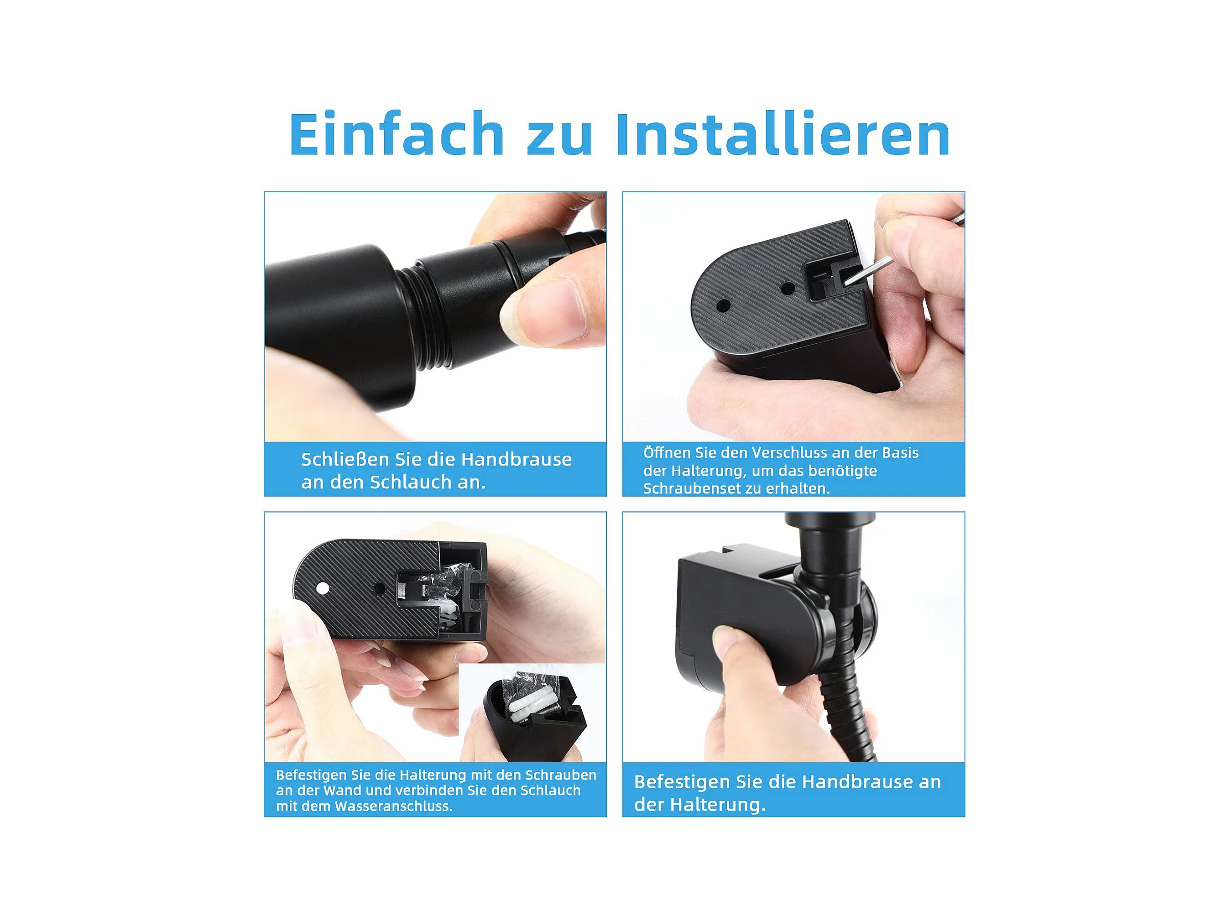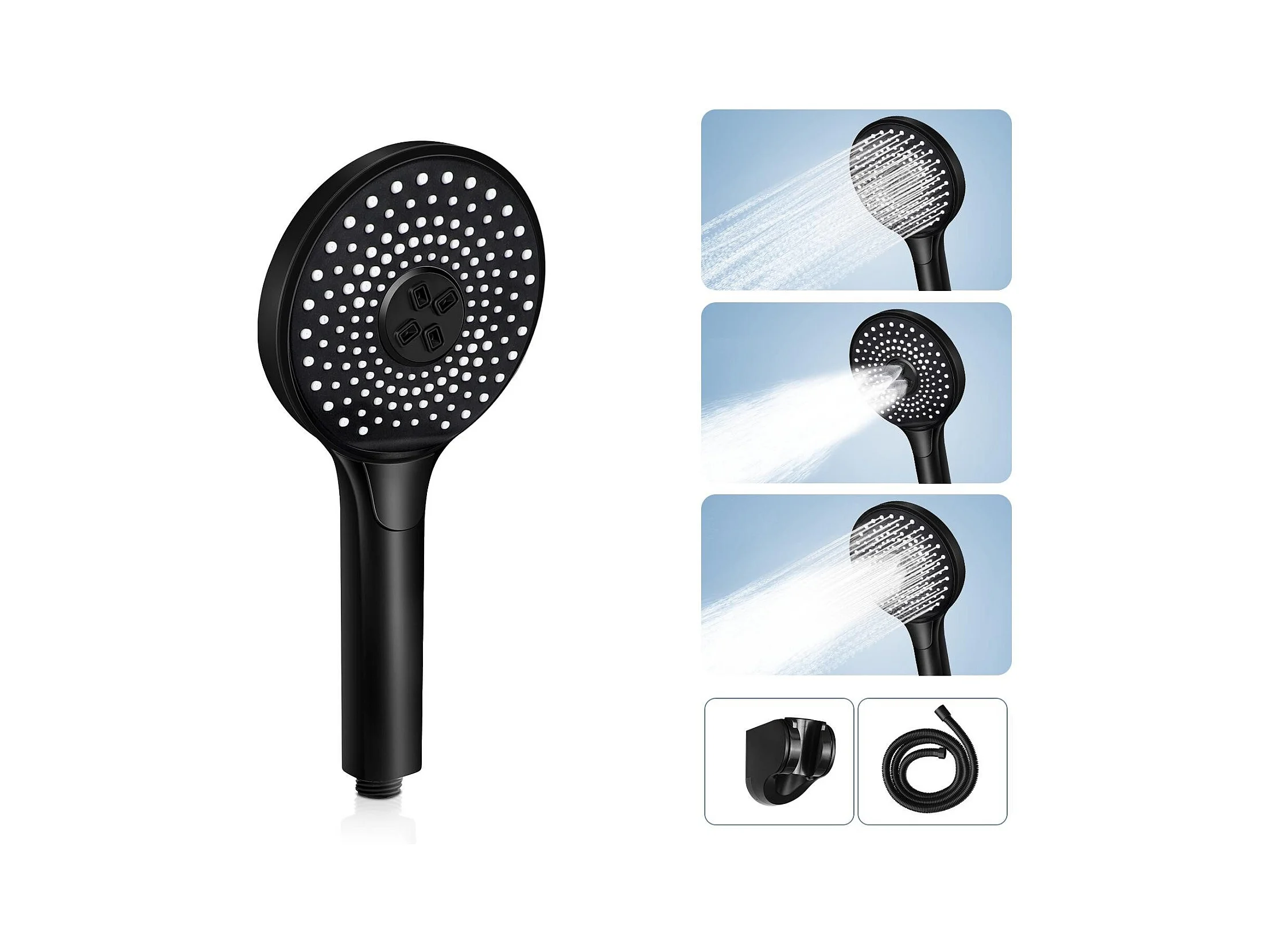 NETTLIFE Handbrause, rund, wassersparend, mit 3 Sprühdüsen, Schwarz