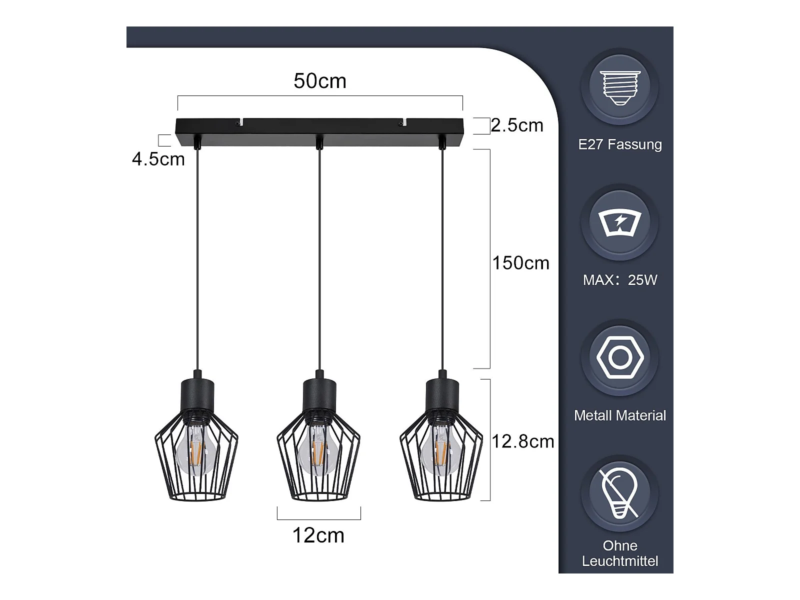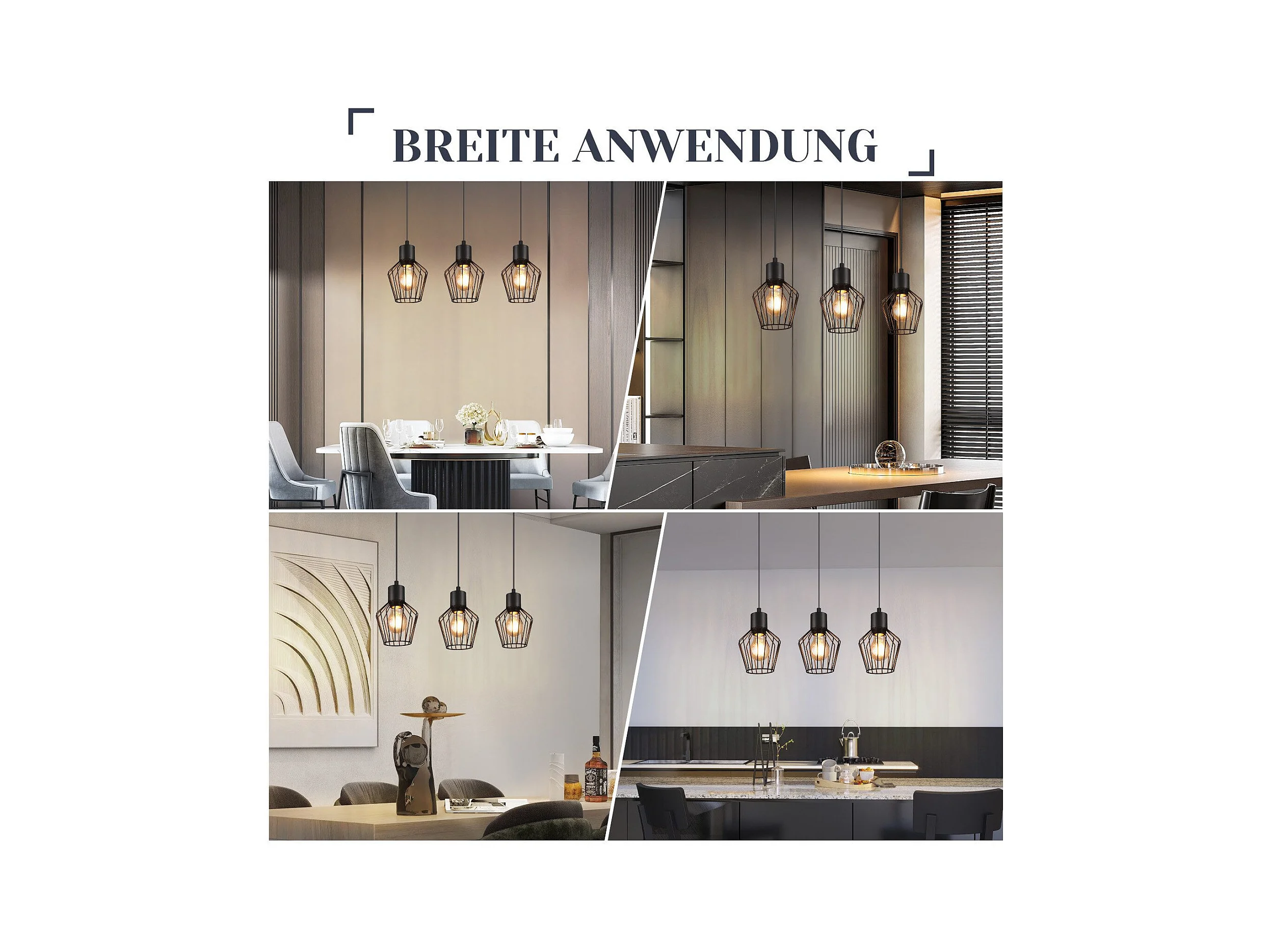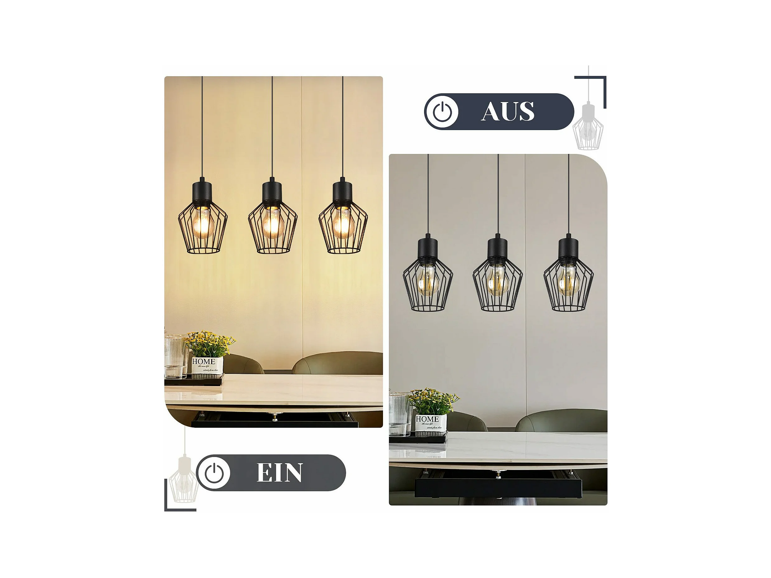 NETTLIFE Hängelampe, 3 Lichter, Metall – Hängelampe, Esstisch, industrielle Küchenlampe, schwarze LED-E27-Metalllampen für Flur, Schlafzimmer, Wohnzimmer, Café