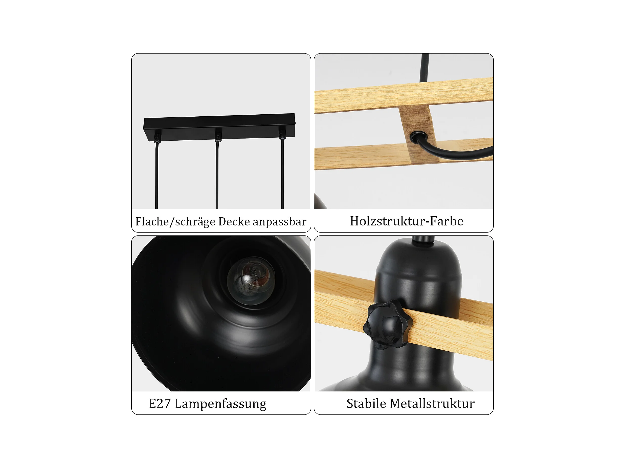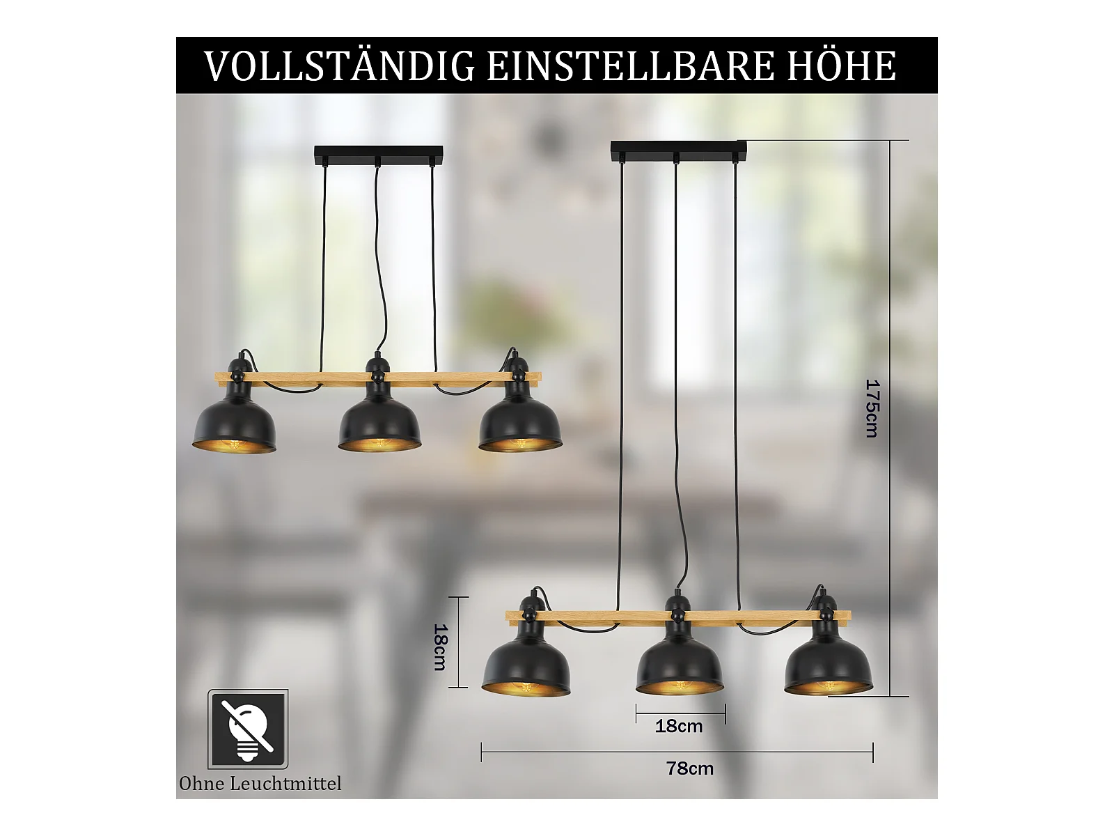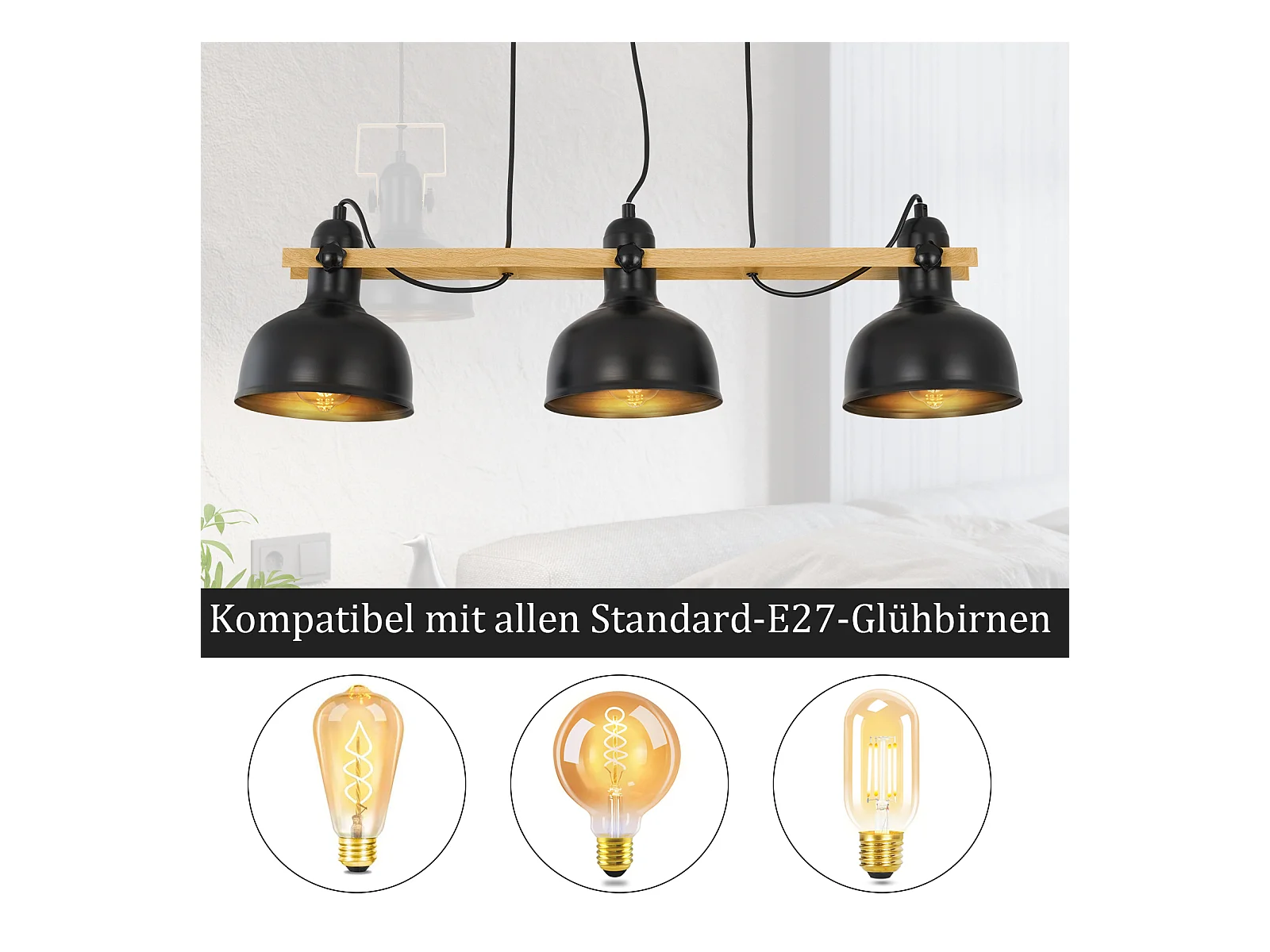 Vintage Pendelleuchte 3-flammig Schwarz Retro Industriell E27 Max.40w
