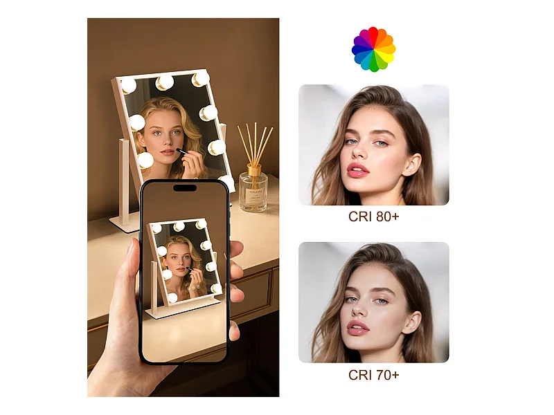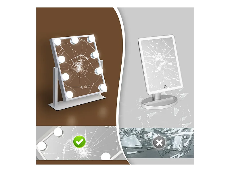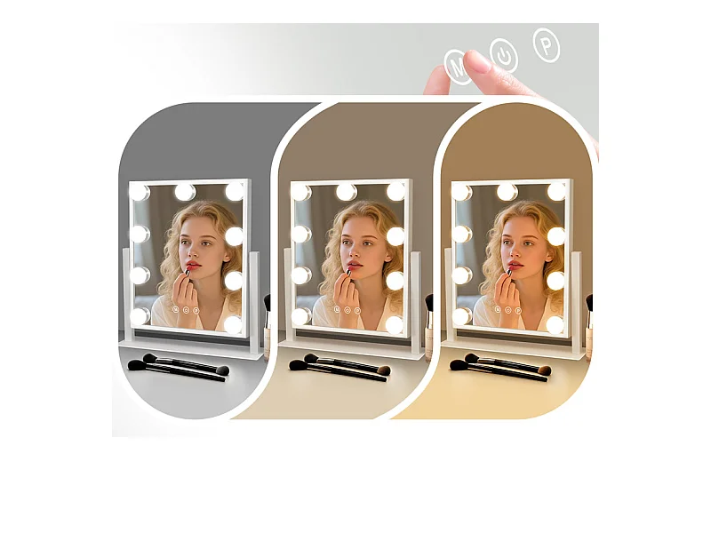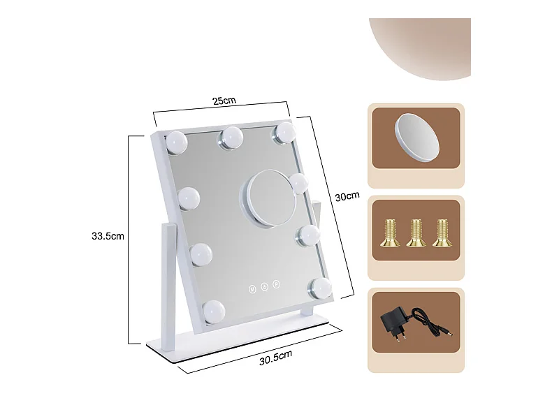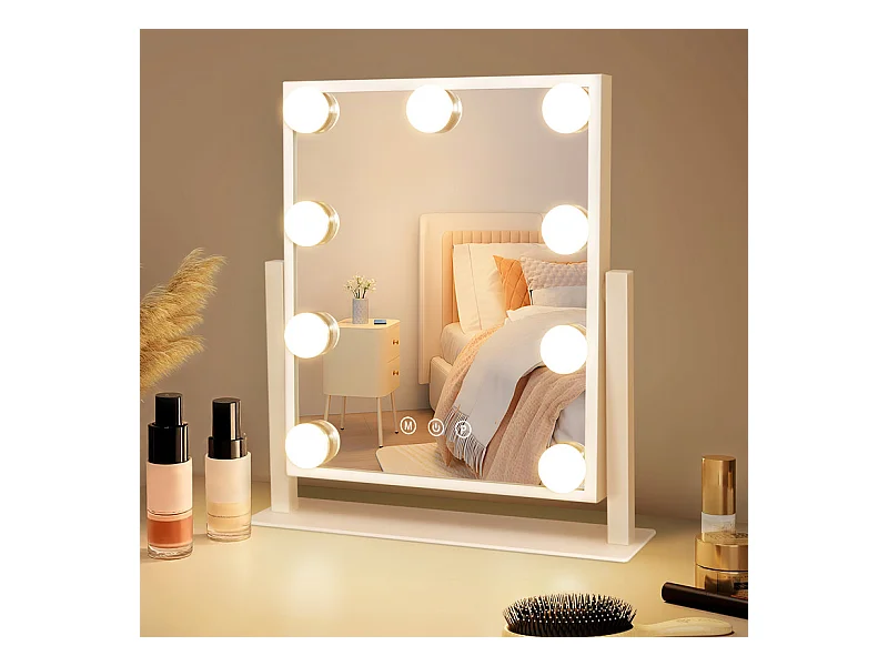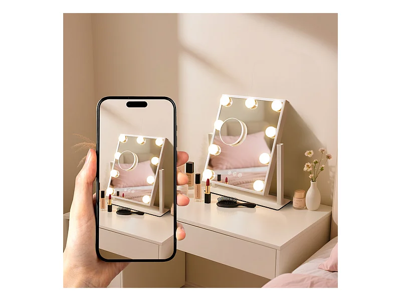 NETTLIFE Hollywood-Spiegel, beleuchteter Schminkspiegel – Kosmetikspiegel mit 9 LEDs, kleiner Kosmetikspiegel mit Licht, drehbar, 3 Modi