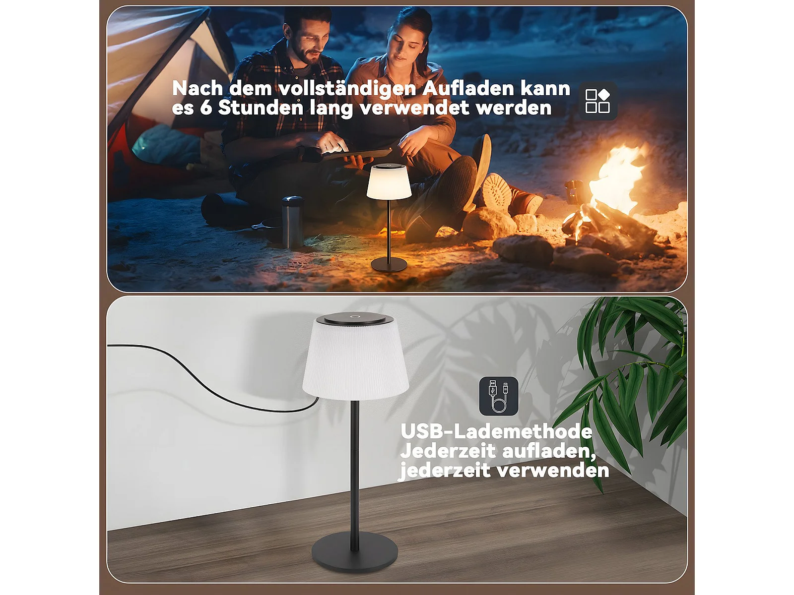 NETTLIFE Kabellose LED-Nachttischlampe, USB wiederaufladbar, Touch, dimmbar, Schwarz, 3600 mhA