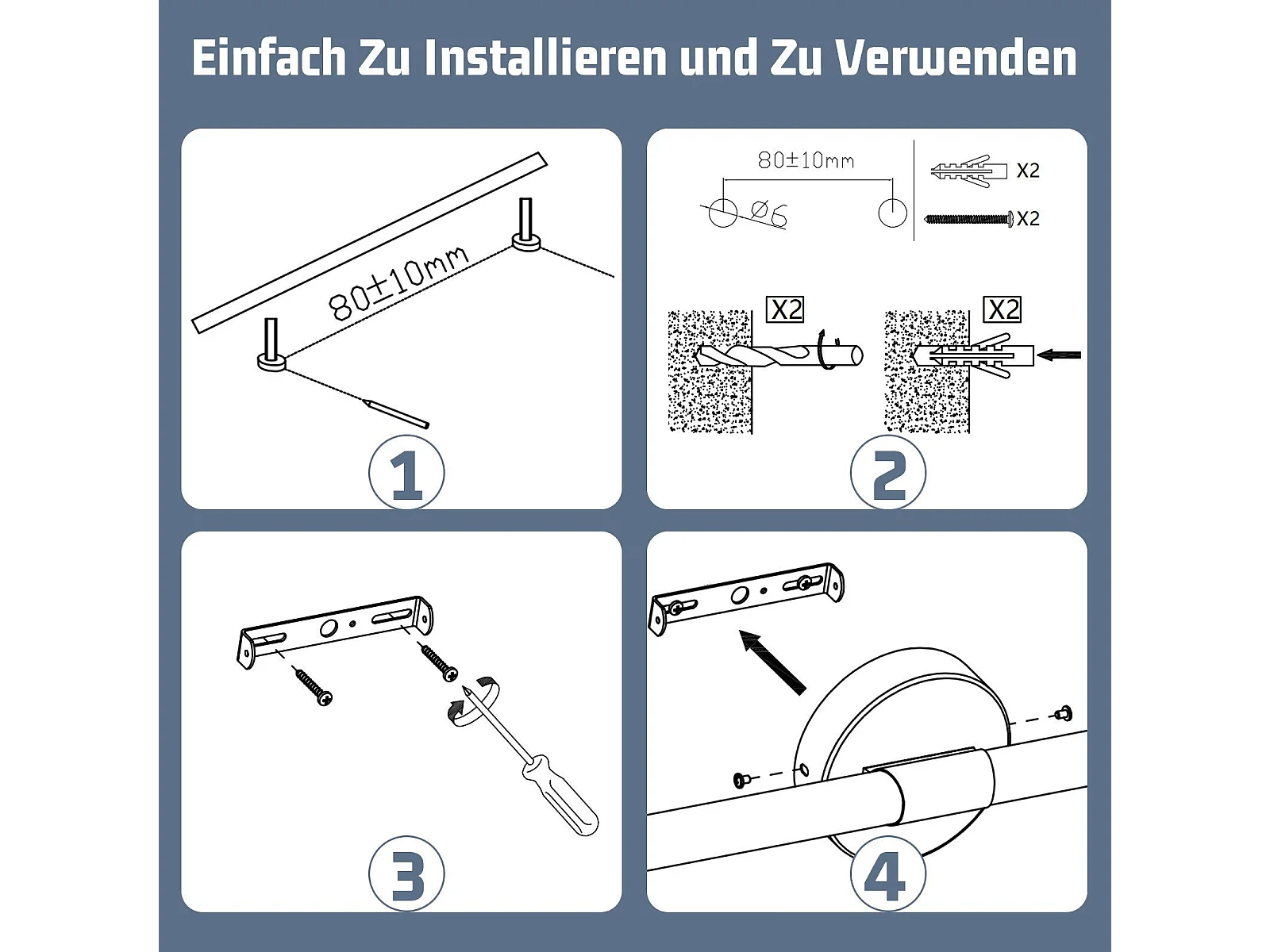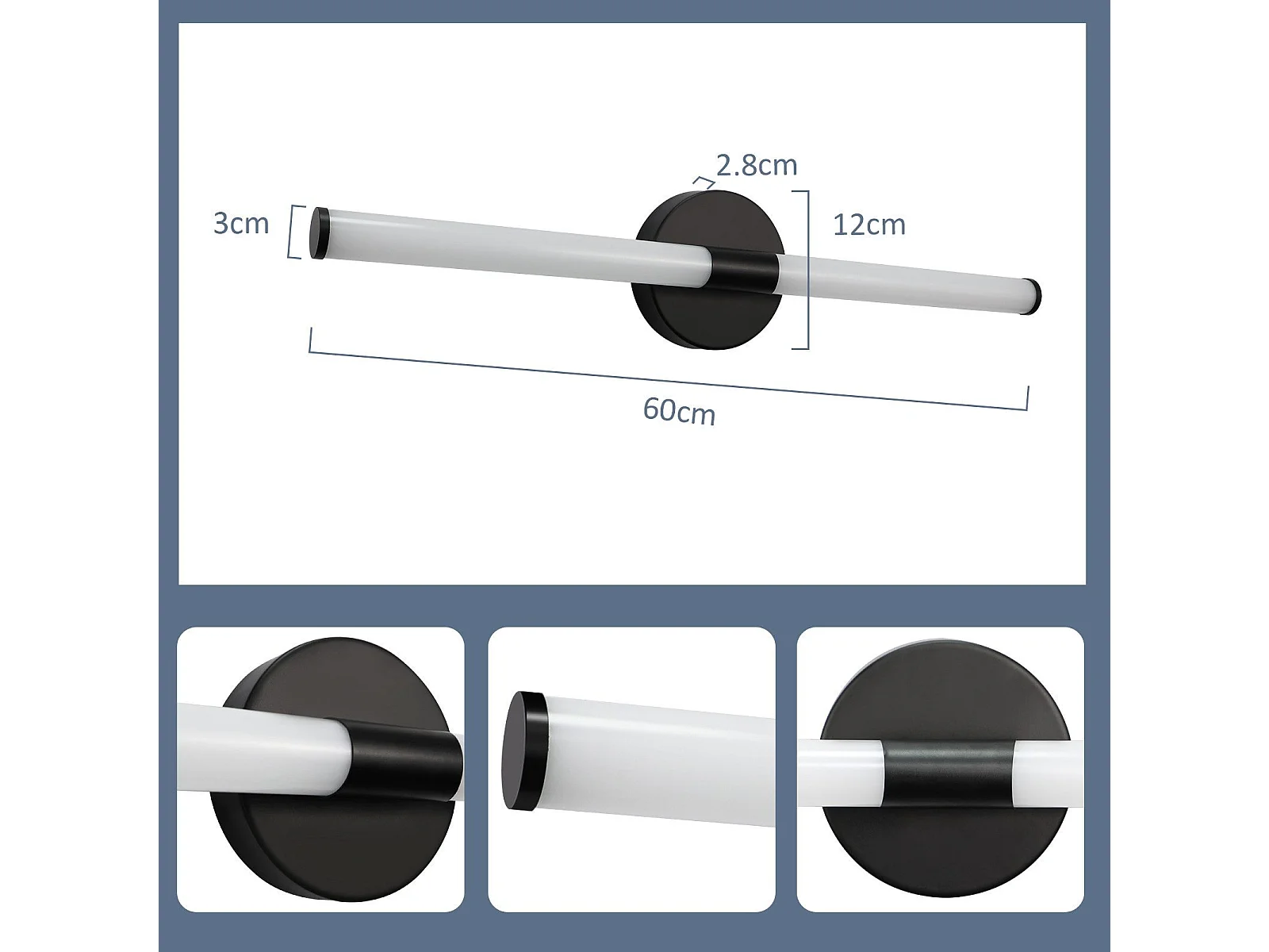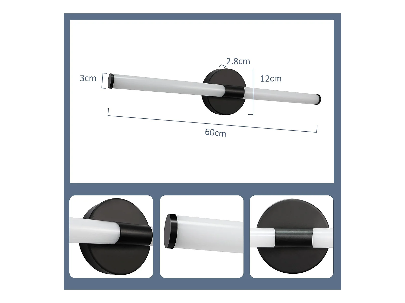 NETTLIFE LED Badezimmer-Wandleuchte 60cm, 8W, Schwarz, 4000K, IP44