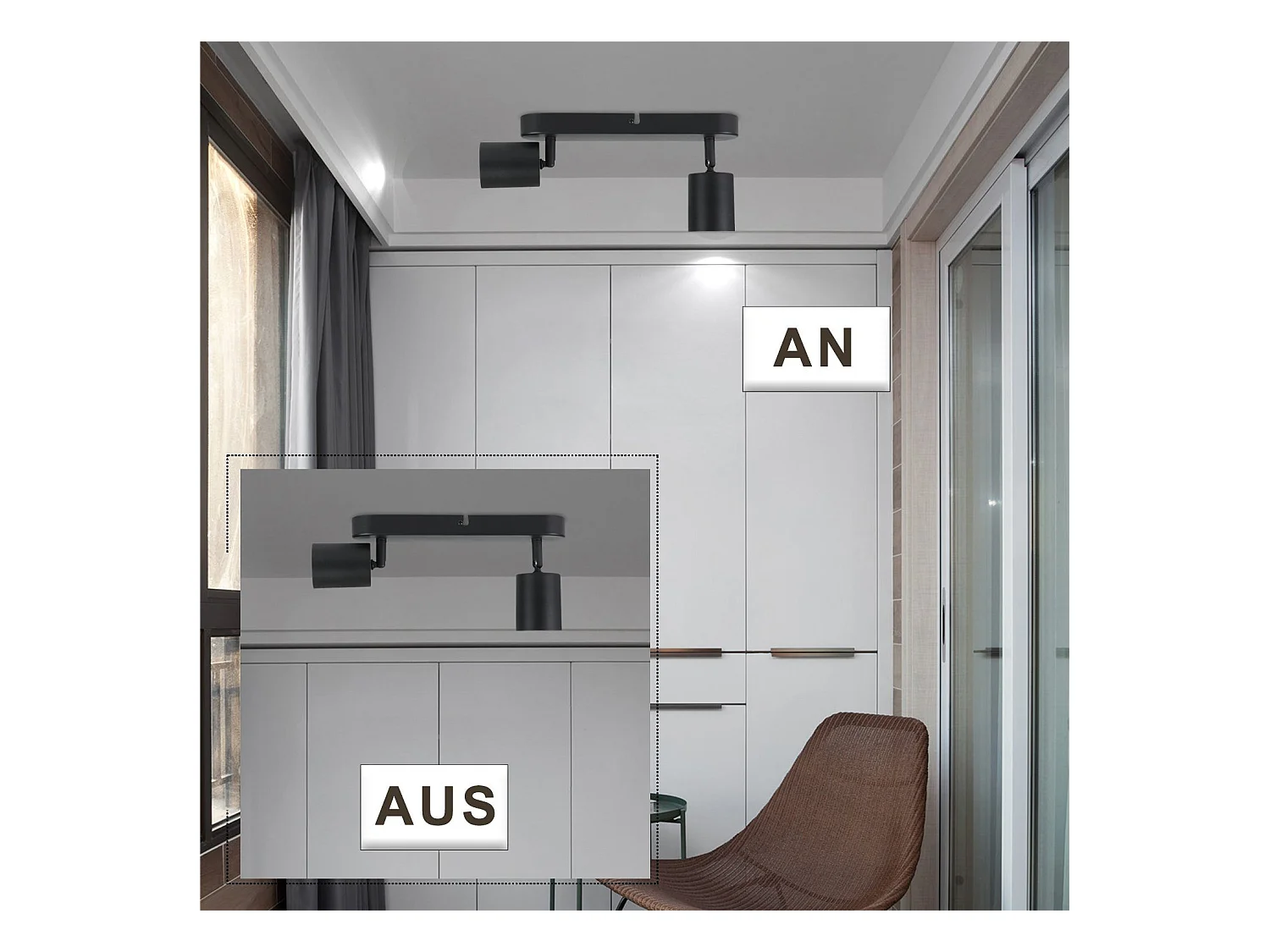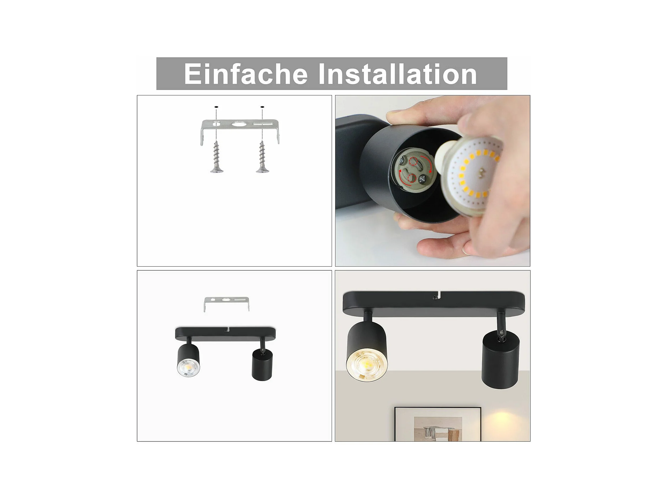 NETTLIFE 2 Deckenstrahler aus schwarzem Metall, 330° verstellbar, GU10-Design für Wohnzimmer, Flur, Treppenhaus, Küche (Leuchtmittel nicht enthalten)