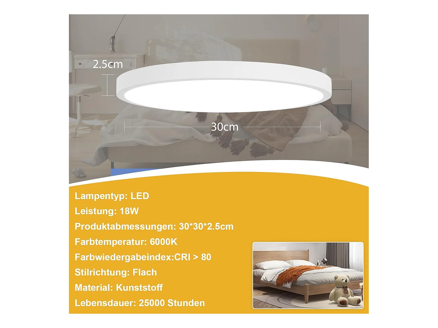 NETTLIFE LED Deckenleuchte Bad Deckenleuchte - Badezimmerlampe Ø30cm flach rund 18W IP44