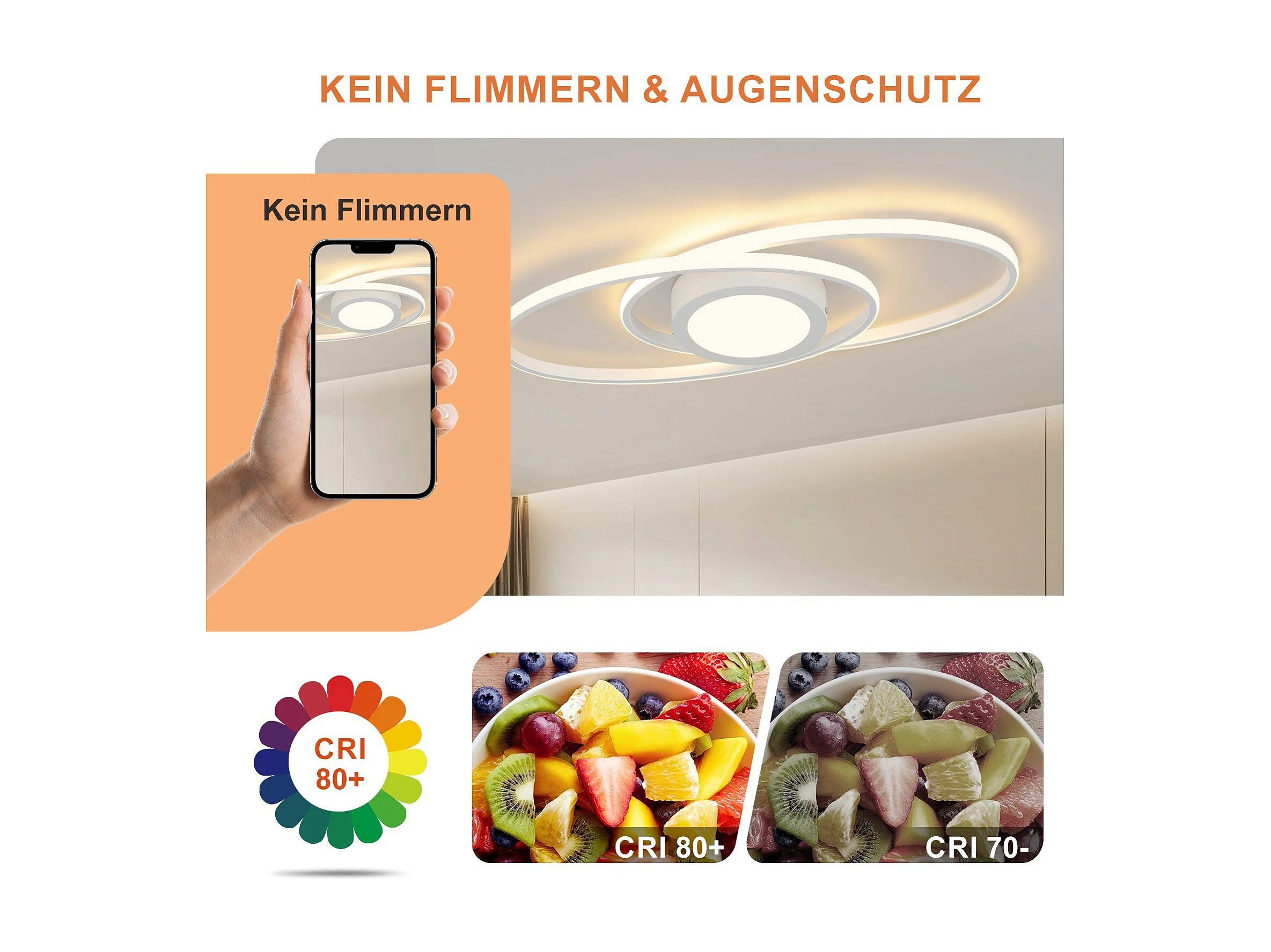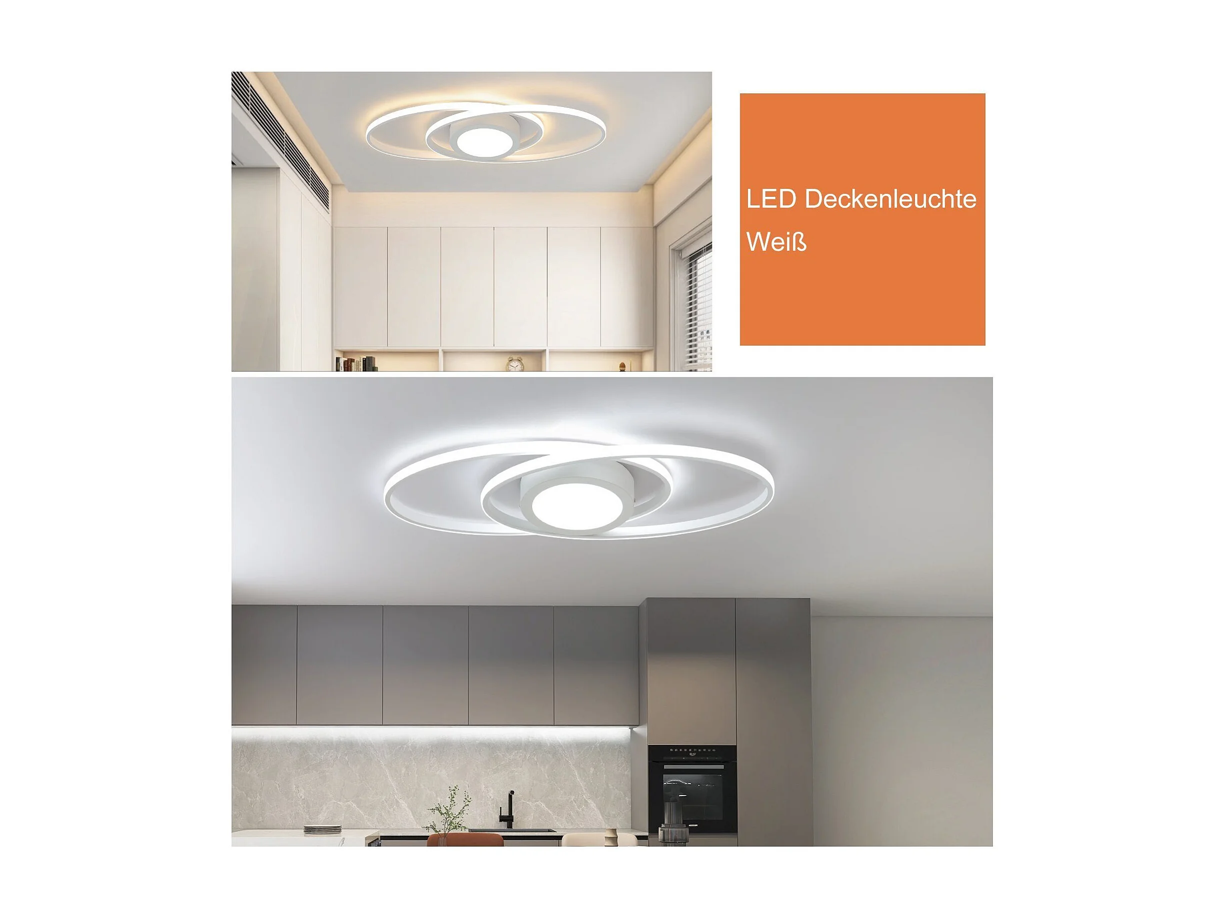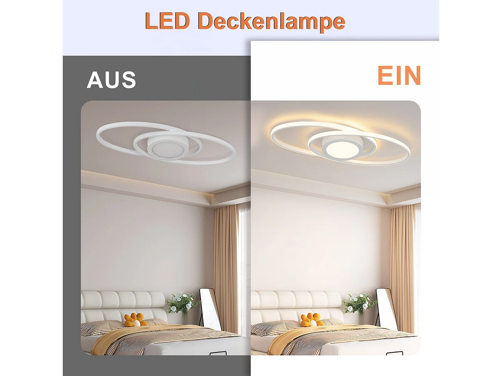 NETTLIFE Ovale LED-Deckenleuchte, 48 W, dimmbar, weiß, mit Fernbedienung, 3000 K – 6500 K, modern für Schlafzimmer, Kinderzimmer, Büro