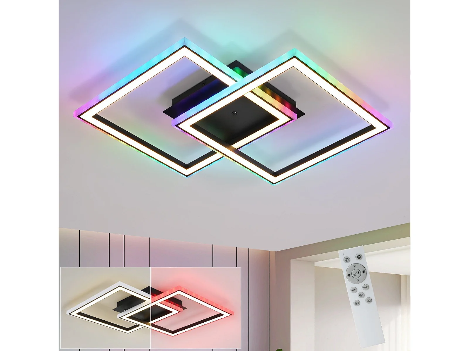 NETTLIFE LED Deckenleuchte für Wohnzimmer, dimmbar, modern, RGB, mit Fernbedienung, 3000-6000K, Modern RGB 13