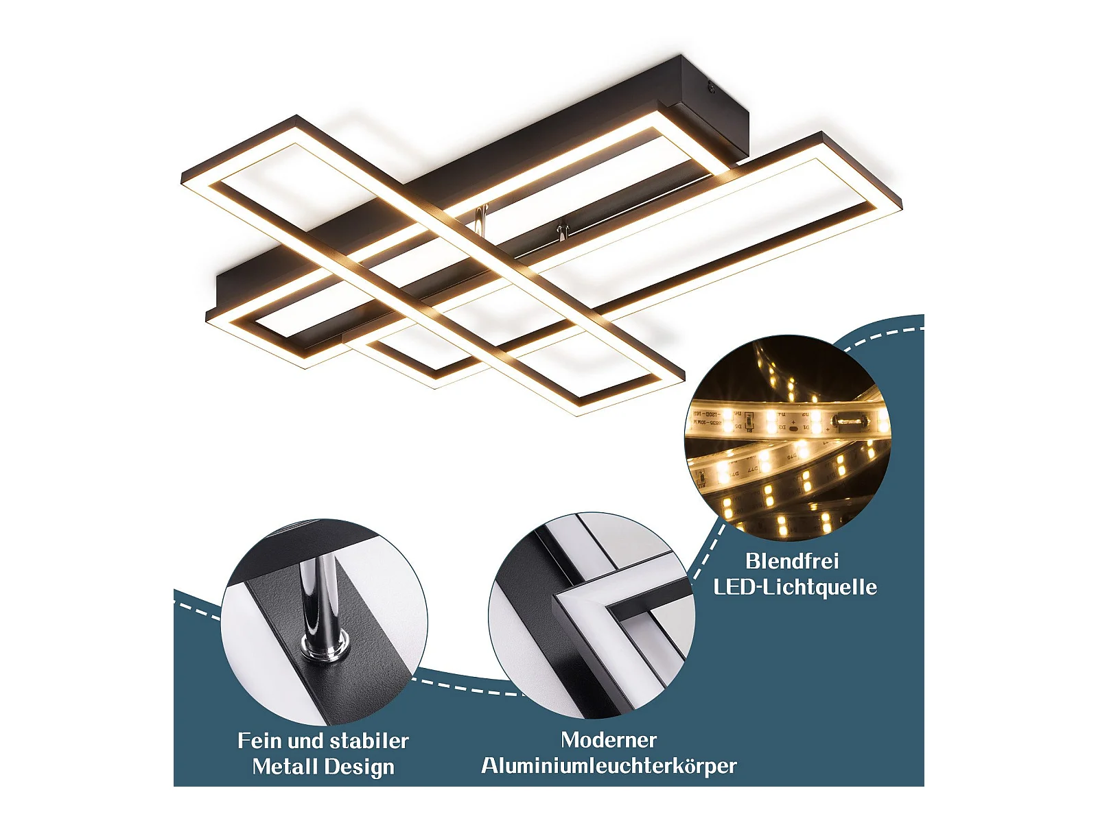 NETTLIFE LED Deckenleuchte für Wohnzimmer, Schwarz, Rechteckig, Dimmbar, Modernes Design