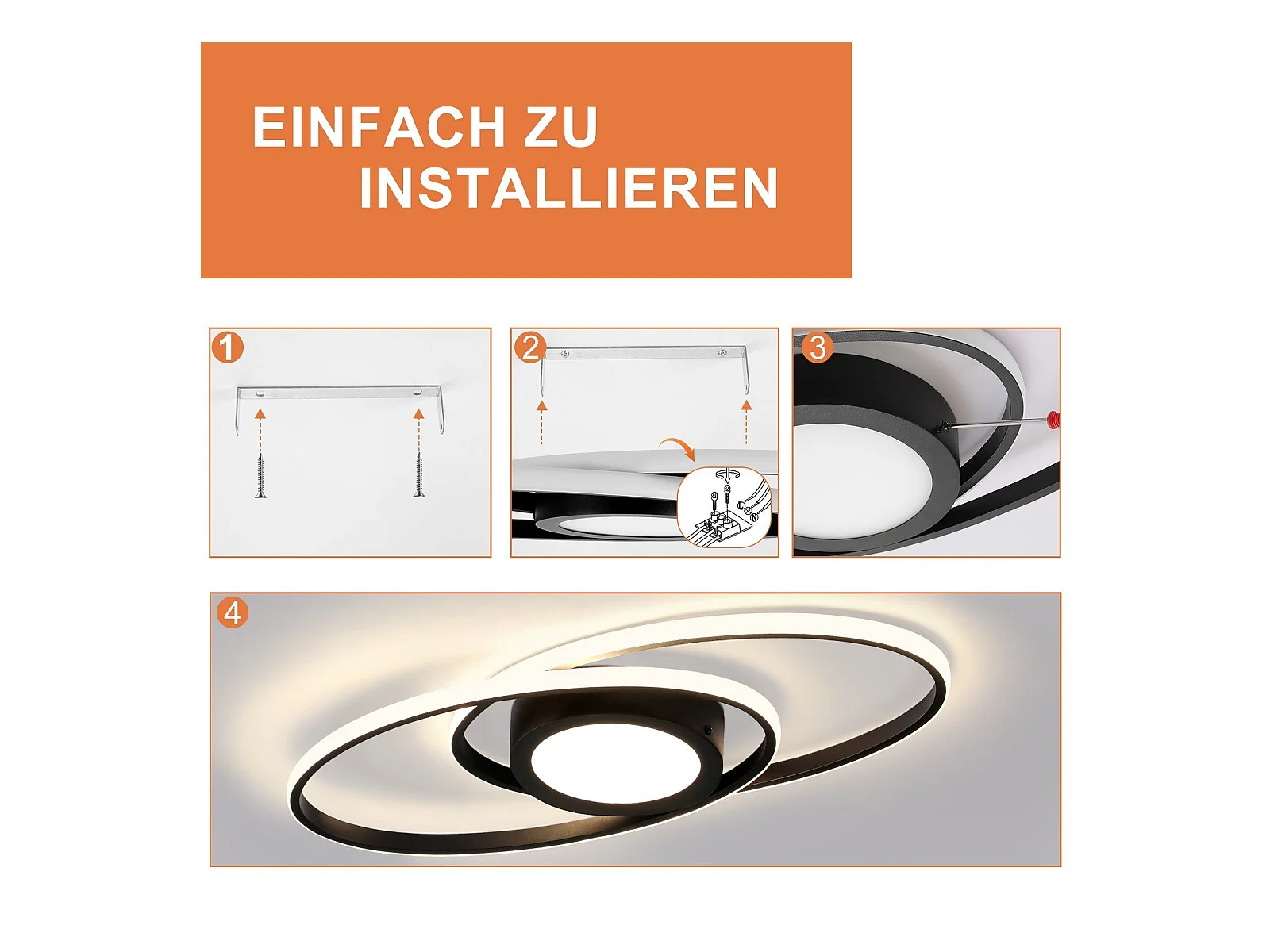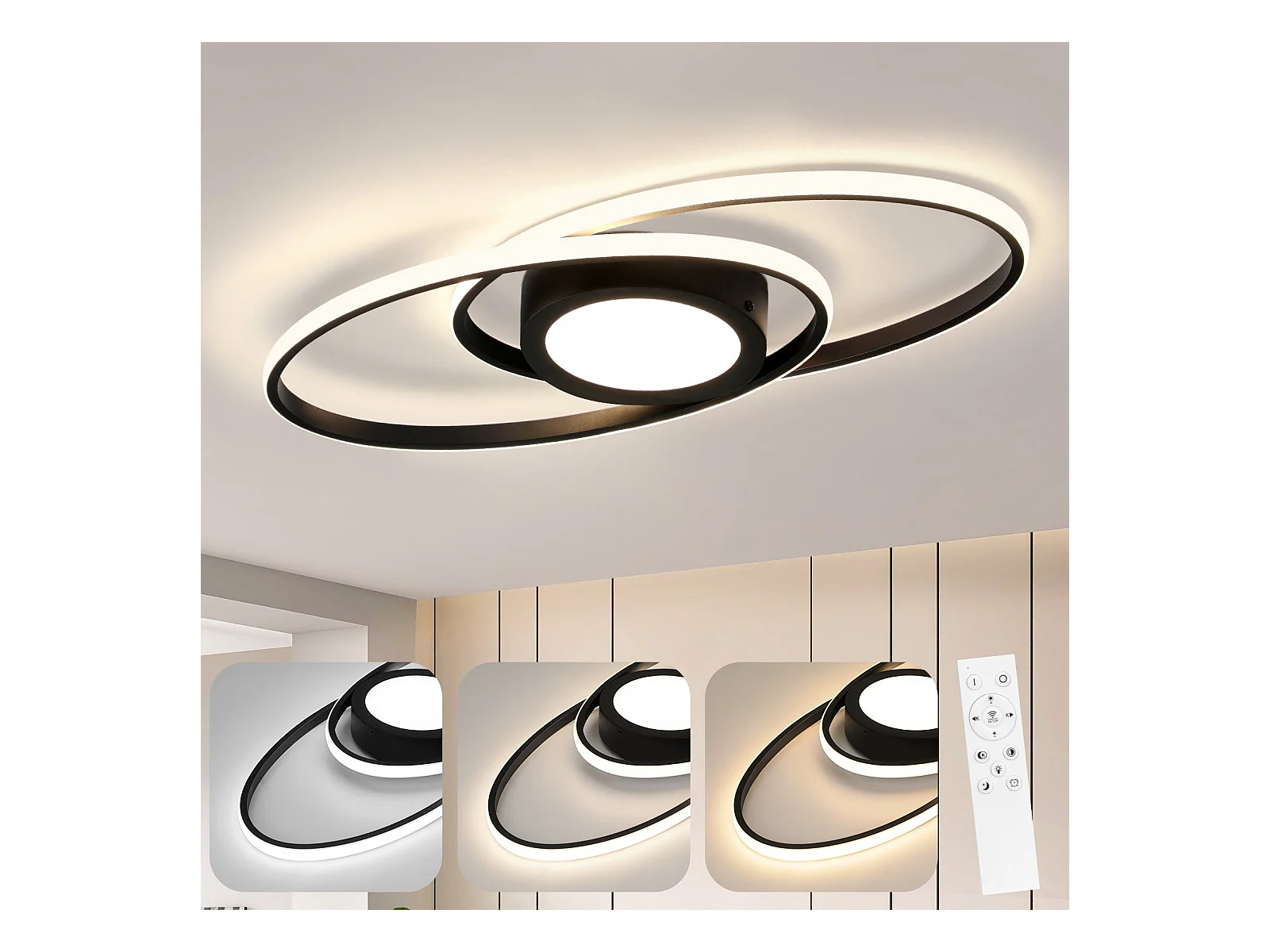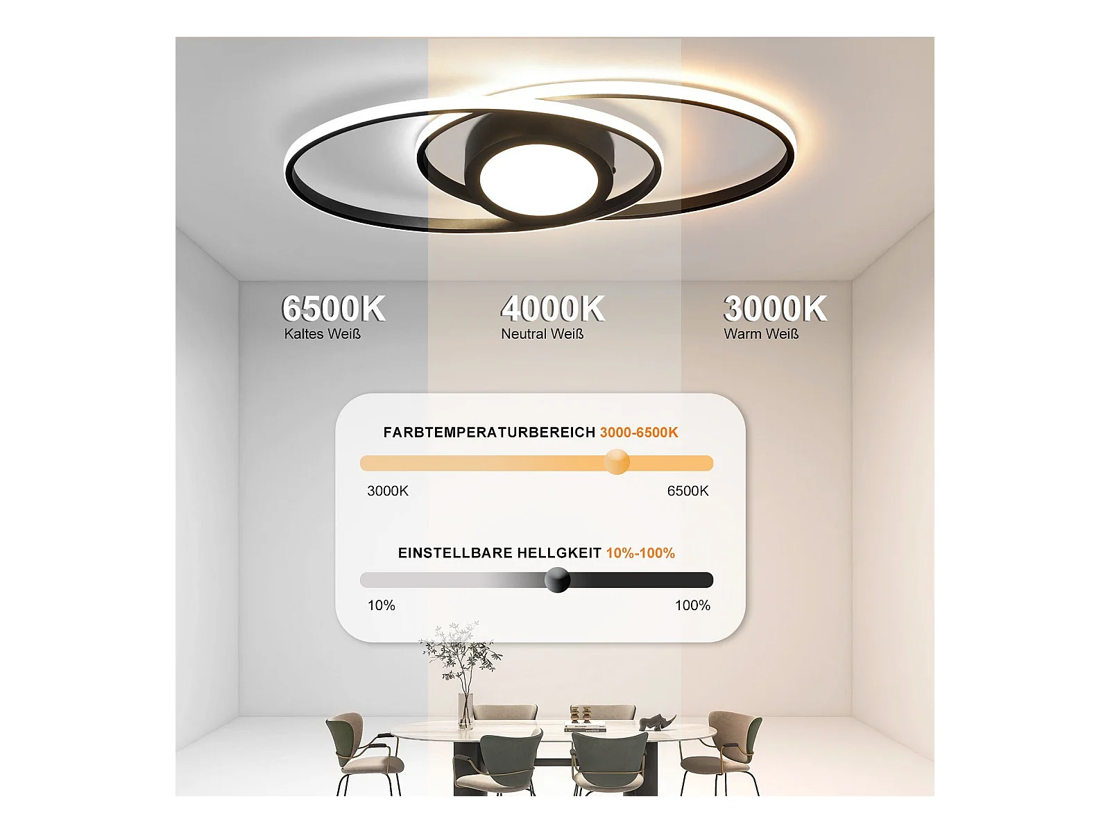 NETTLIFE LED Deckenleuchte Schwarz 3000K-6500K Dimmbar 48W Kinderzimmer Wohnzimmer mit Fernbedienung Modern für Schlafzimmer Küche Balkon
