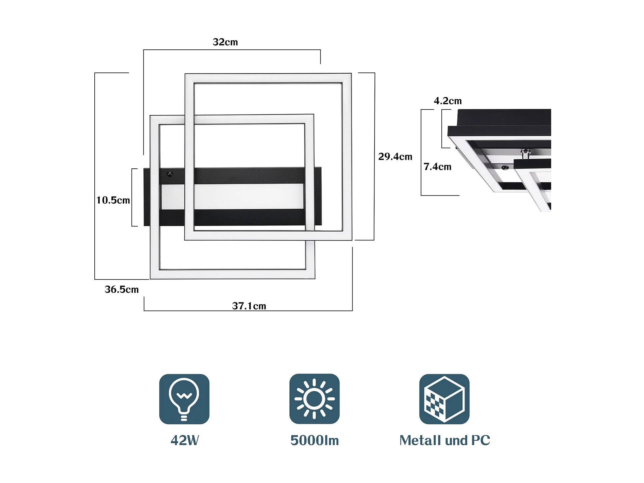 NETTLIFE LED Deckenleuchte Wohnzimmer, 2 Rahmen, Schwarz, Modern, Eckig, Dimmbar, Ideal für Flur
