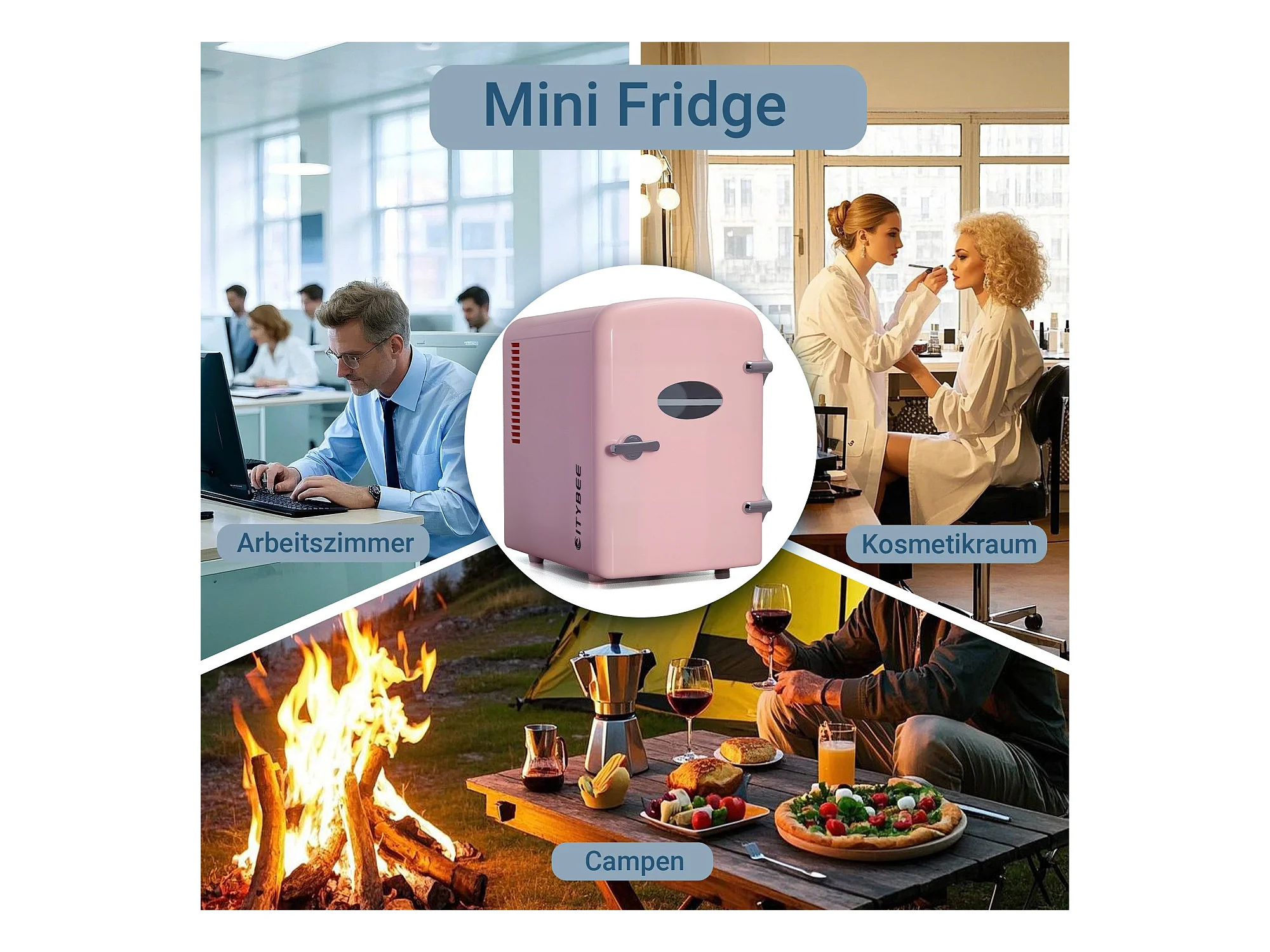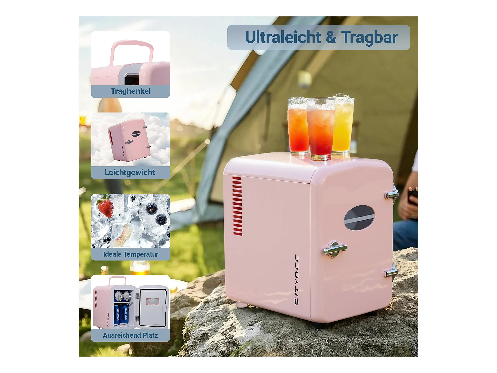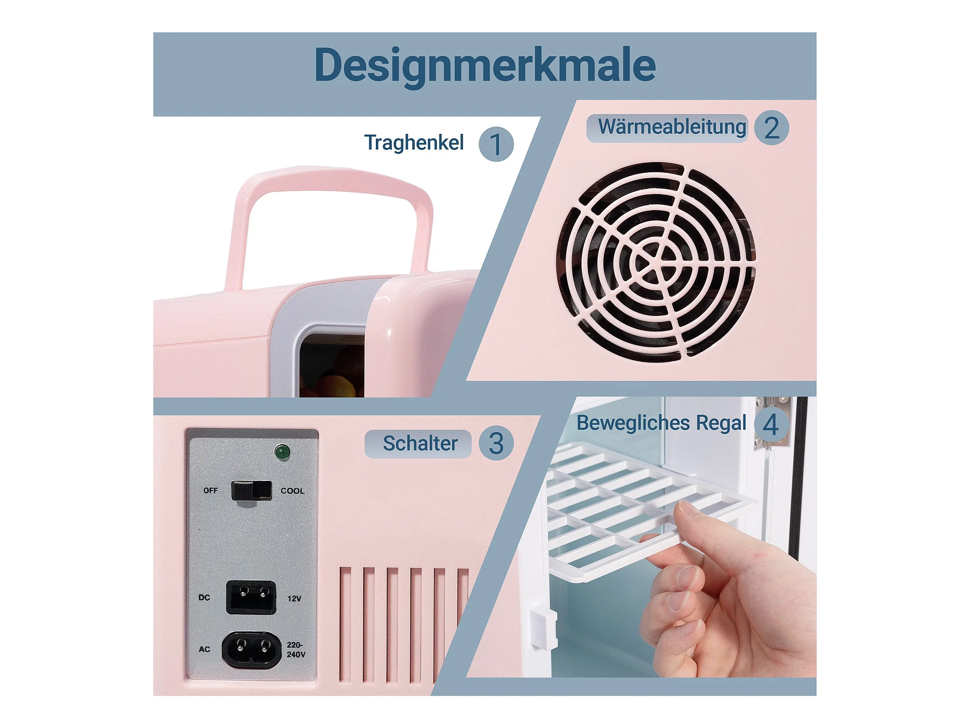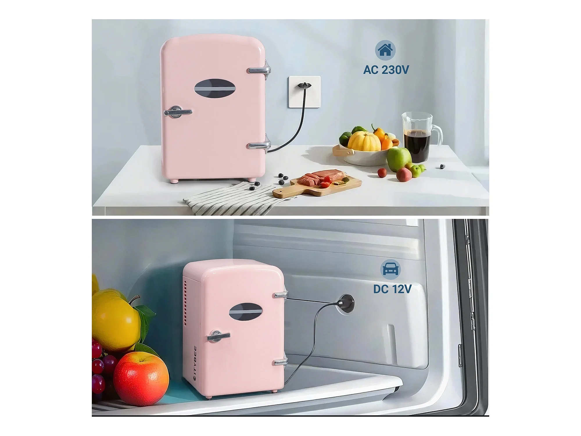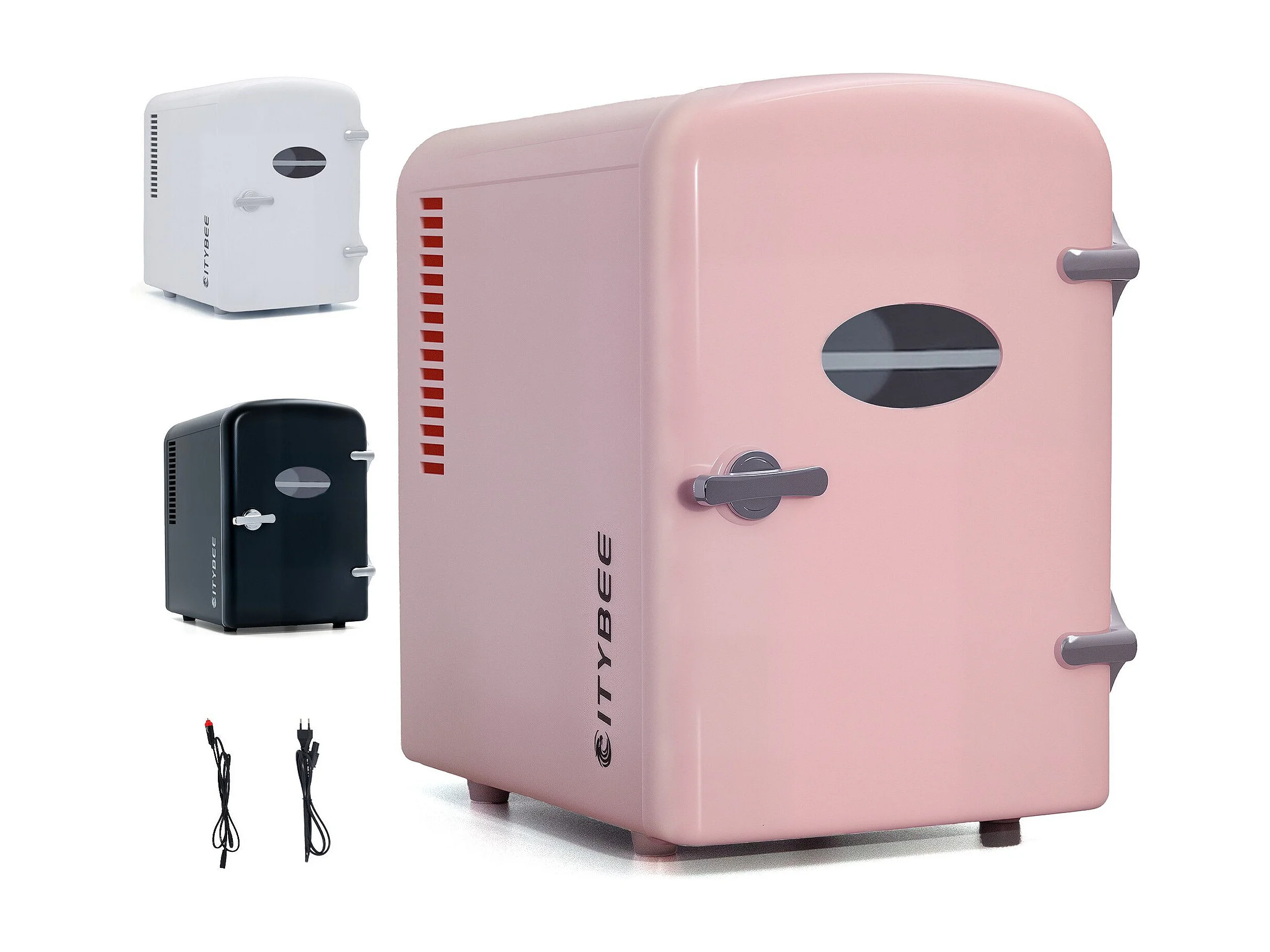 NETTLIFE Mini-Kühlschrank, 4 l, kleiner Kühlschrank, 12 V, 230 V, ideal für Auto, Schlafzimmer, Camping, Büro und Reisen (Pink)