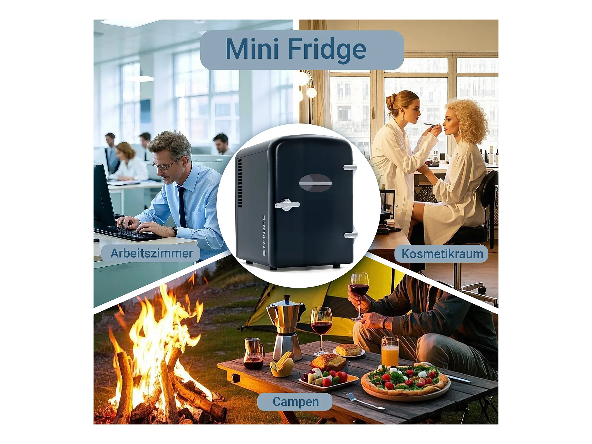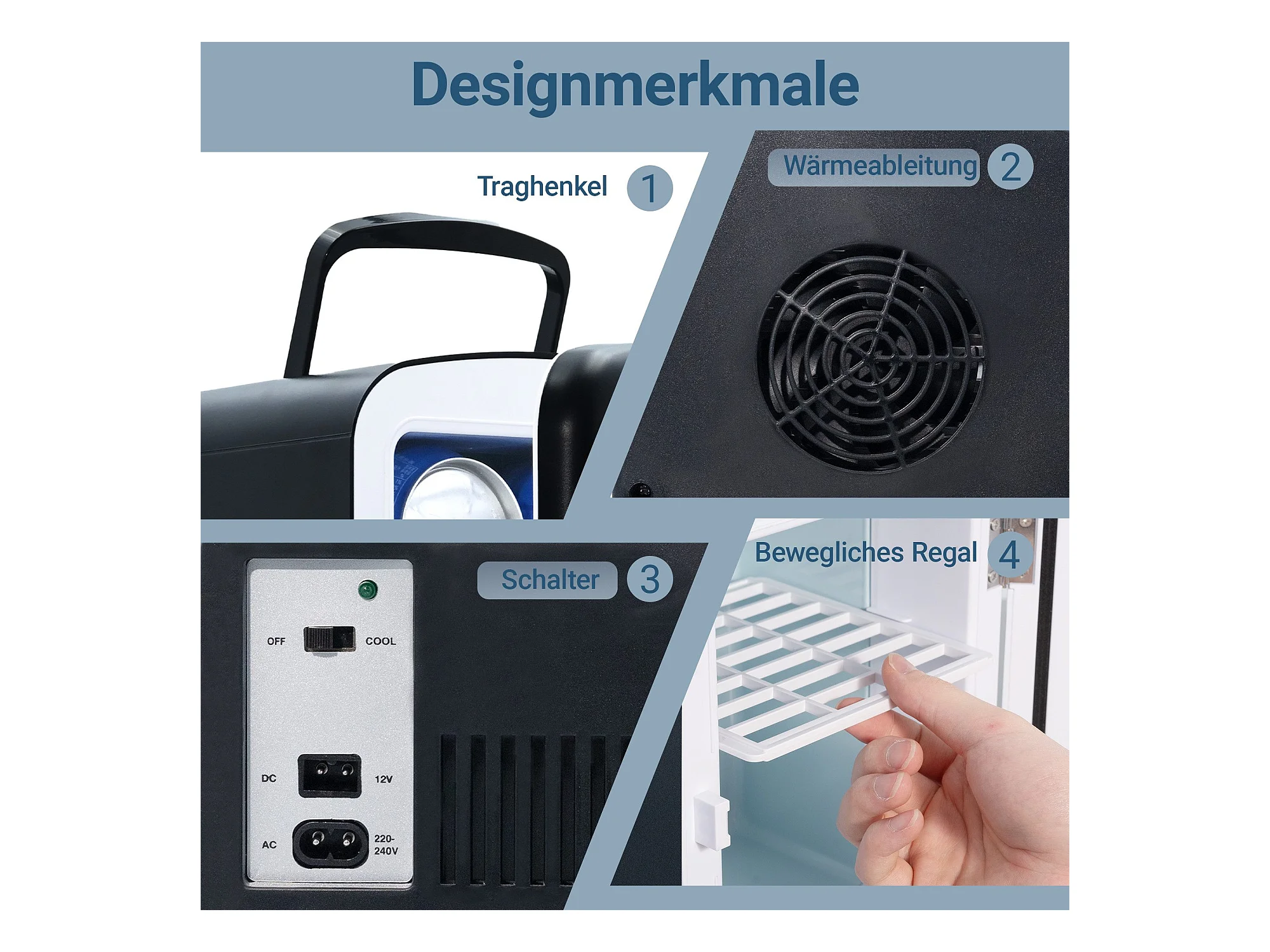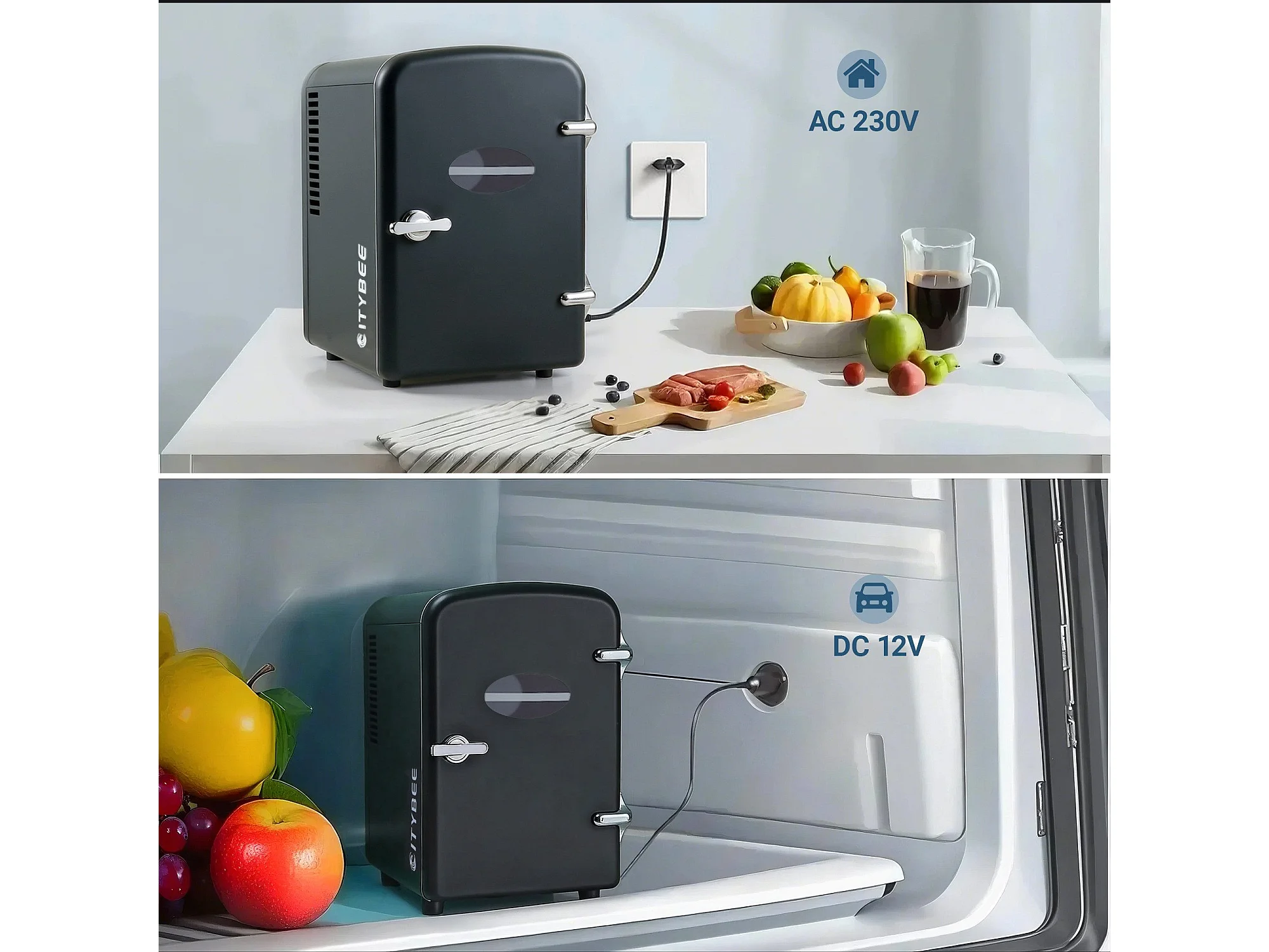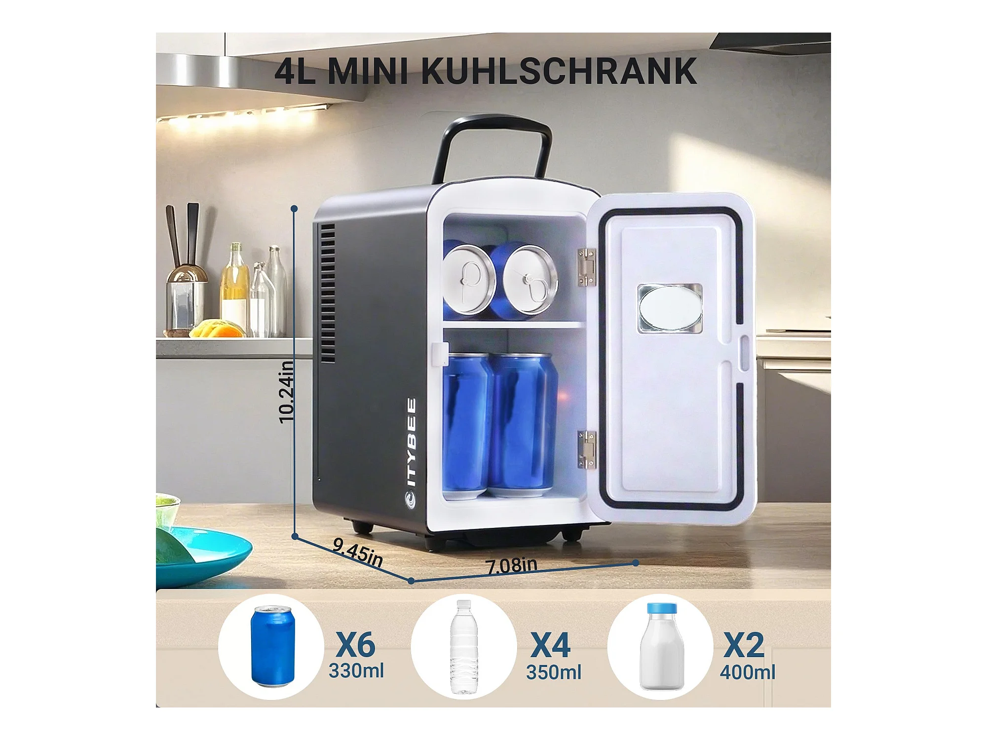 NETTLIFE Mini-Kühlschrank, 4 l, kleiner Kühlschrank, 12 V, 230 V, ideal für Auto, Schlafzimmer, Camping, Büro und Reisen (schwarz)
