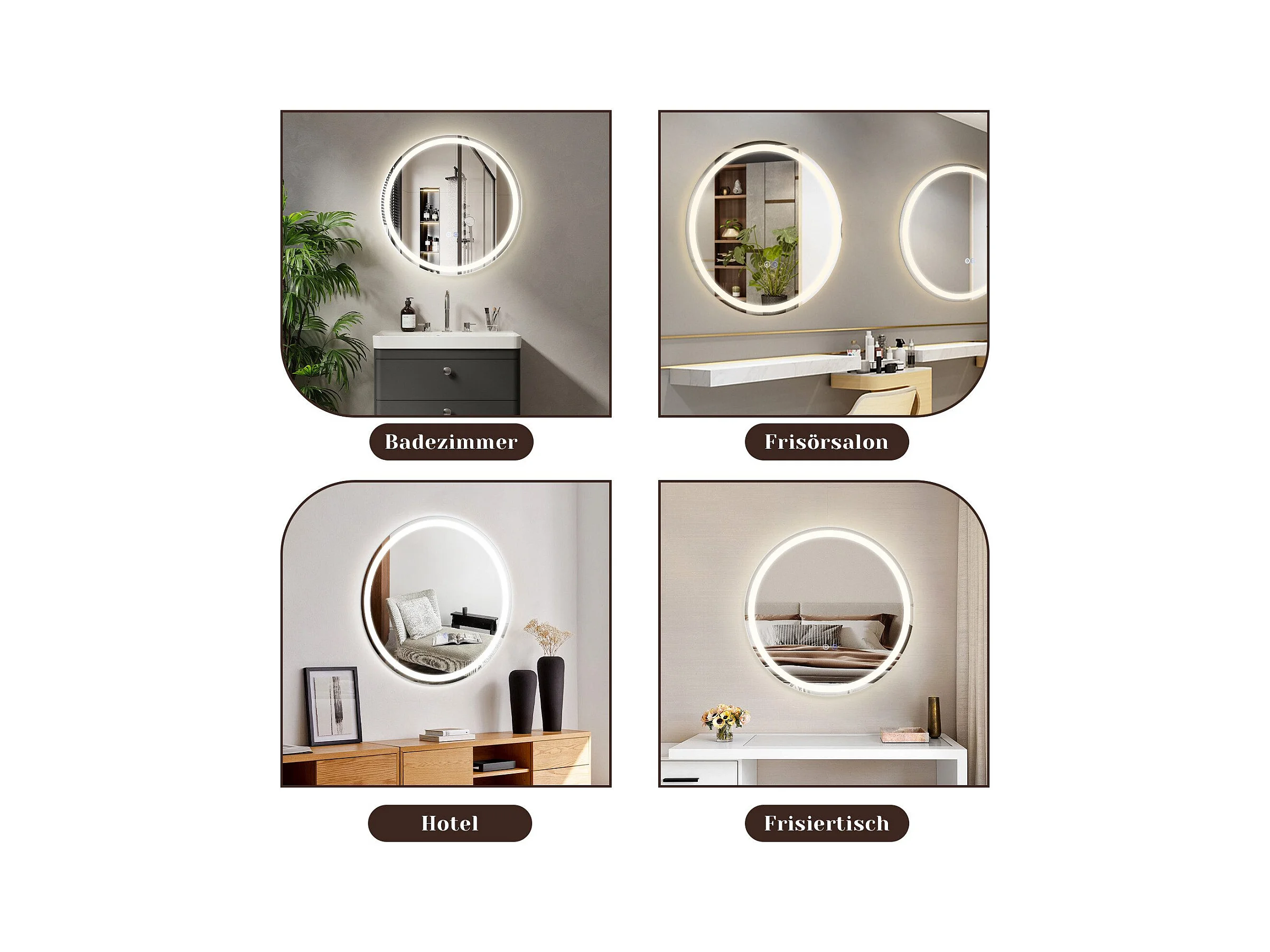 NETTLIFE Miroir lumineux salle de bain - Rund 50 cm LED, Wandgemälde, taktile Unterbrechung, antibuée, IP44, einstellbar 3000K-6500K