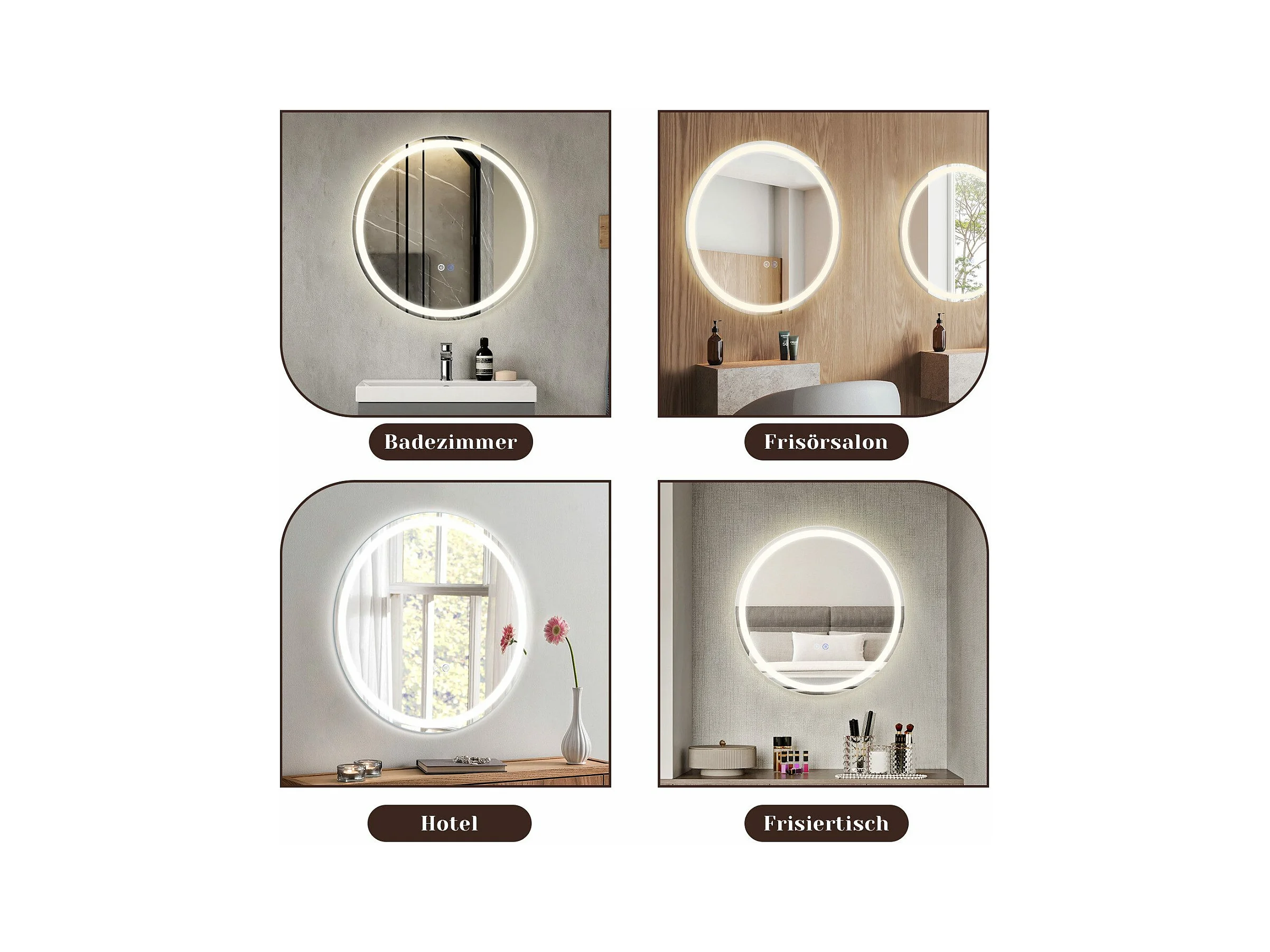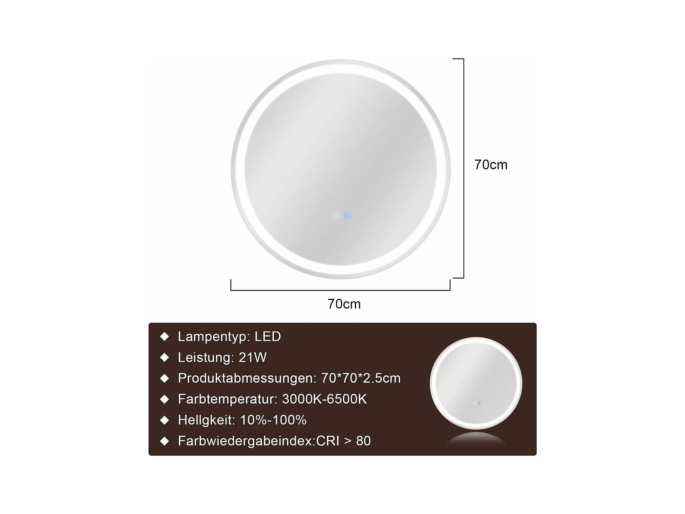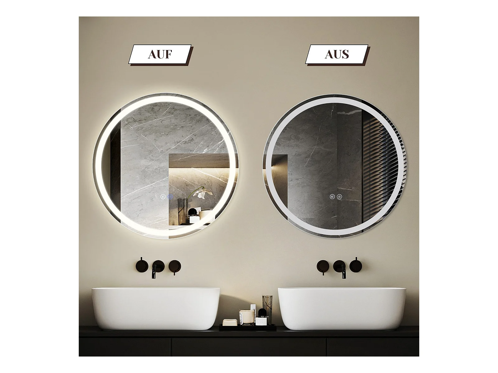 NETTLIFE Miroir lumineux salle de bain - Rund 70 cm LED, Wandgemälde, taktile Unterbrechung, antibuée, IP44, einstellbar 3000K-6500K