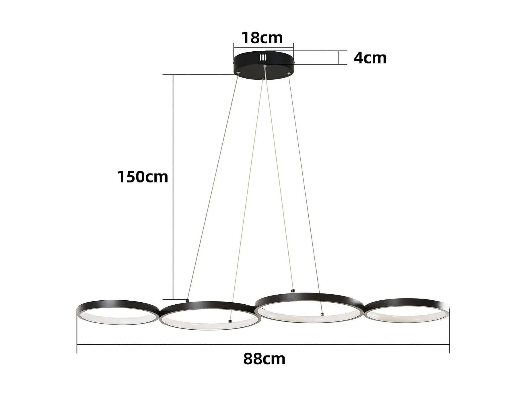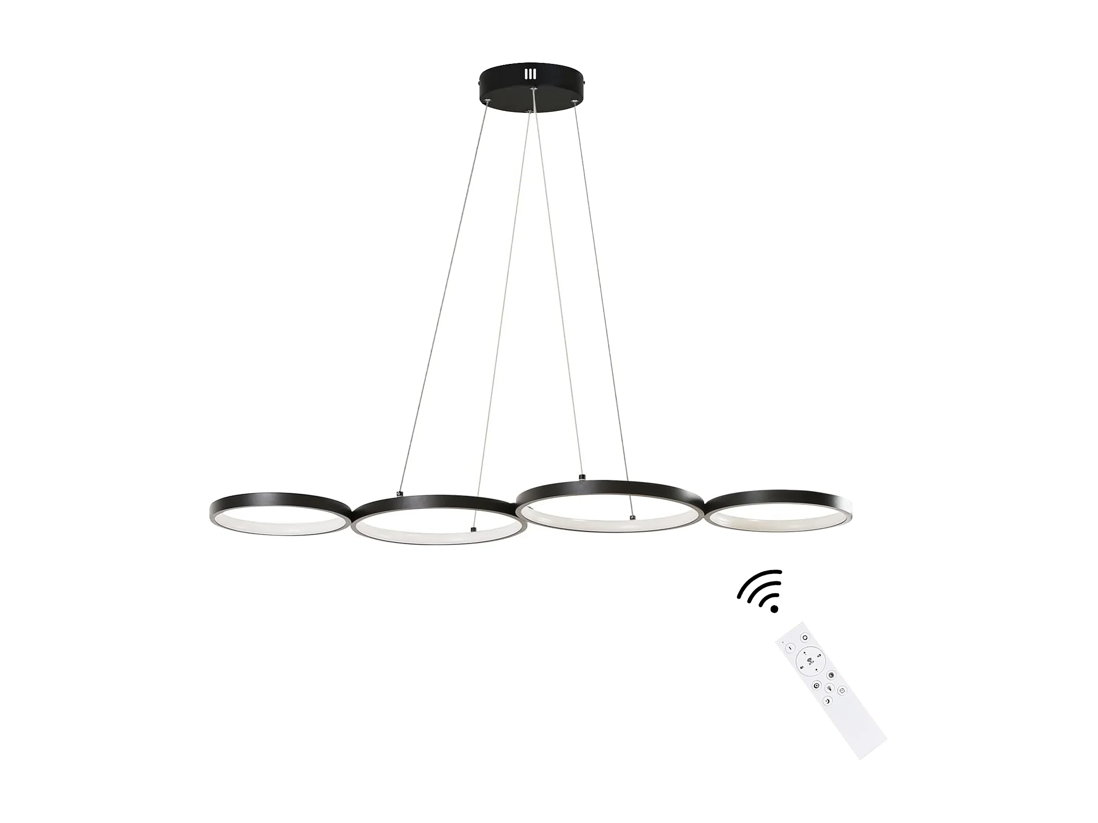 Moderne schwarze 4-Ring-Pendelleuchte, 88 cm, Design mit Fernbedienung