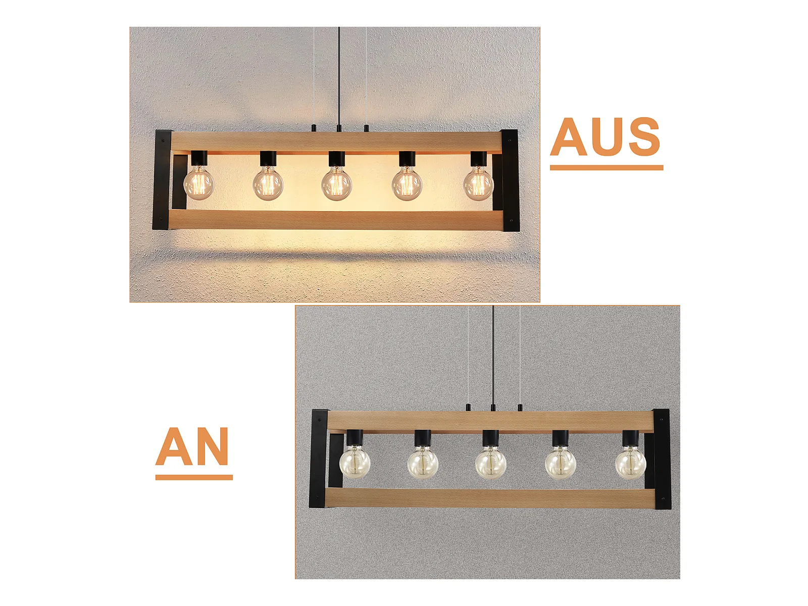NETTLIFE Pendelleuchte Vintage Esszimmerlampe Schwarz Holz E27 5 flammig Industrial Esstisch