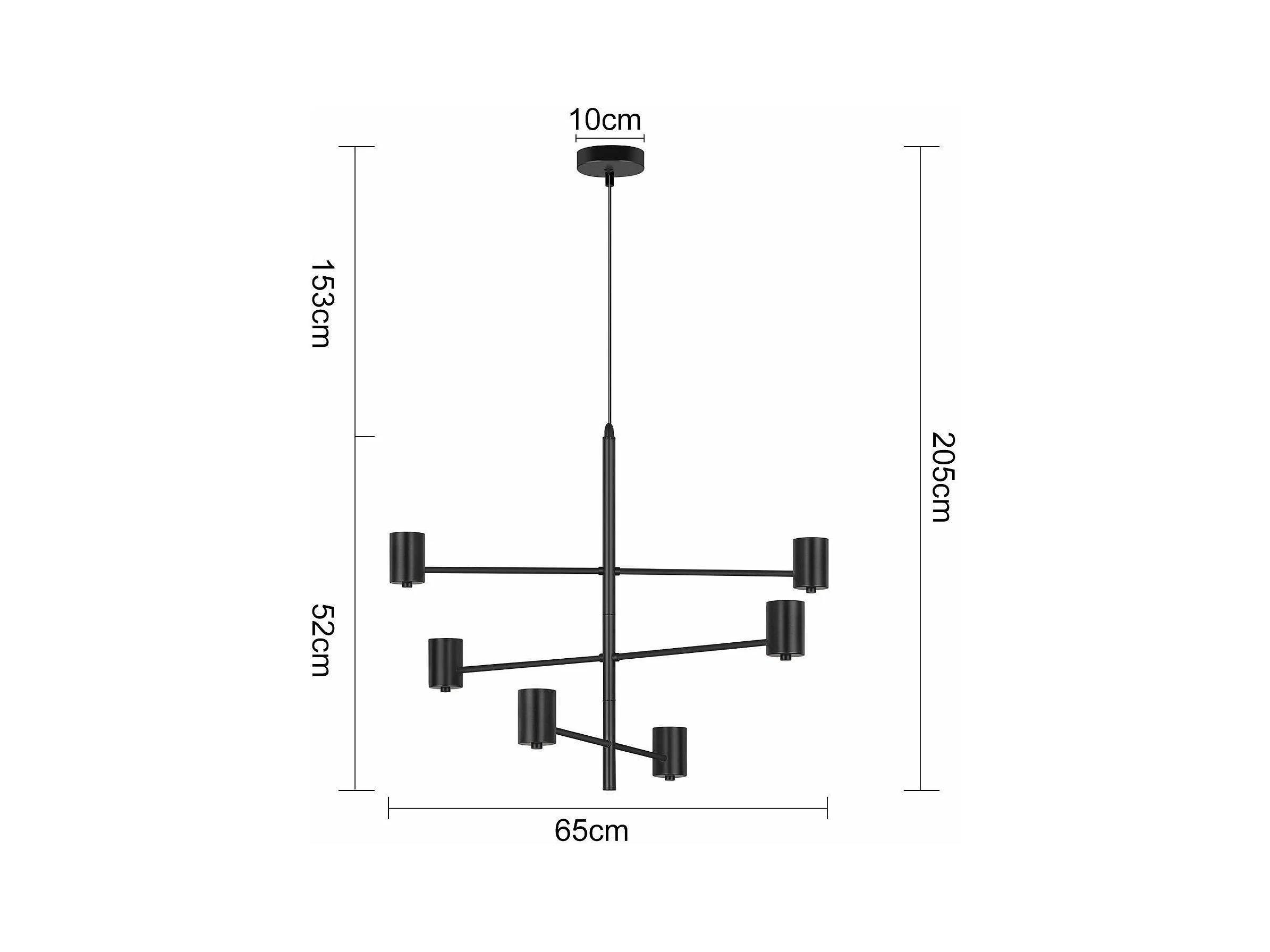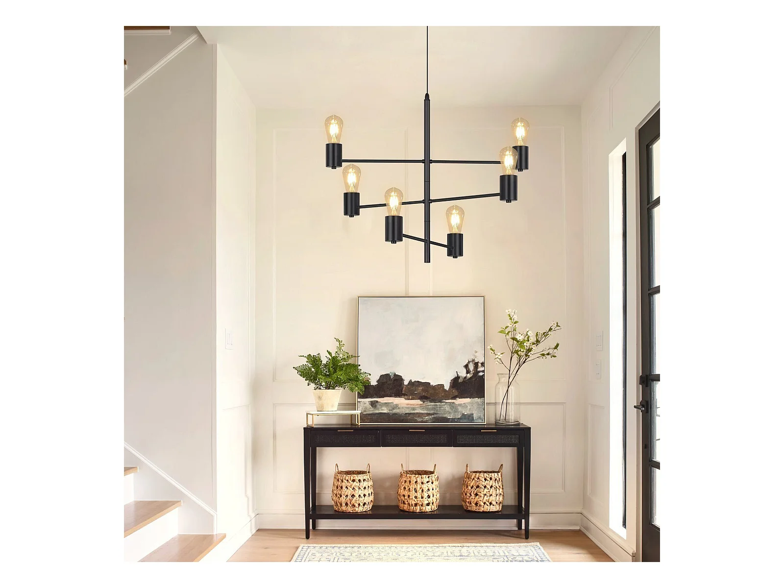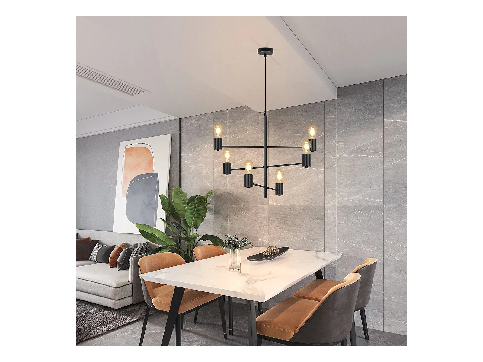 NETTLIFE Pendelleuchte, 6-flammig, E27, Schwarz, Durchmesser 65 cm, Vintage, Metall, verstellbar, Industrie-Kronleuchter, Wohnzimmer für Esszimmer, Schlafzimmer