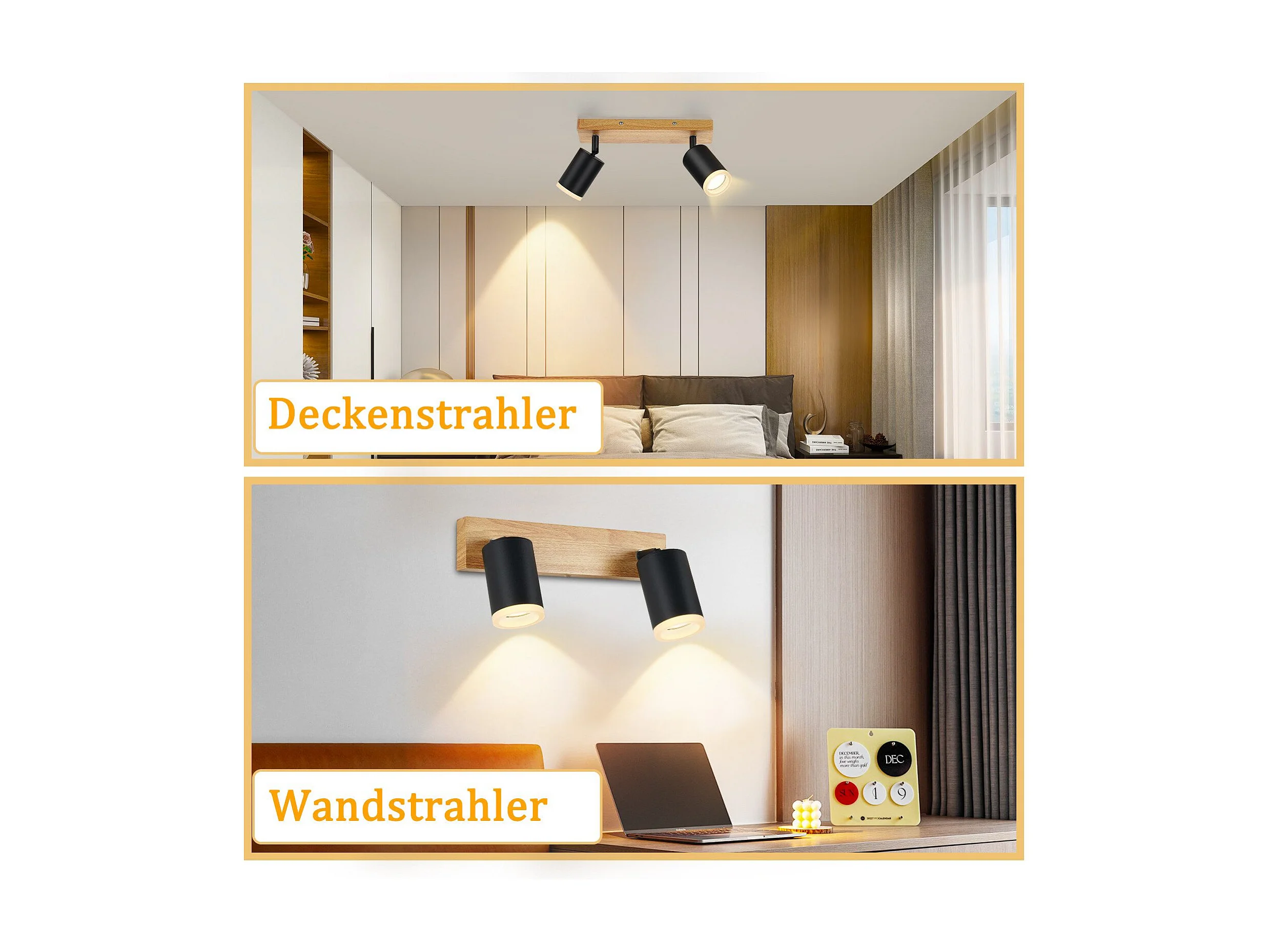 NETTLIFE Schwarzer Deckenstrahler GU10 Holz Wandstrahler Drehbar Ohne Leuchtmittel 350° Drehbar