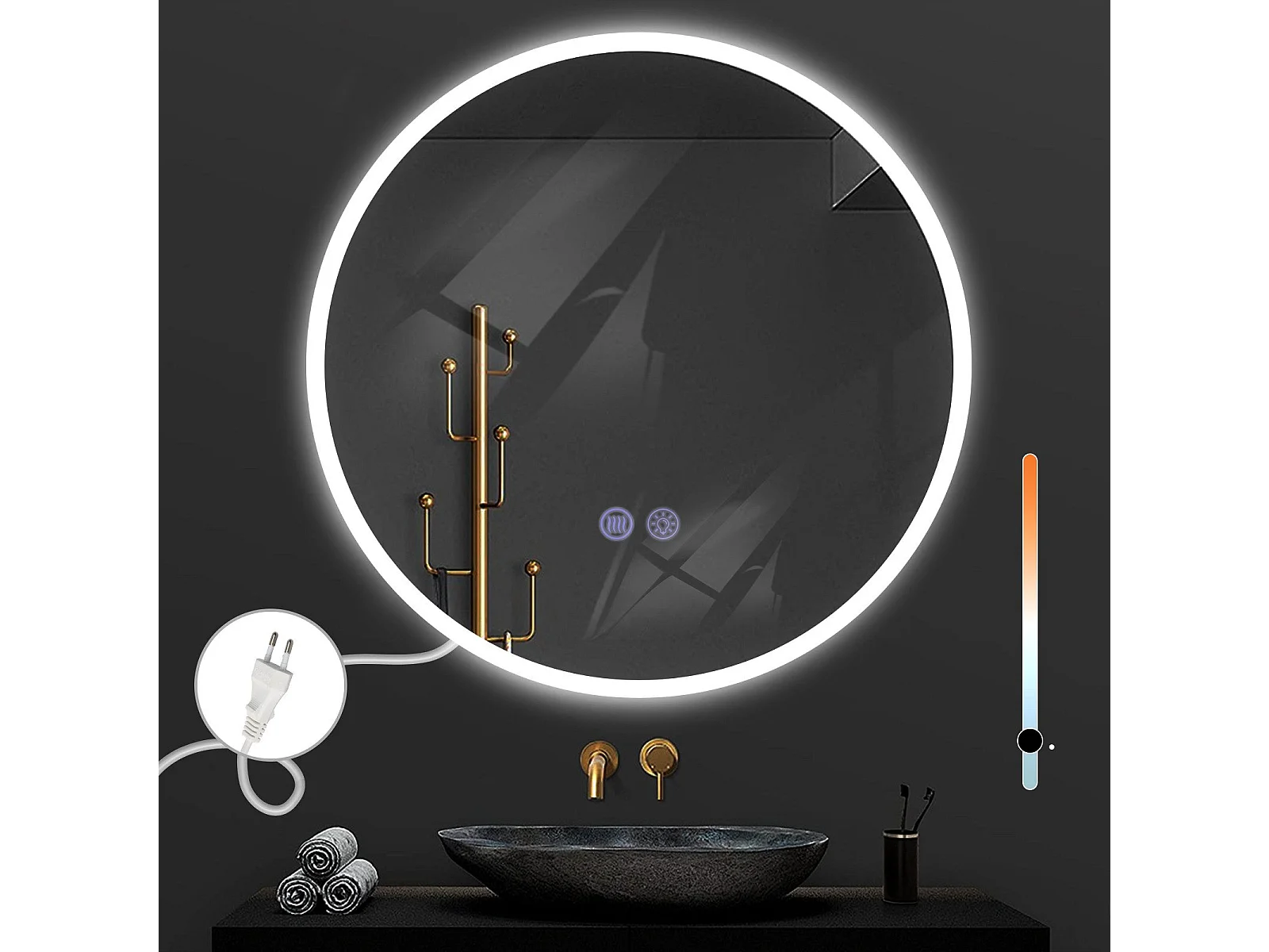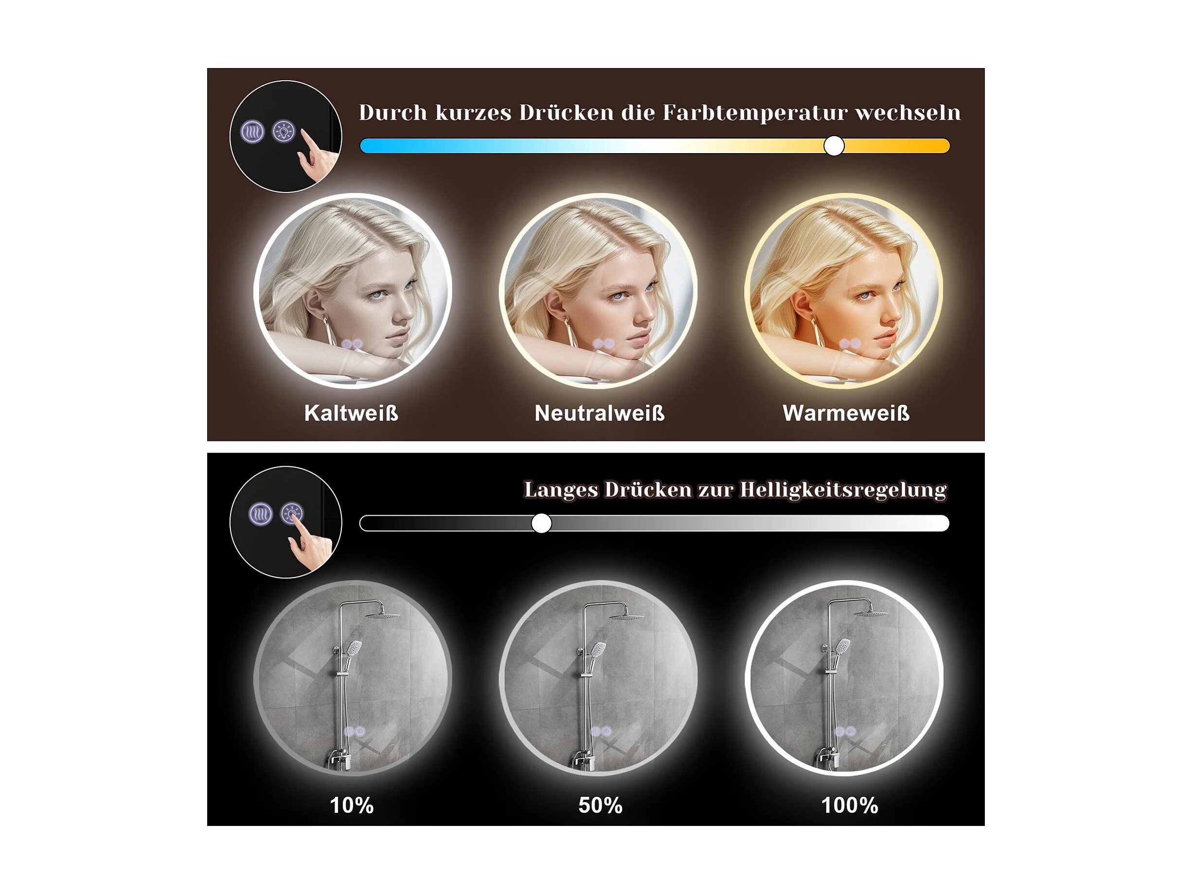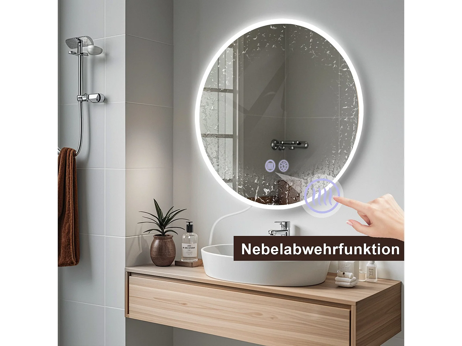 NETTLIFE Spiegel mit Beleuchtung LED-Wandspiegel IP44 80cm mit Touch-Spiegelfunktion und dimmbarer Beleuchtung