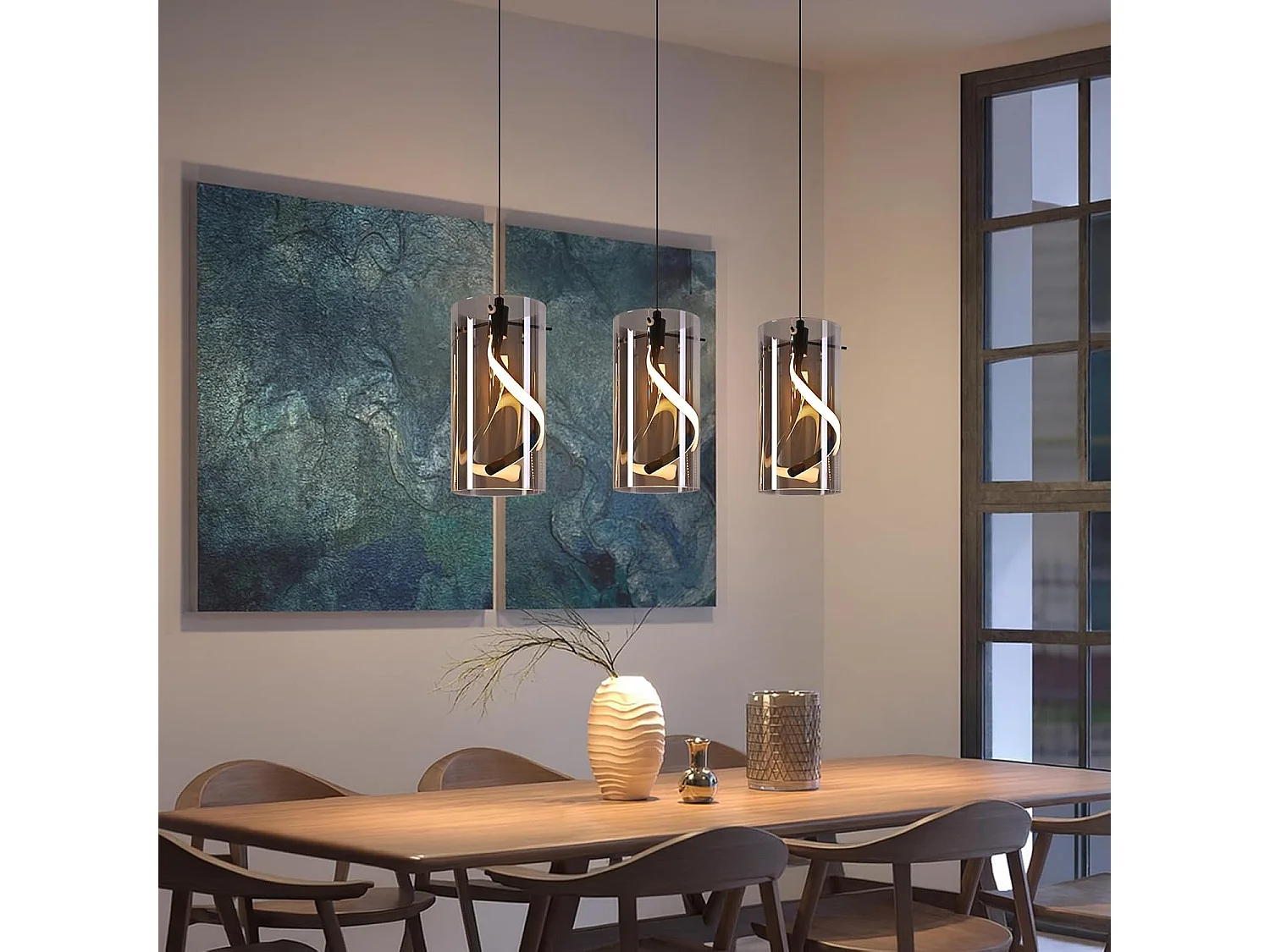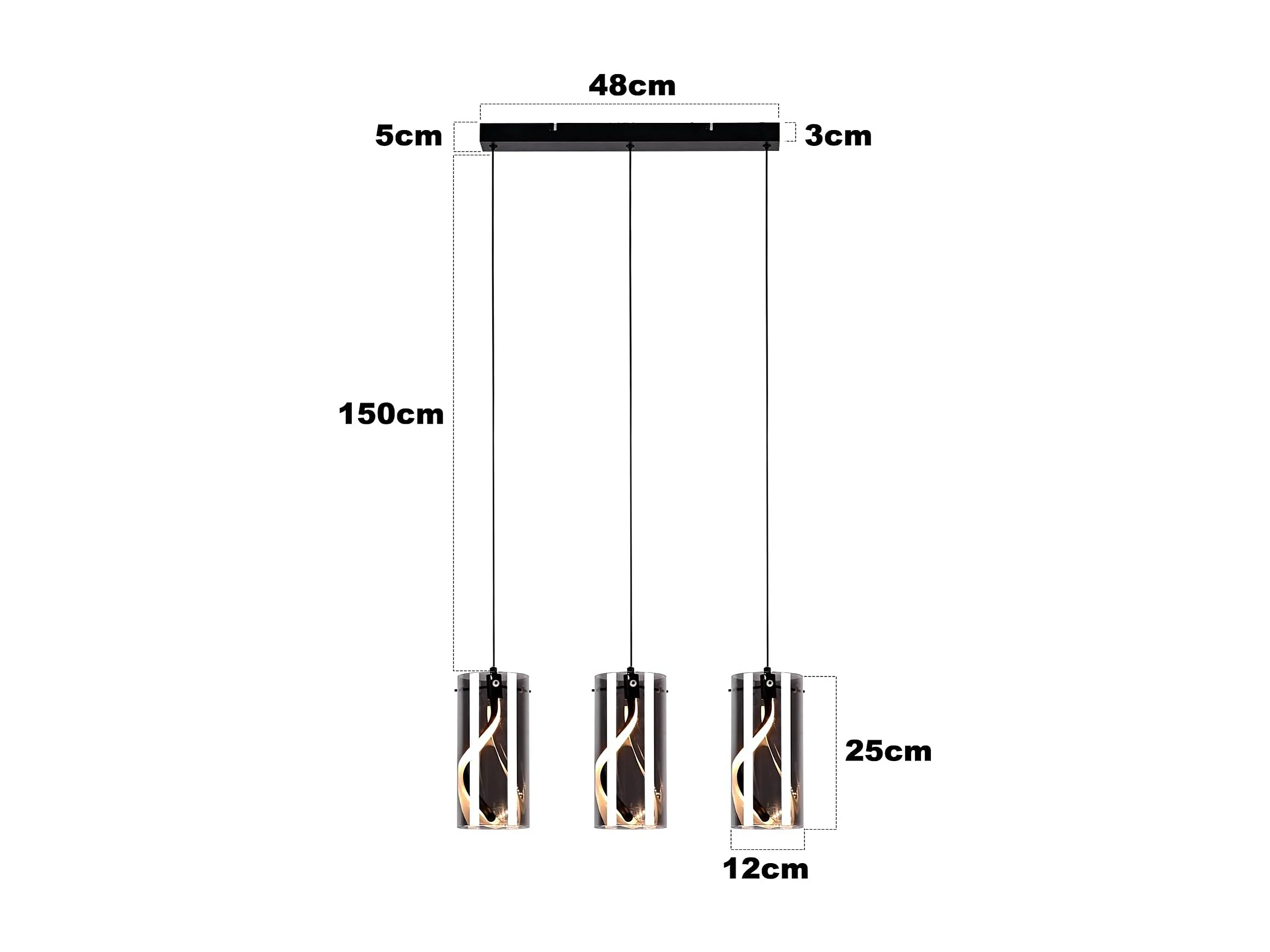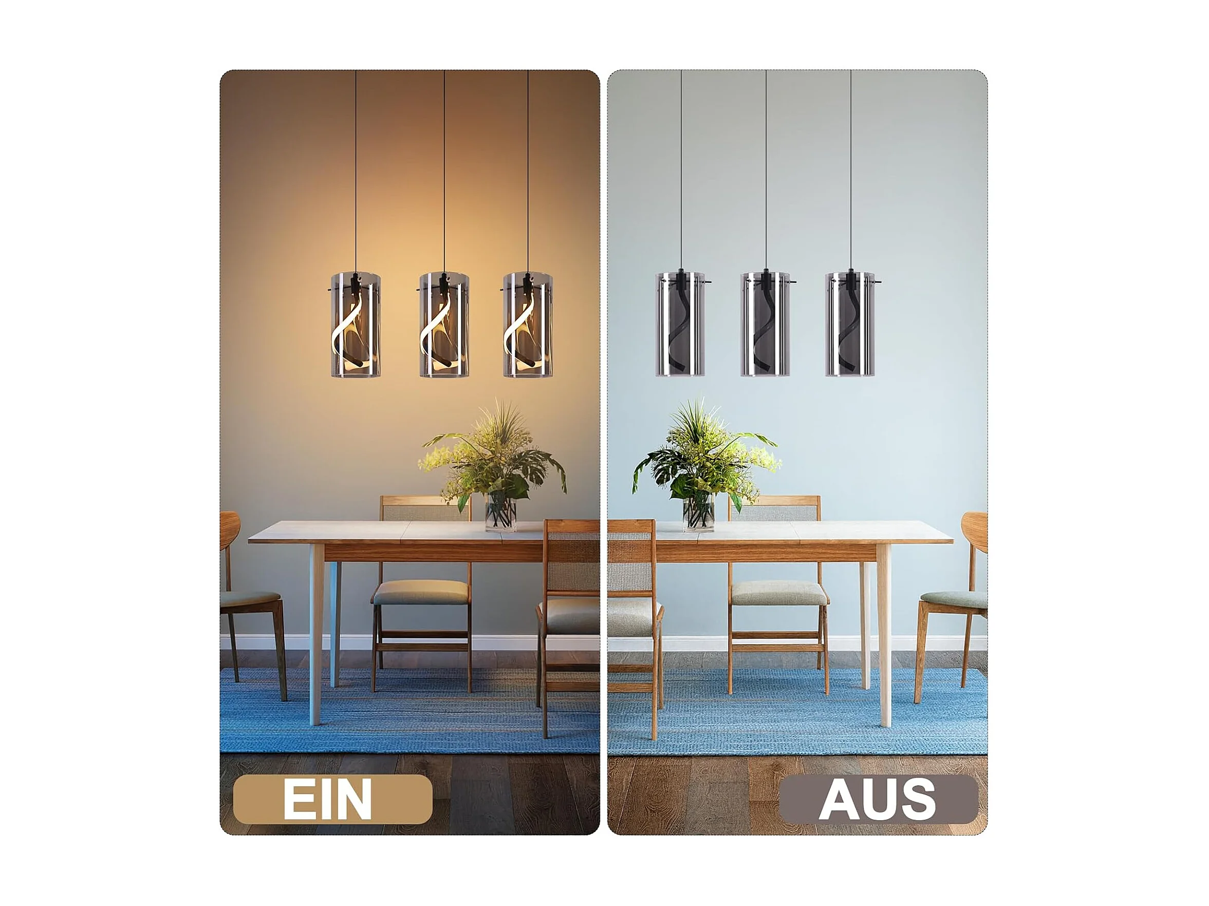 Nettlife Vintage 3-flammige LED-Pendelleuchte – Rauchgraues Glas, 23 W, 3000 K, Retro, verstellbar, Tischleuchte