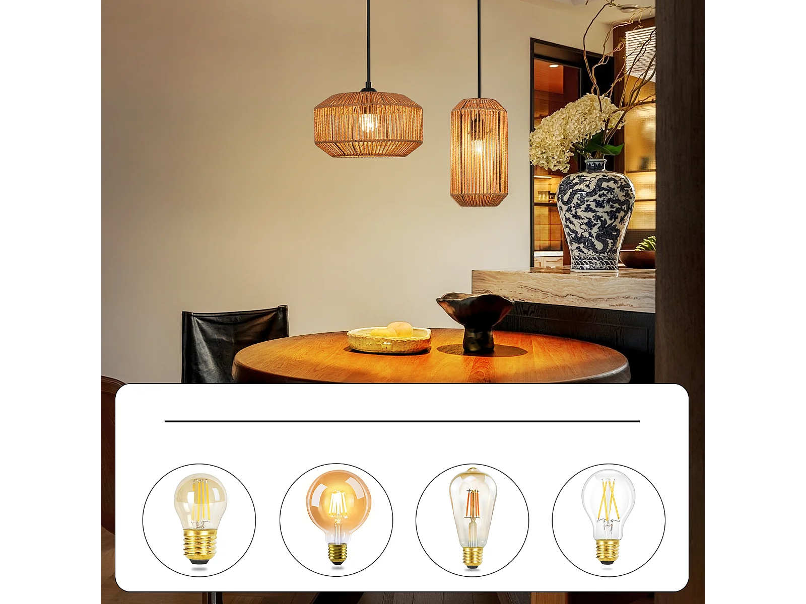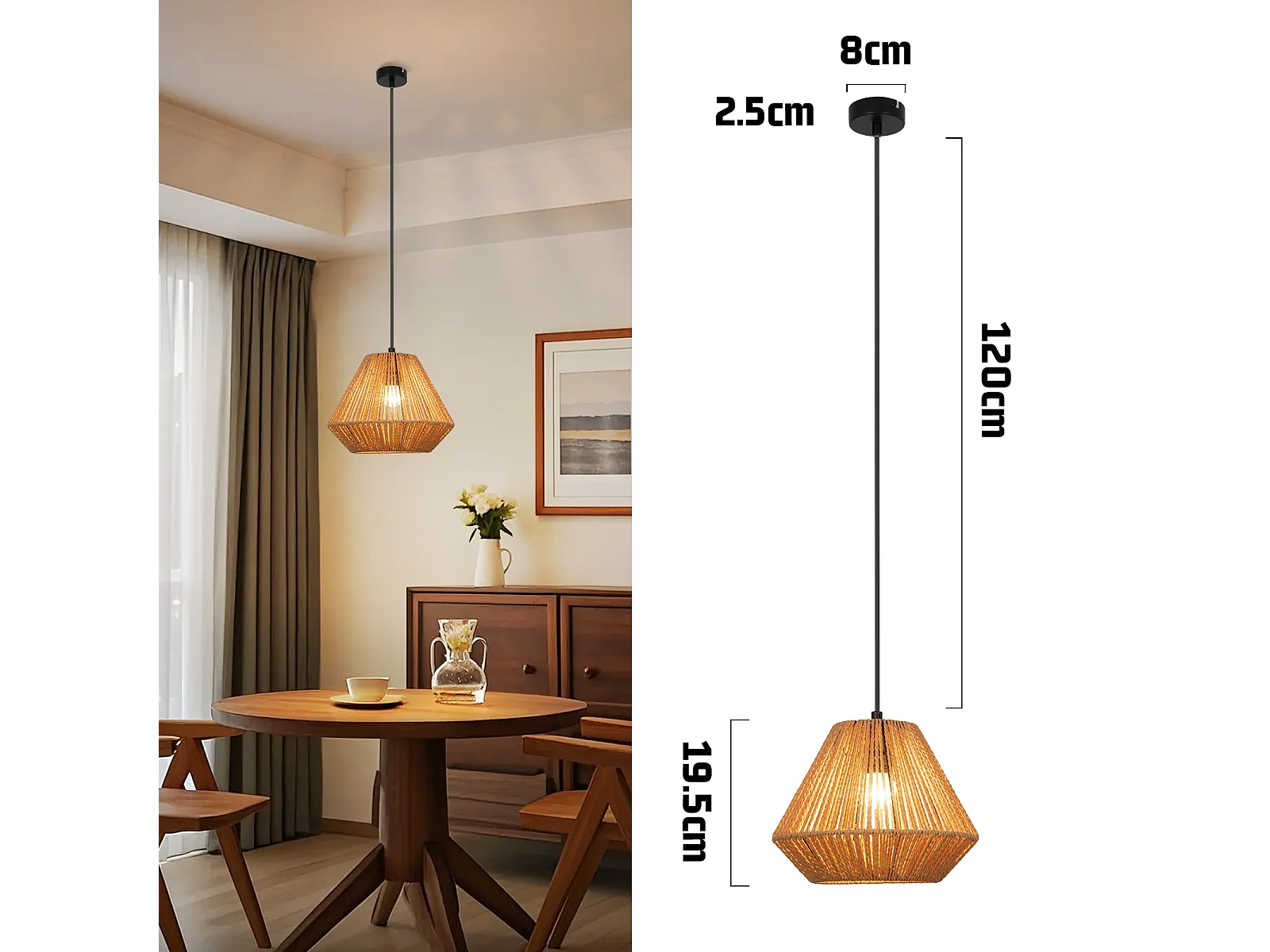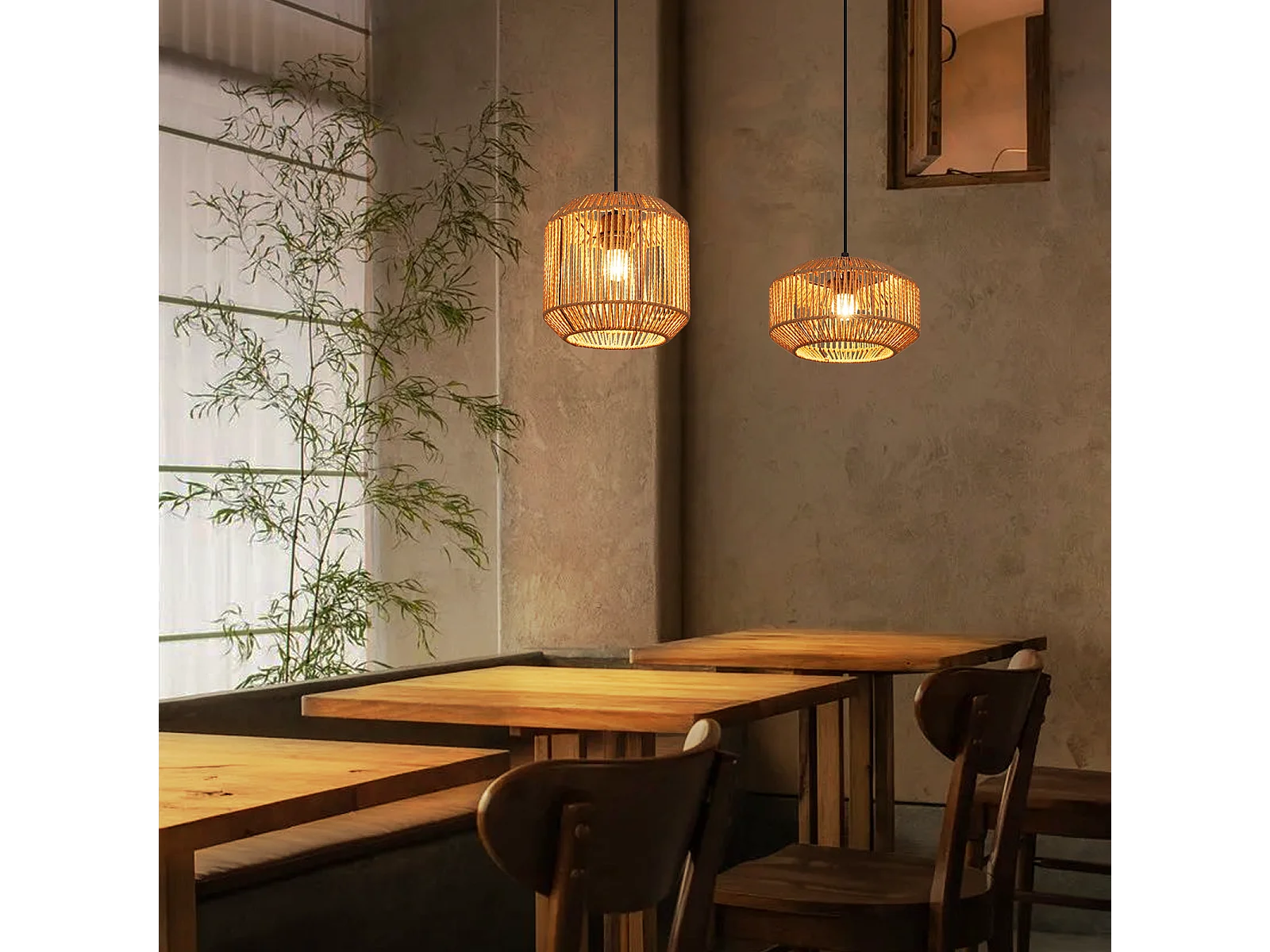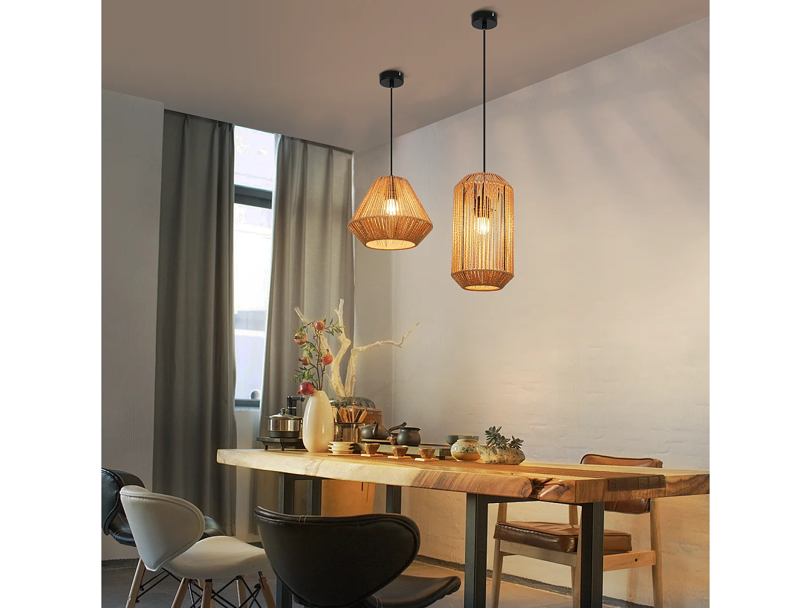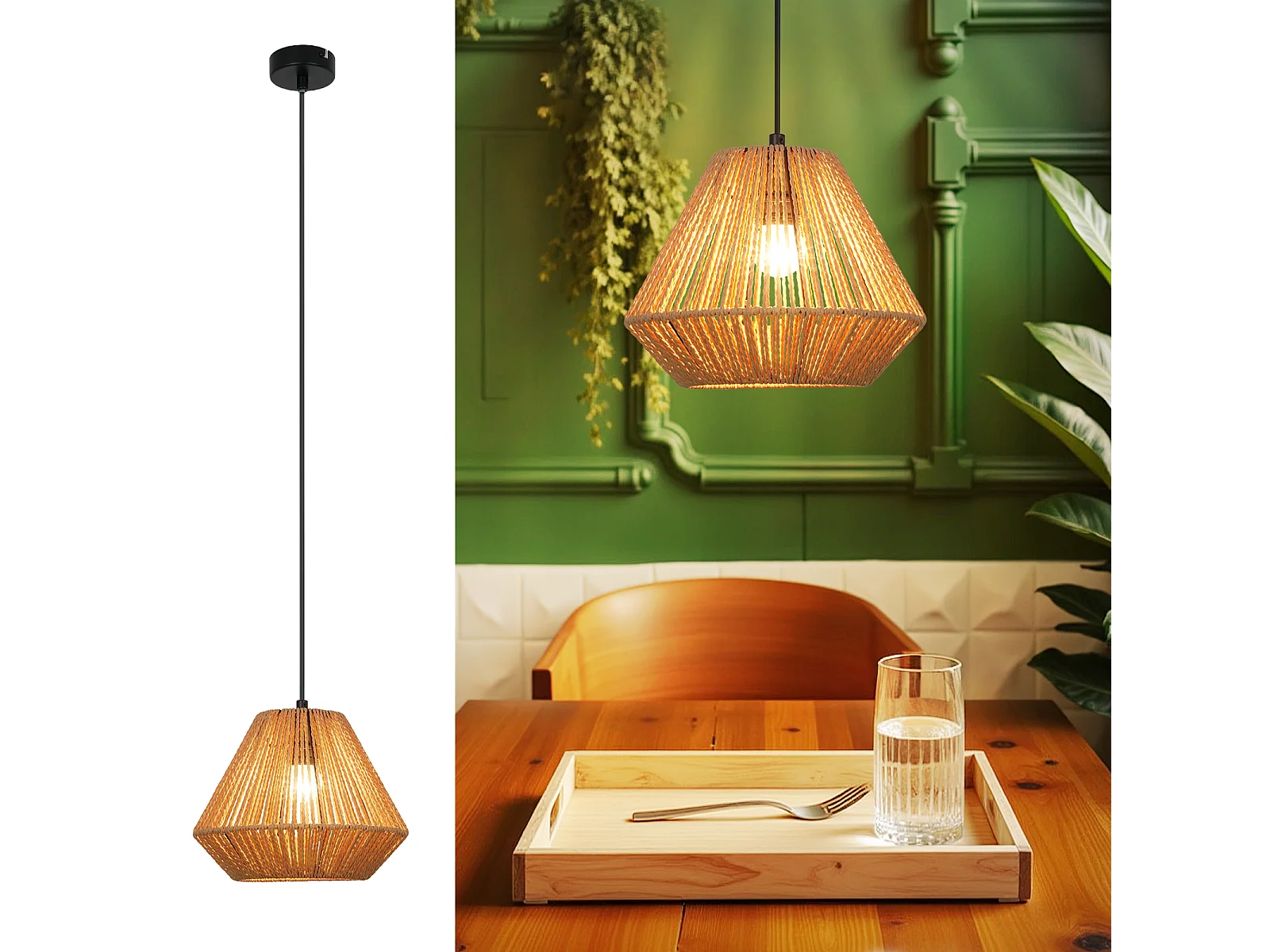 NETTLIFE Vintage Esstisch Pendelleuchte 1 flammig Hanfseil Laterne Design E27 Esszimmerlampe