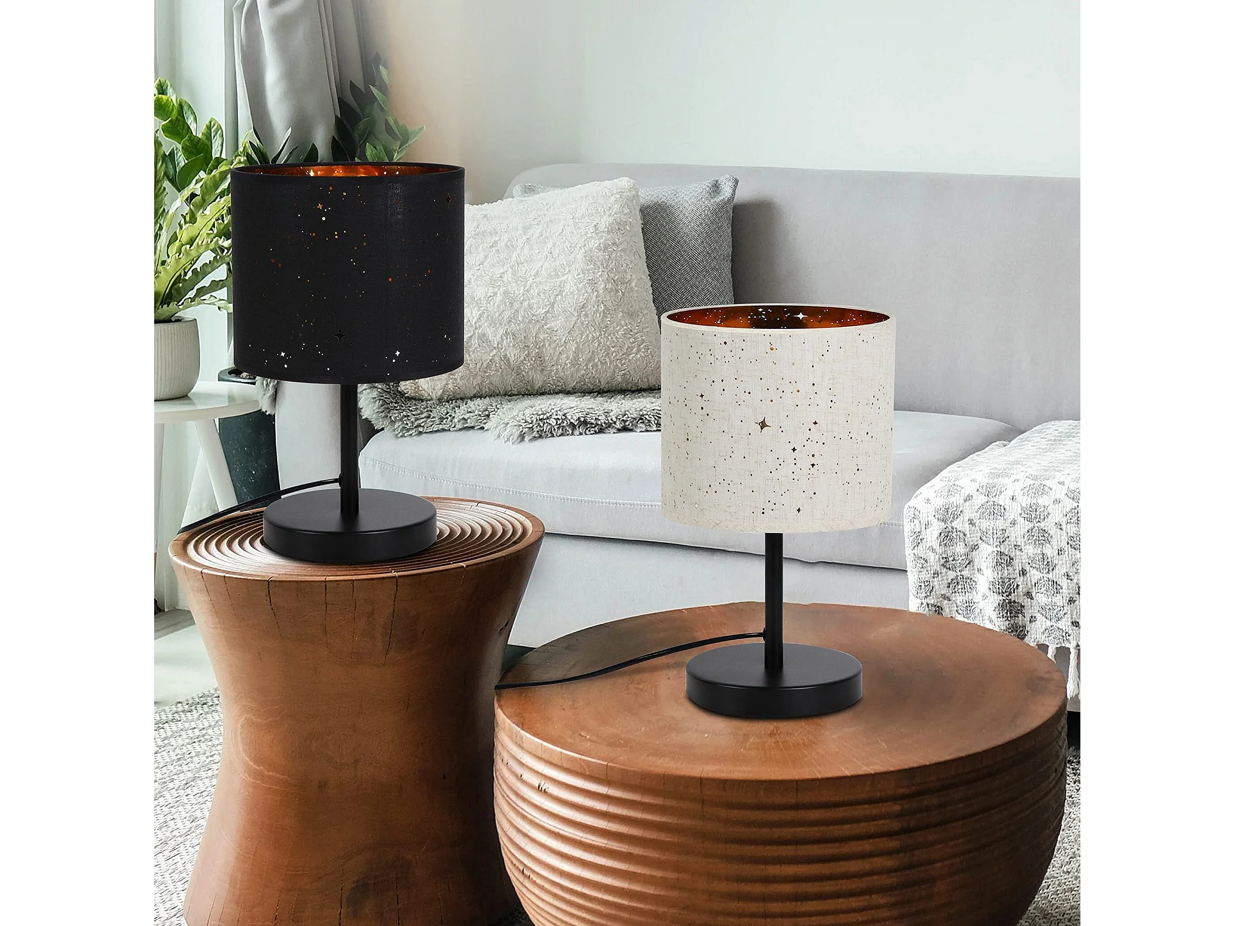 NETTLIFE Vintage Nachttischlampe E27 Sternenhimmel Stoff Lampenschirm Weihnachtsgeschenke mit Kippschalter