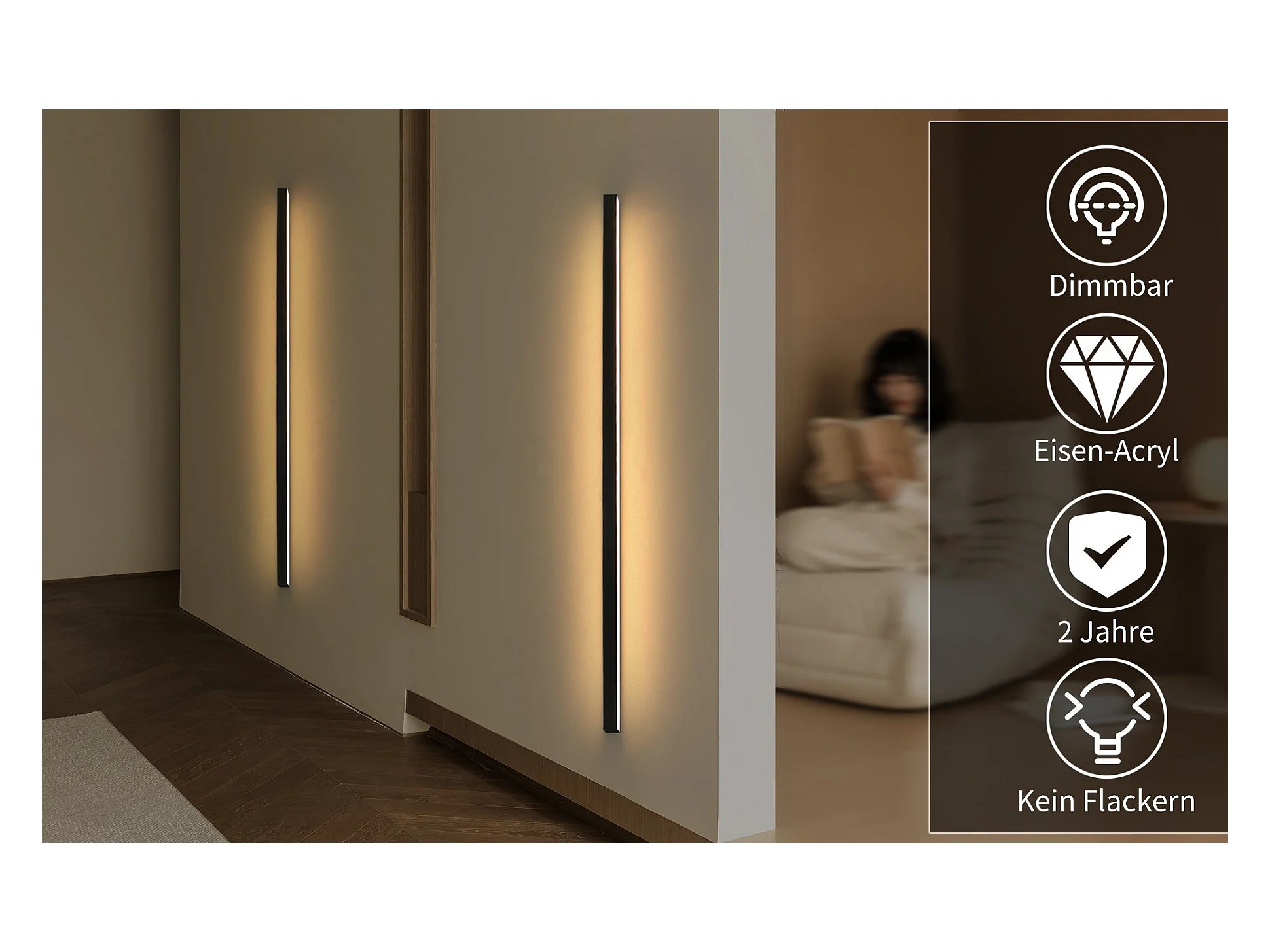 NETTLIFE Innen LED-Wandlampe, schwarz, dimmbar, 100 cm, modern, 15 W, Flurleuchte, Wandbeleuchtung