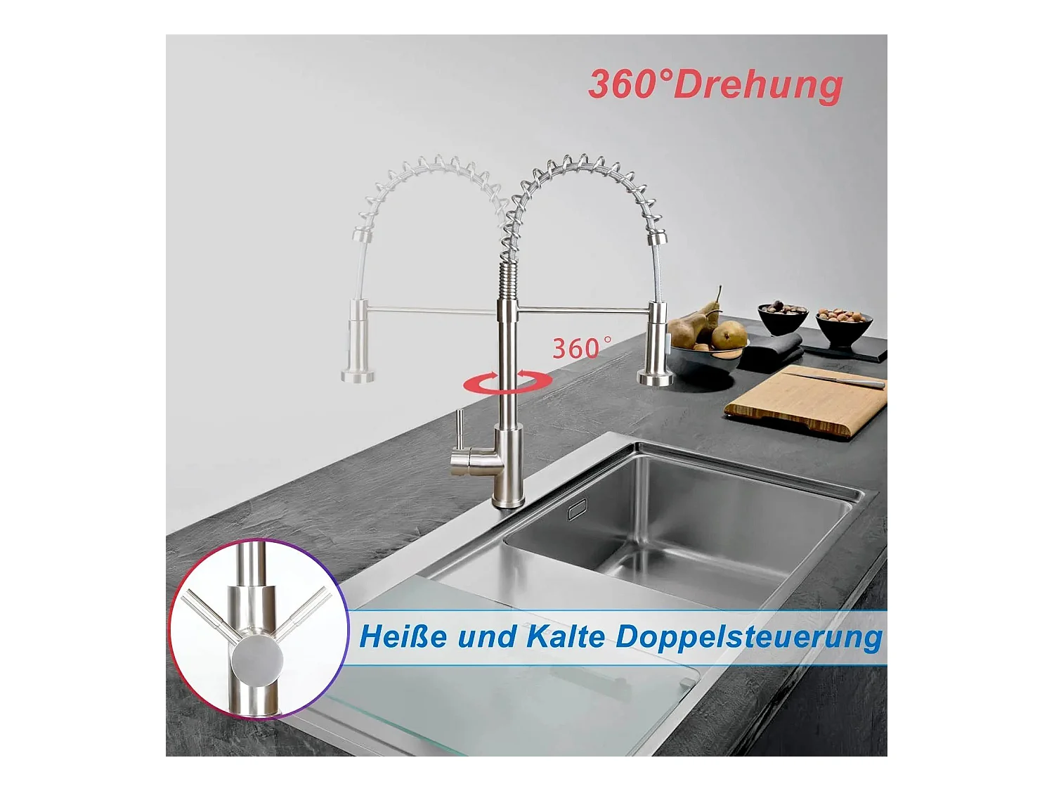 NETTLIFE Wasserhahn Küche Küchenarmatur - Spültischarmatur mit Brause Ausziehbar Mischbatterie Spüle 360° Schwenkbar Armatur Hochdruck mit 2 Strahlarten